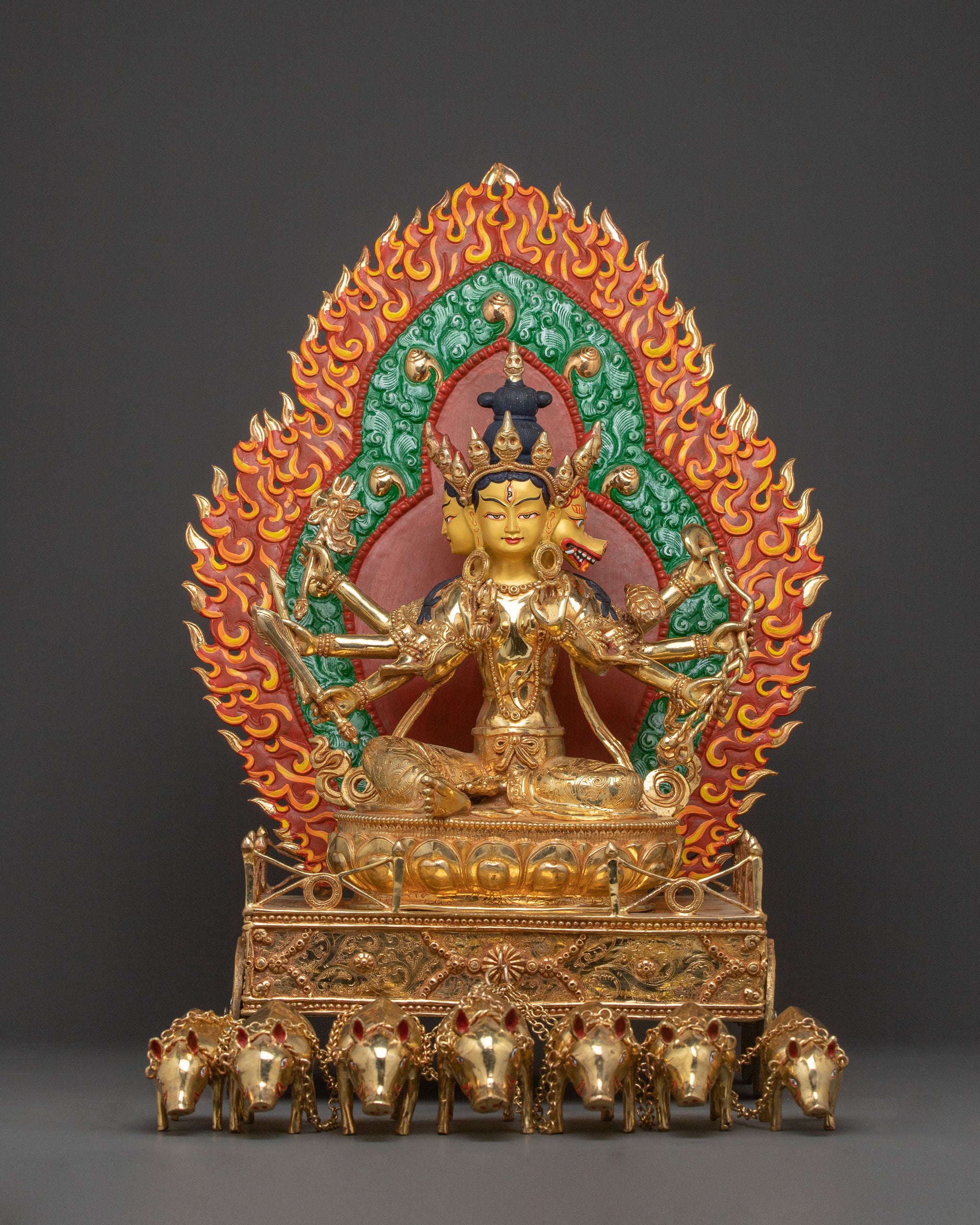 The three-headed Hayagriva is a rare find, especially the one with color. I was actually very glad to see that all the dharma implements are all mounted on hands so they won't fall off.
