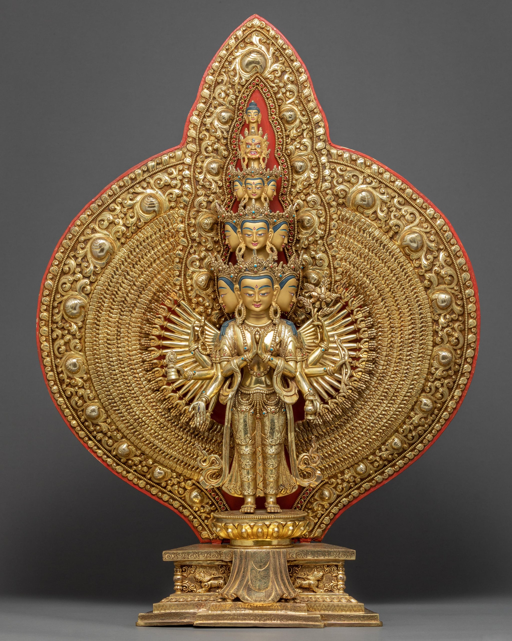 Traditionally Hand Carved 1000 Armed Chenrezig Sculpture