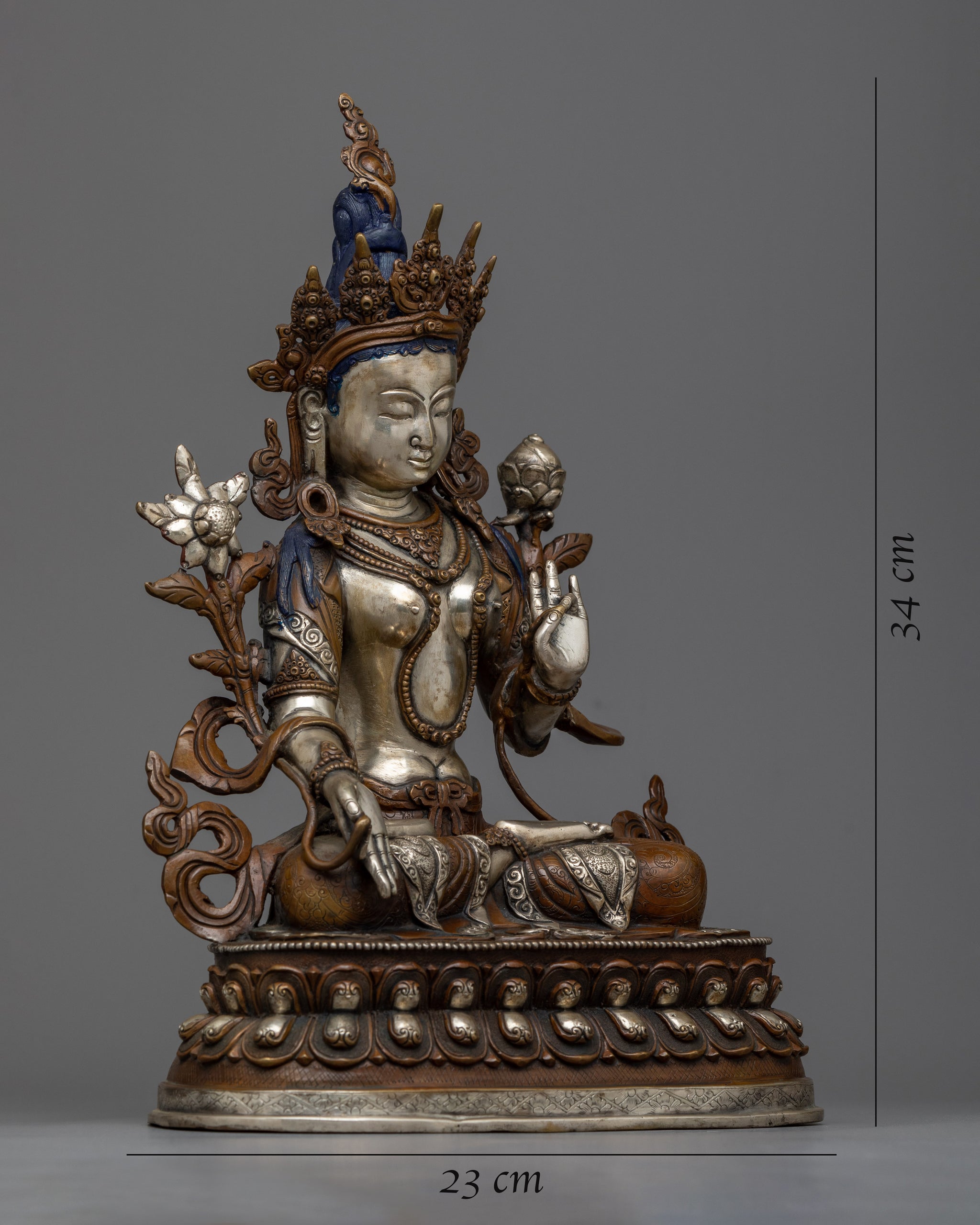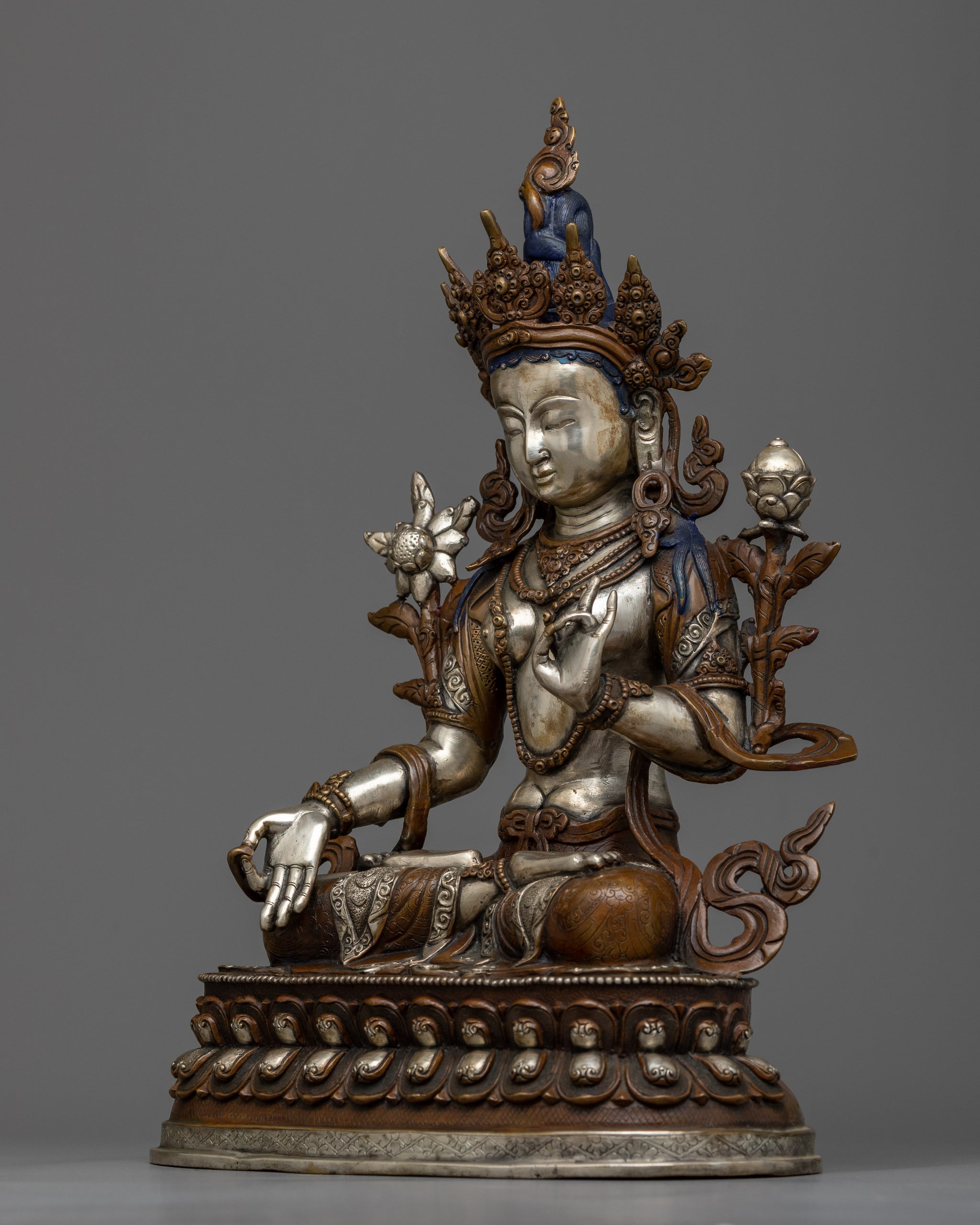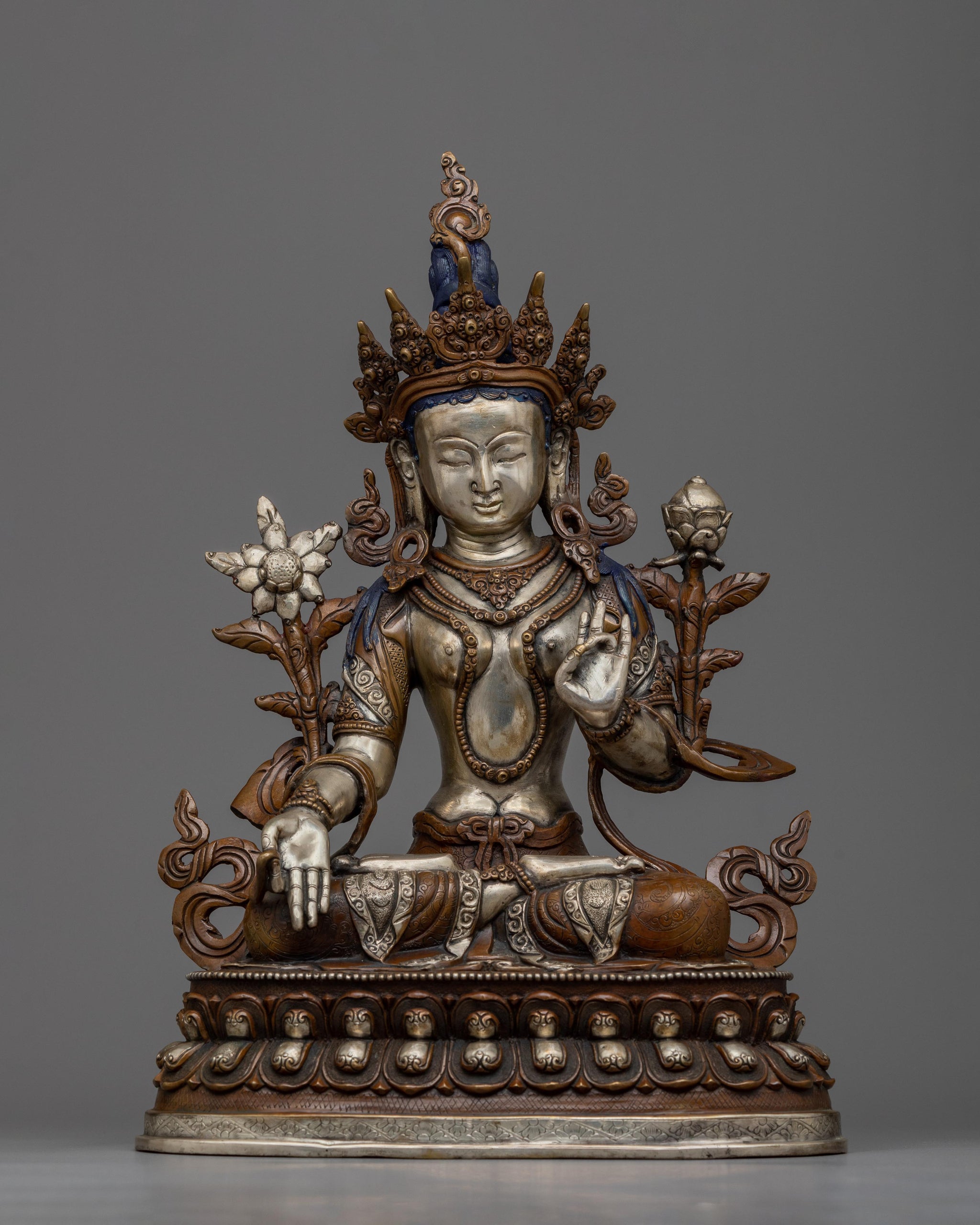 13.3" White Tara Statue | Silver Plated Figure Long Life Goddess