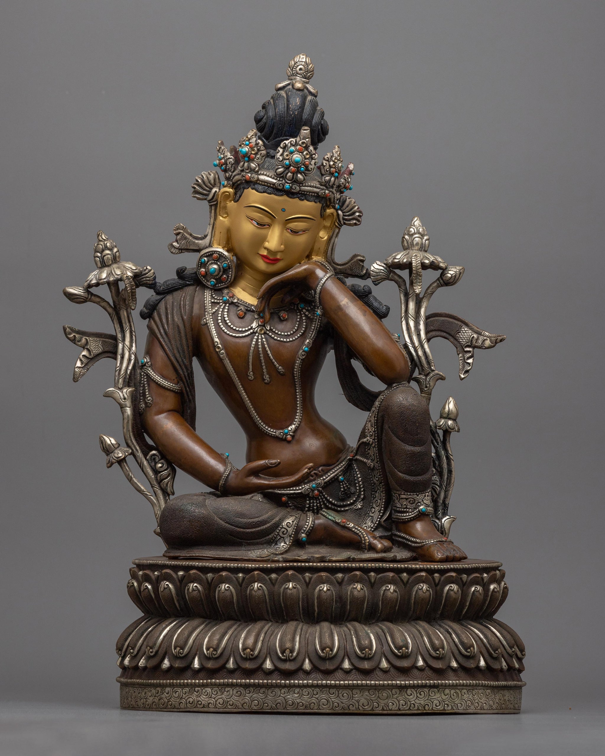 2-Arm Lokeshvara Sculpture in Silver and Gold | Embodiment of Compassion