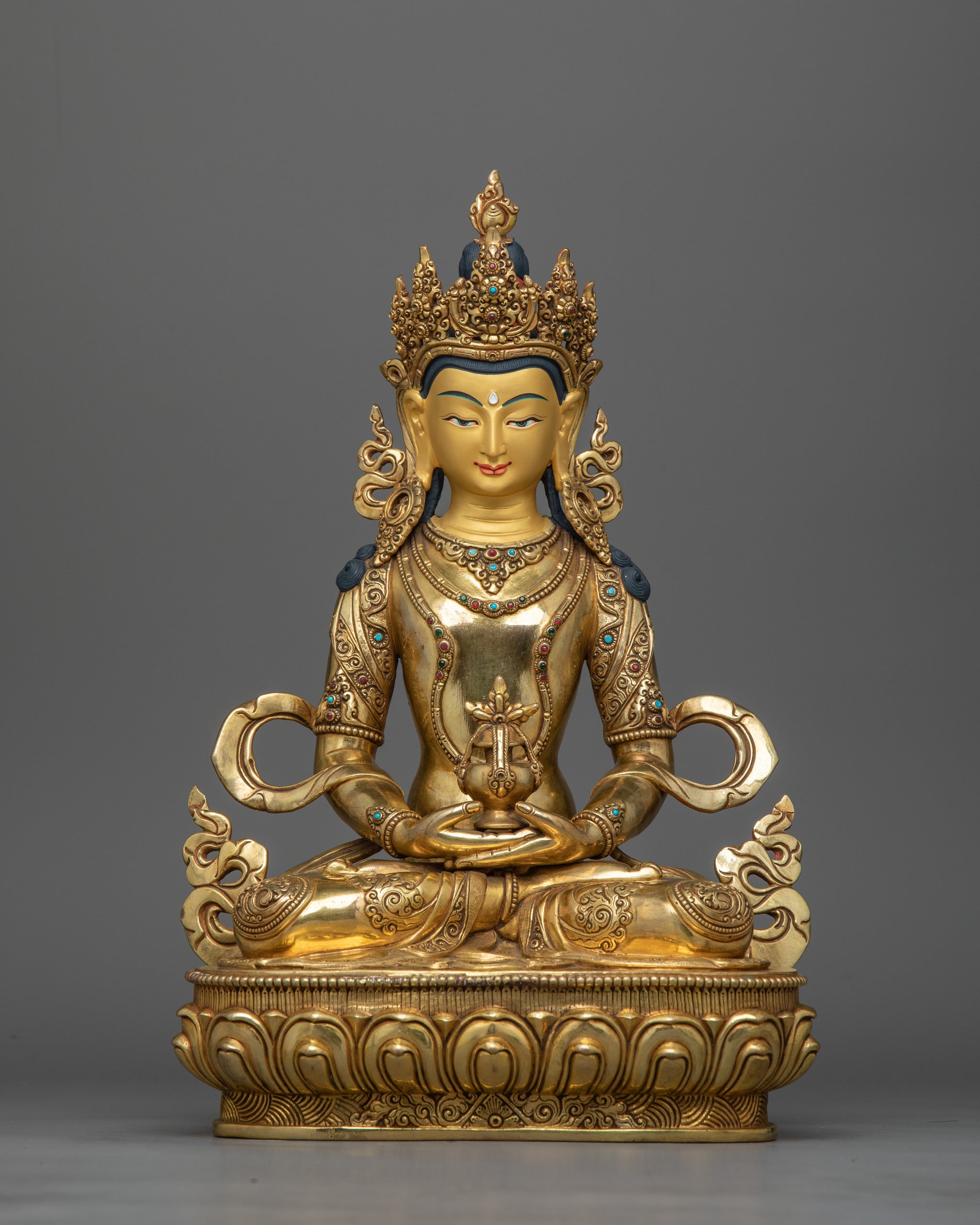 24K Gold Gilded Amitayus Statue | Handcrafted Symbol of Longevity and Wisdom