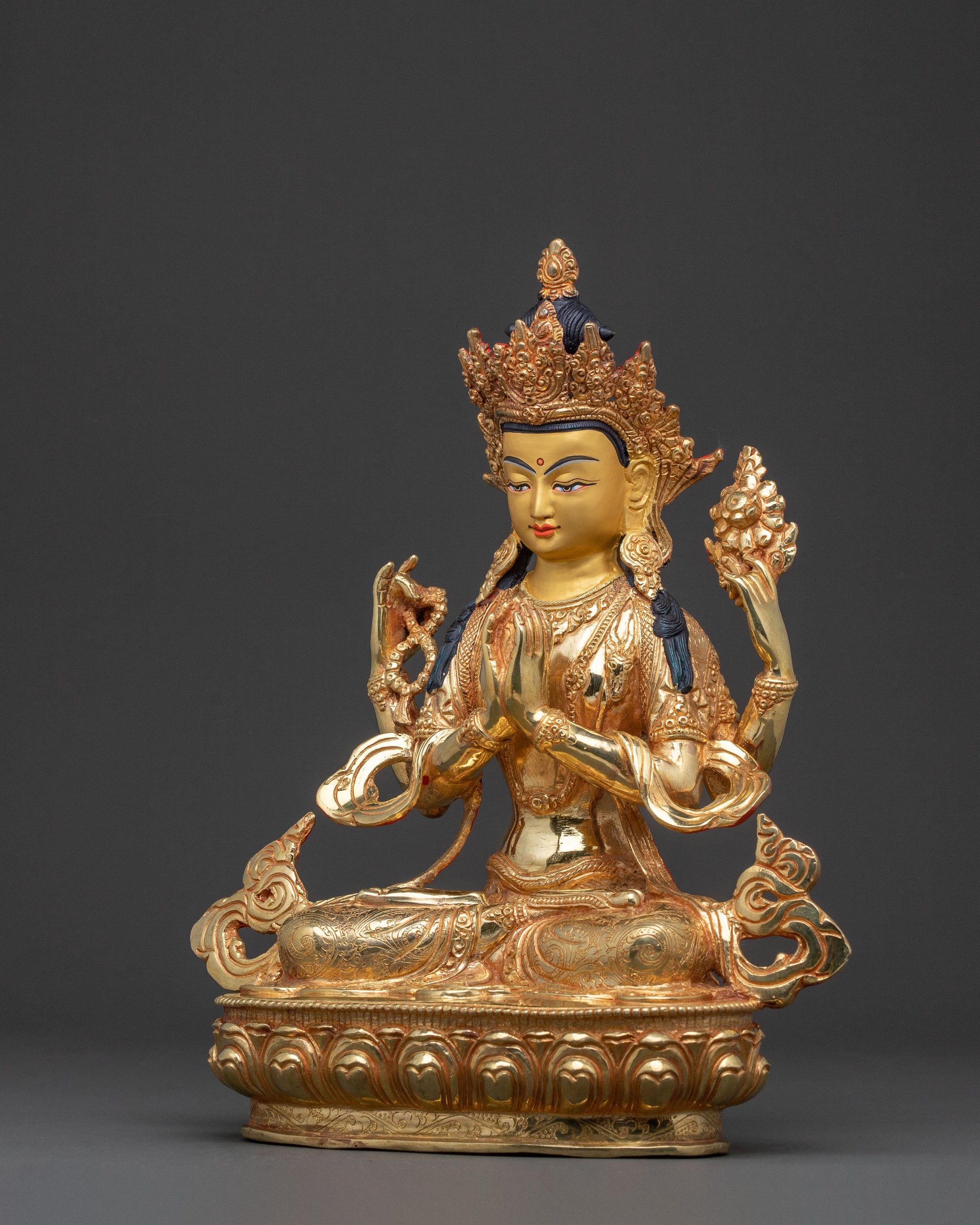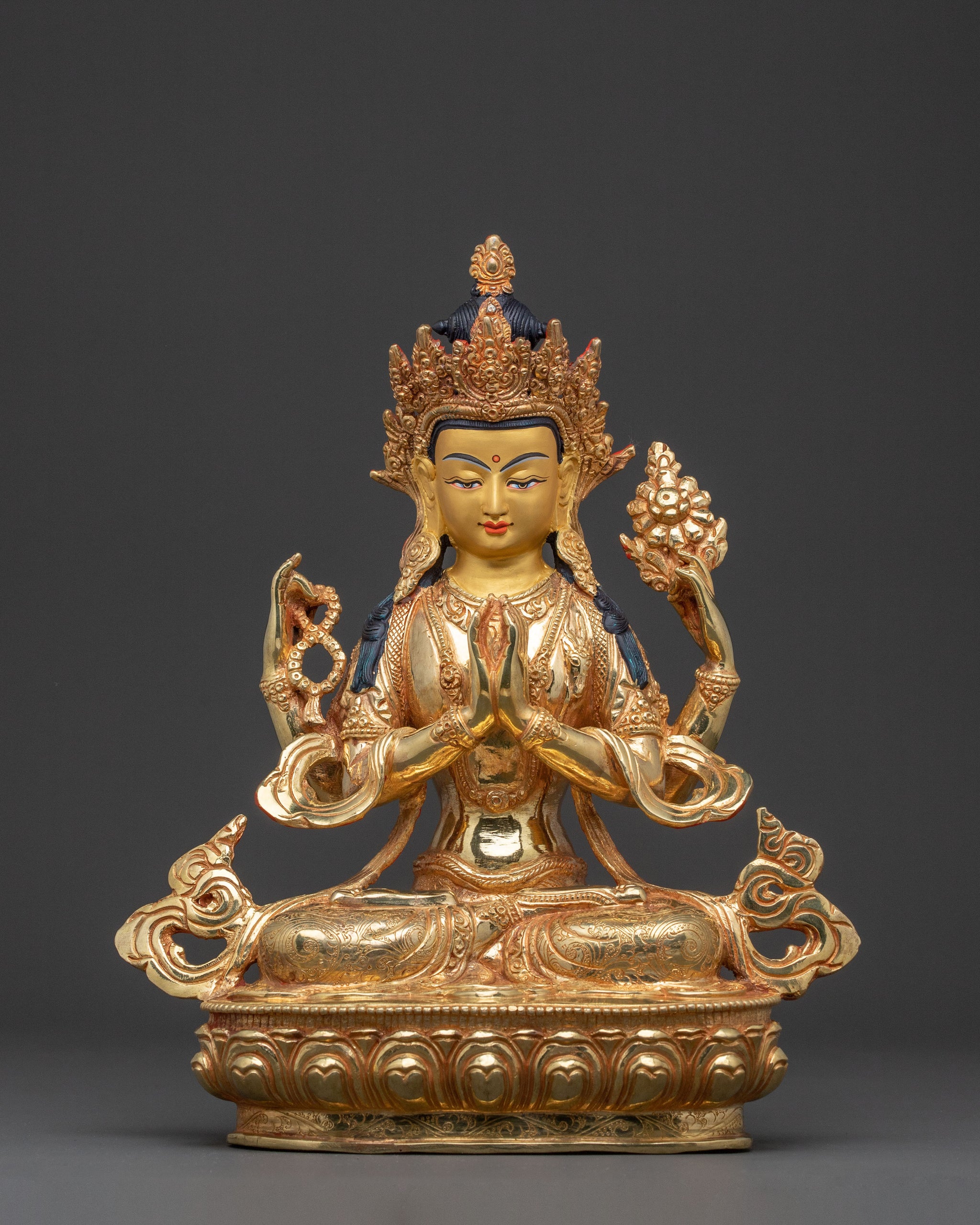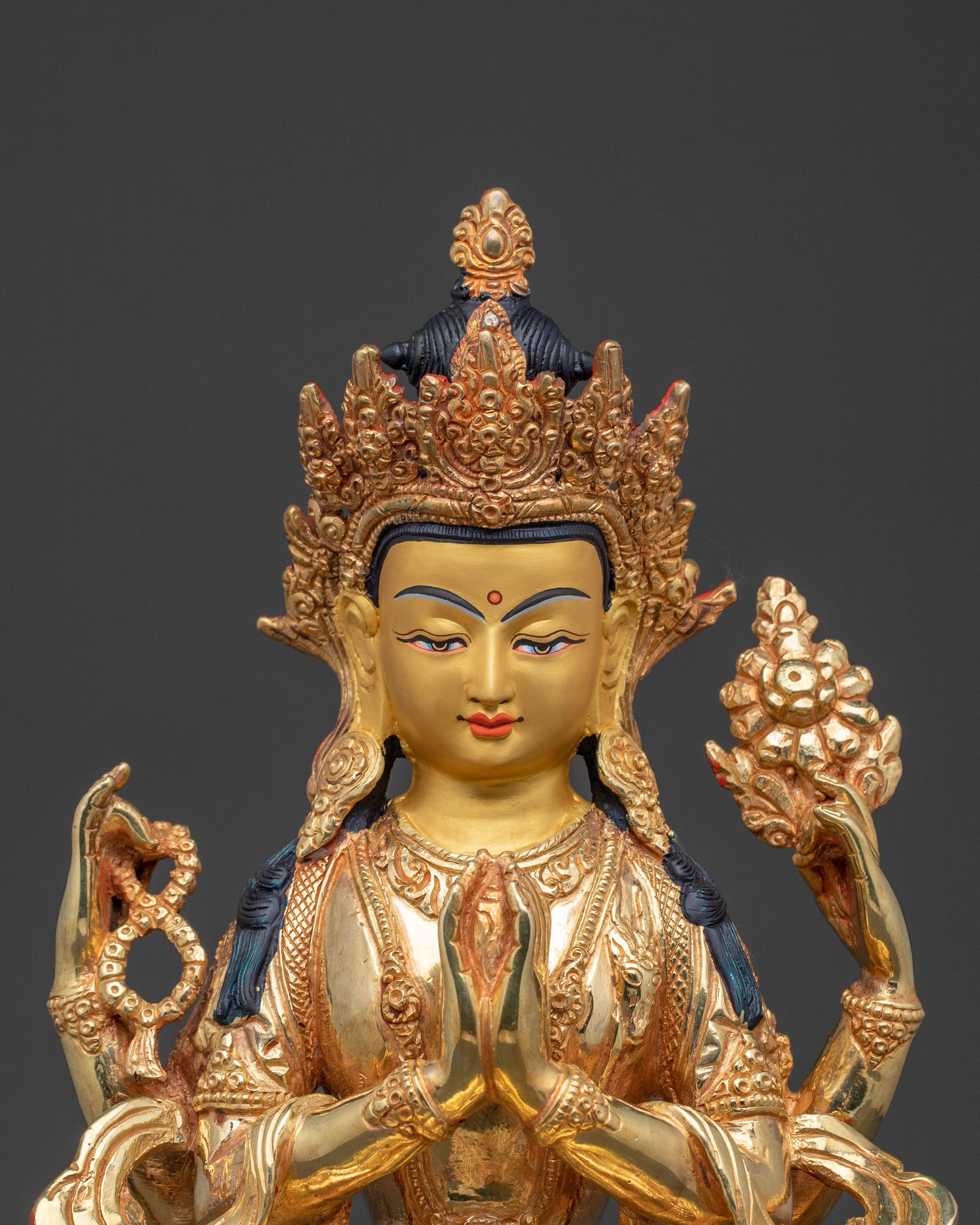 Embrace Compassion with a 24k Gold Gilded Chenrezig Spiritual Statue.