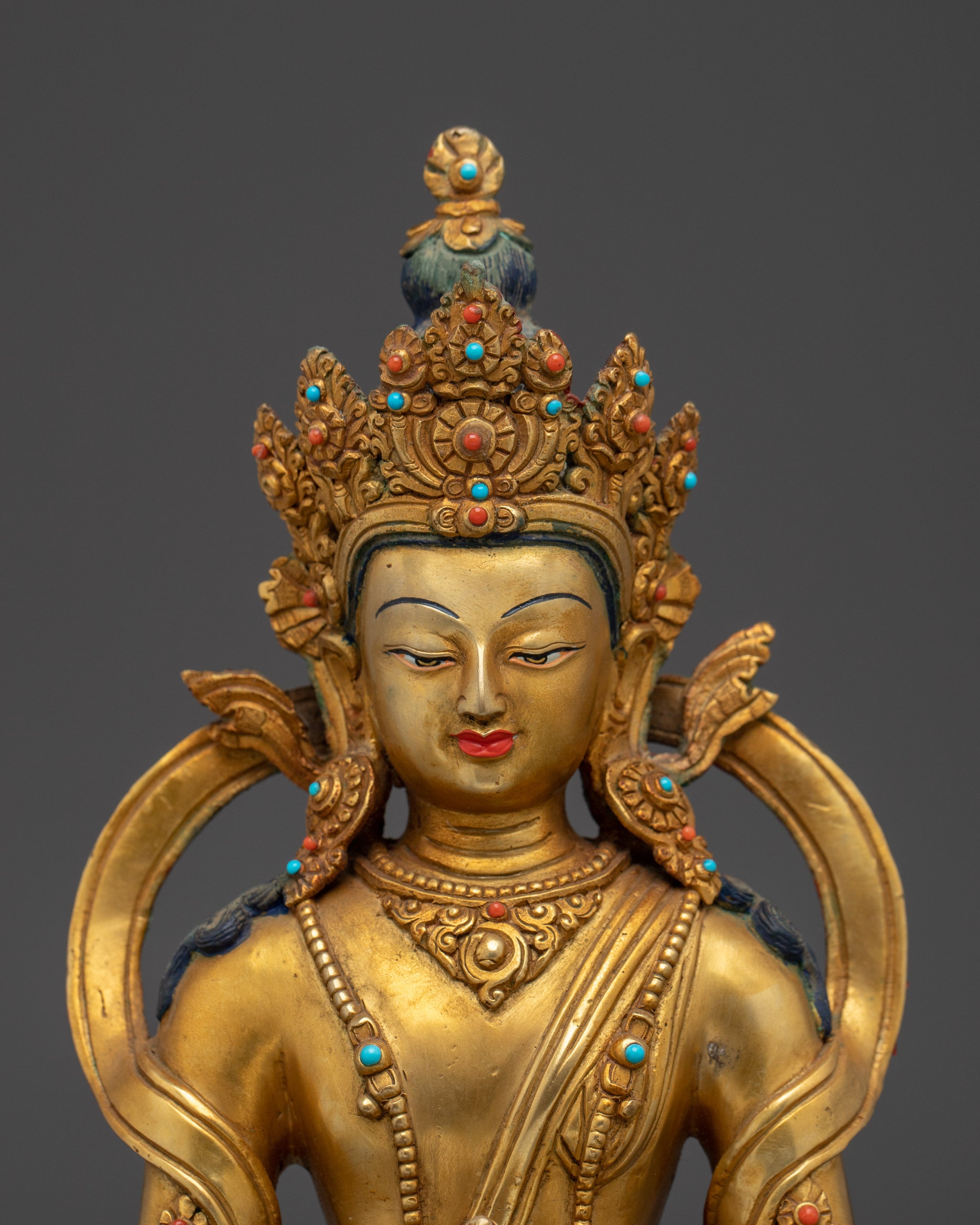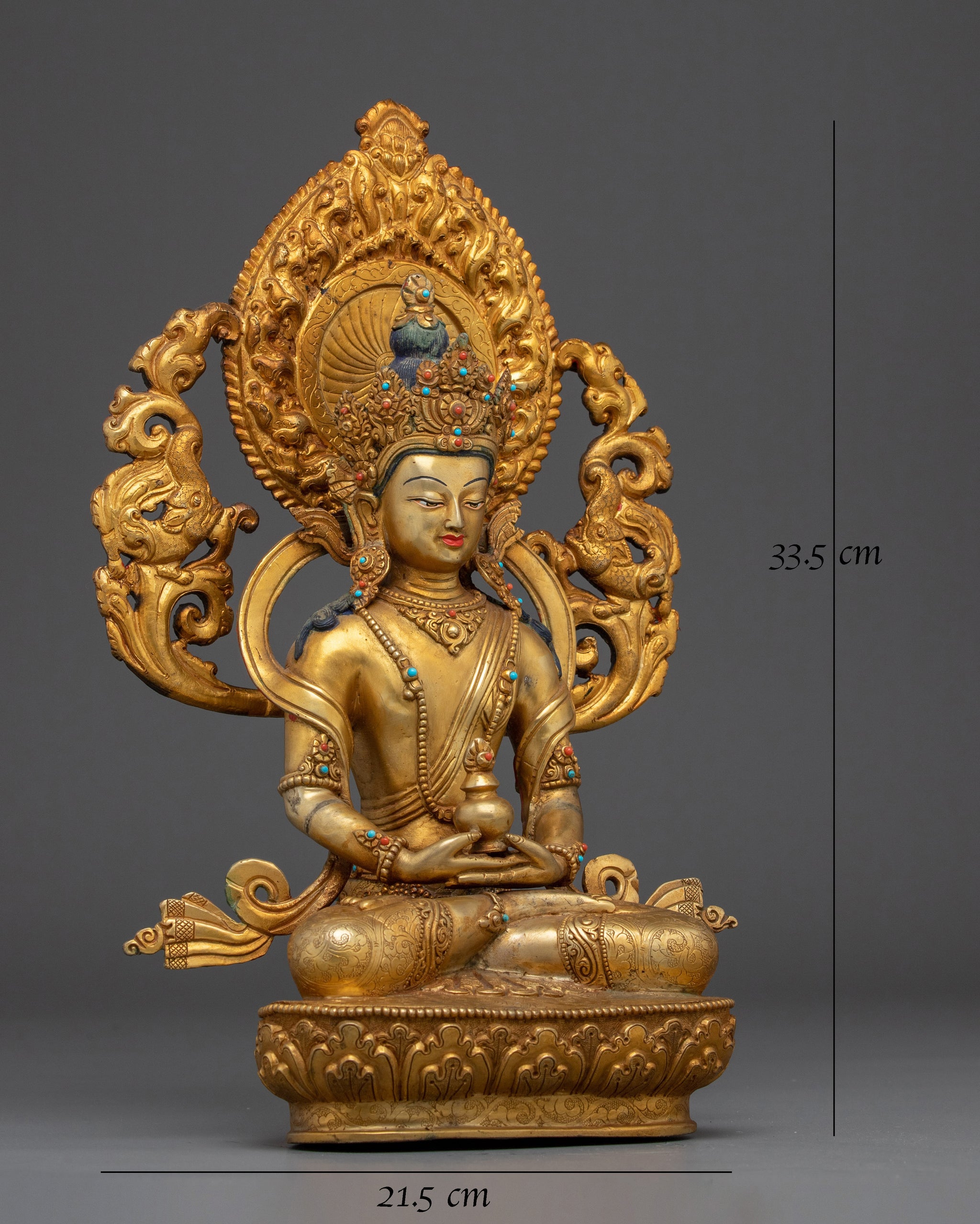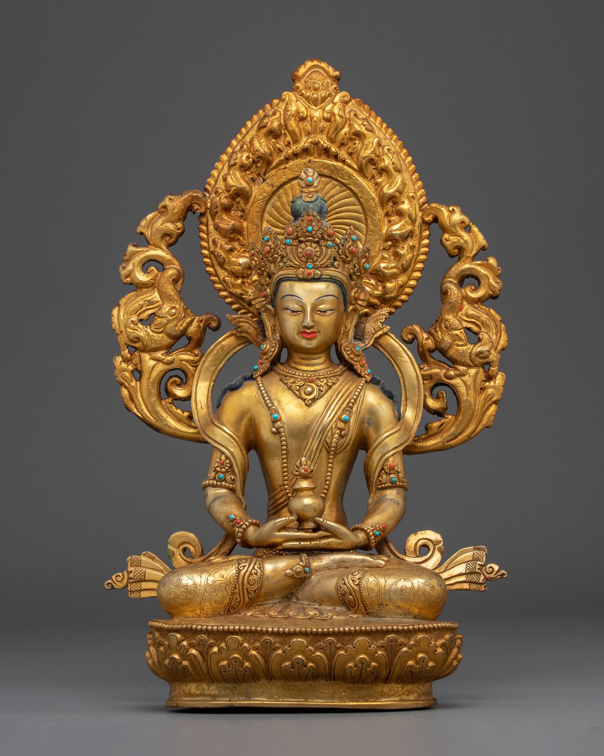 24K Gold Gilded Copper Amitayus Statue | Buddhist Deity of Spiritual Blessing
