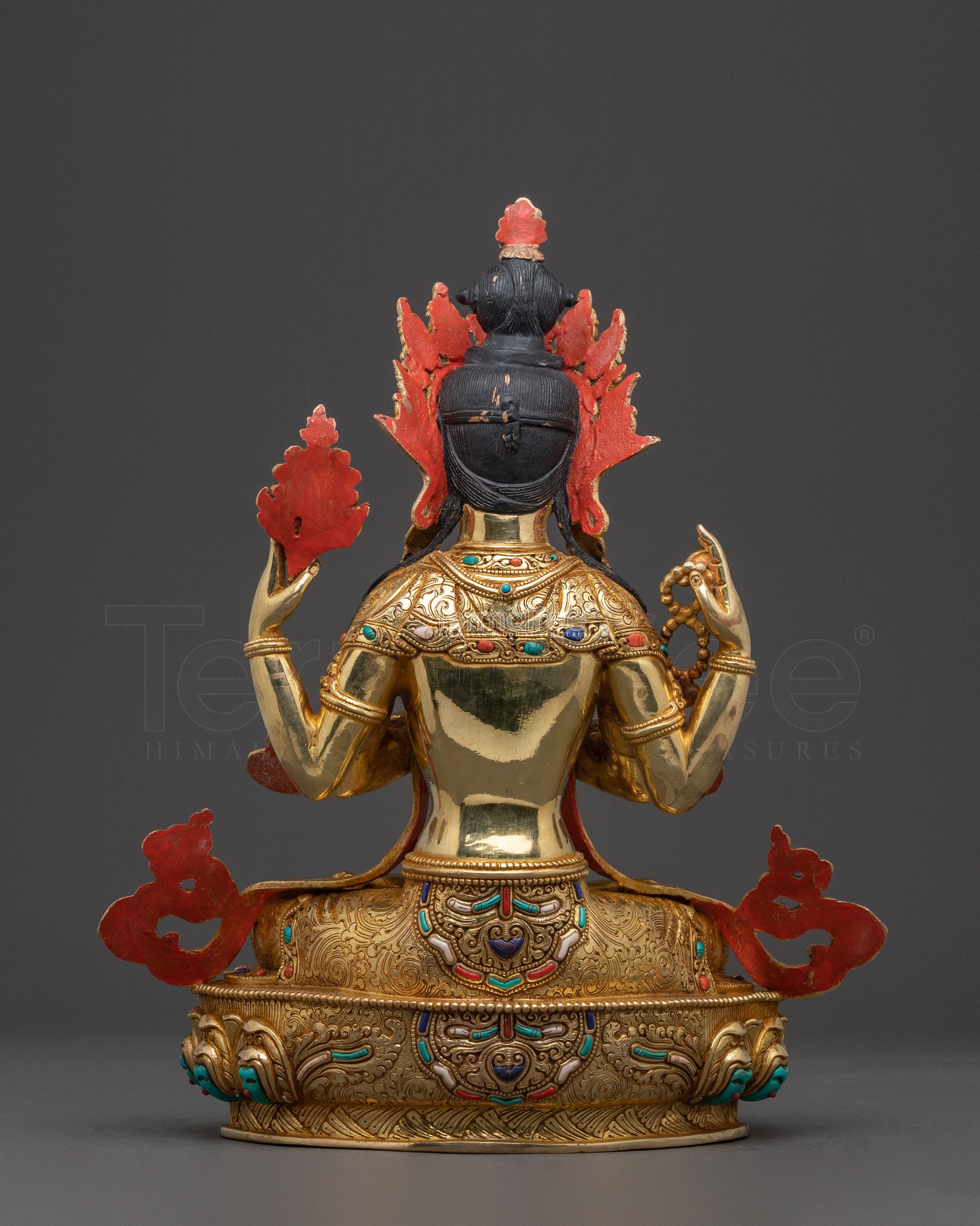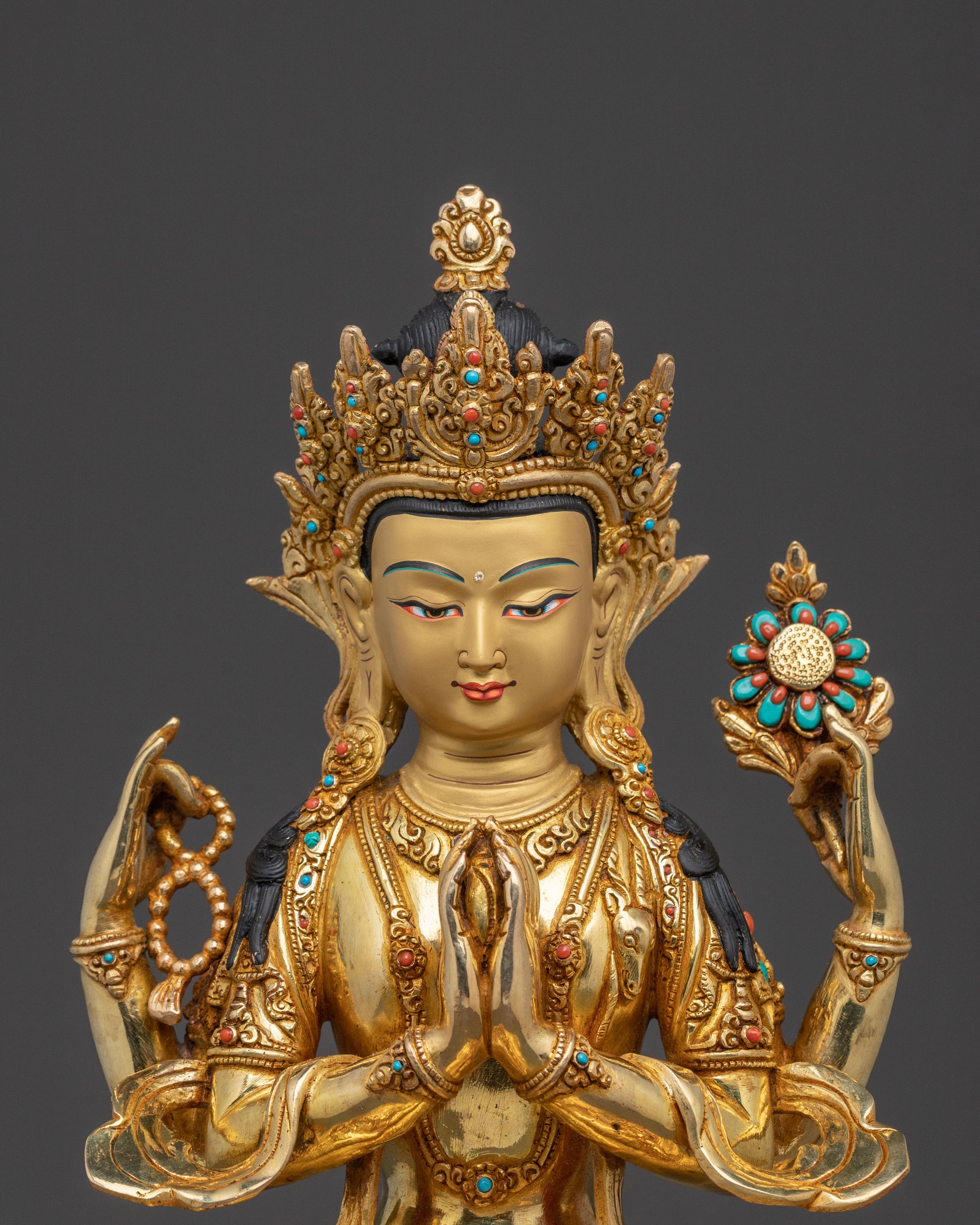 Experience Compassion with a 24K Gold Gilded Copper Chenrezig Statue