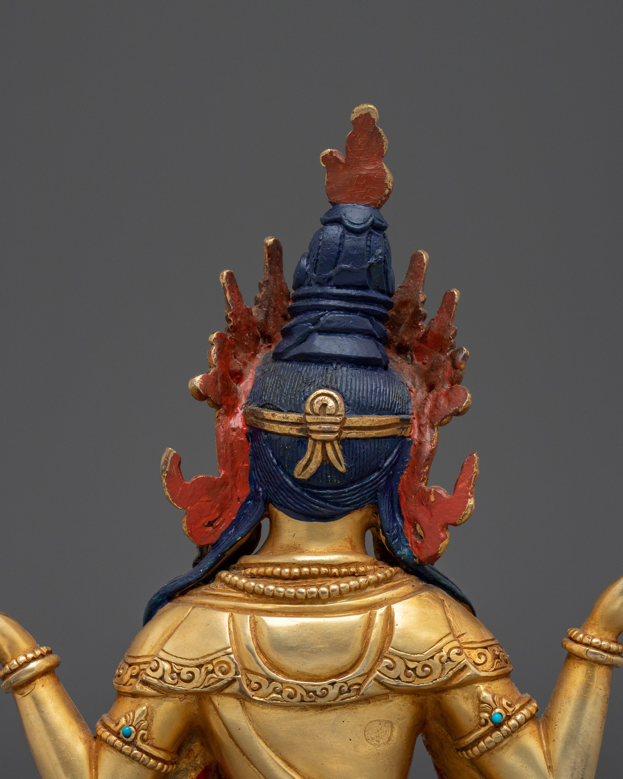 Vajrayogini is stunning. The details are amazing. It's easy to make out her facial expressions, skulls, feet, and the ring of fire around her. You can tell she's handmade. There is a consecration hole in her back.