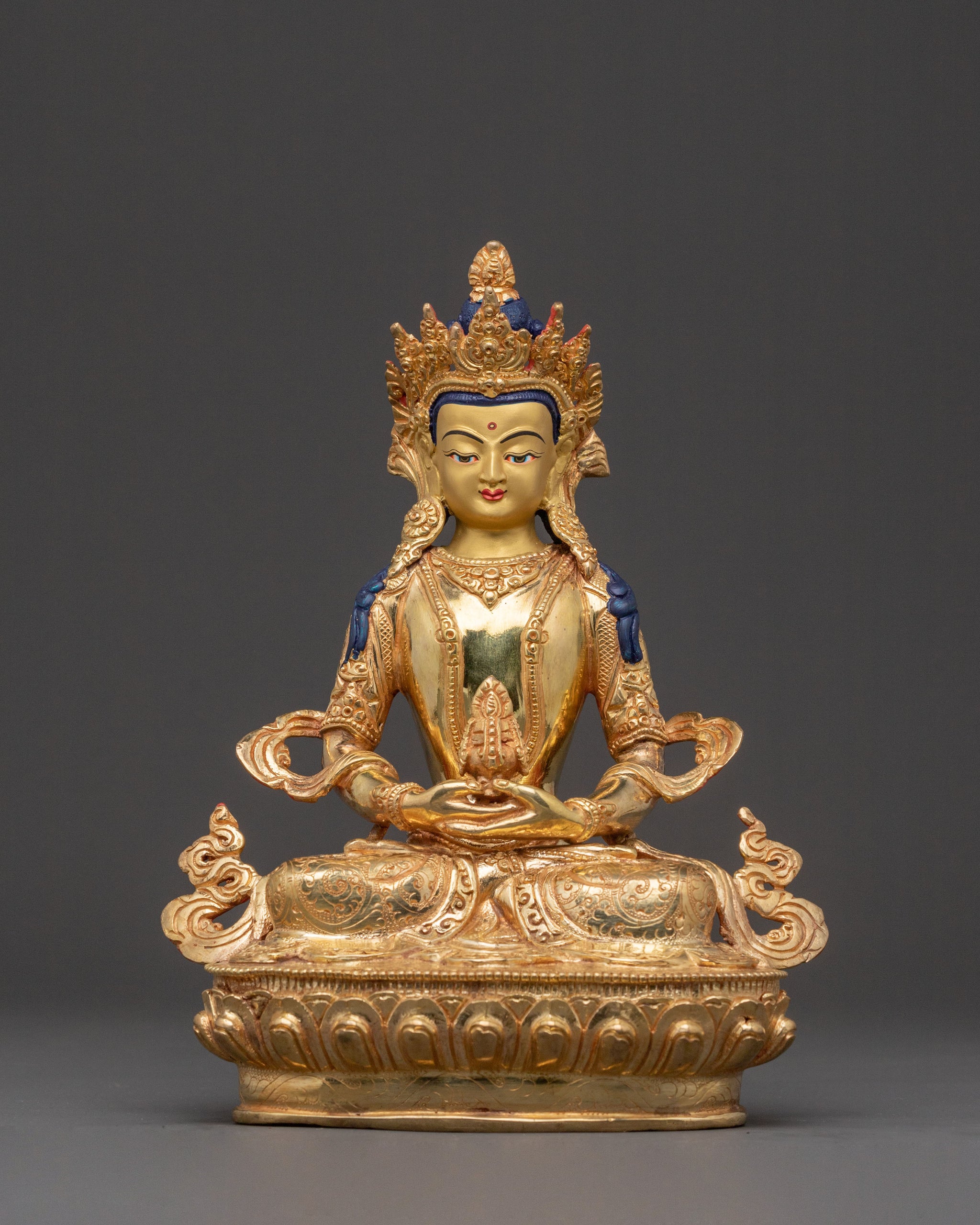 24K Gold Gilded Copper Statue of Amitayus: Long Life Buddha