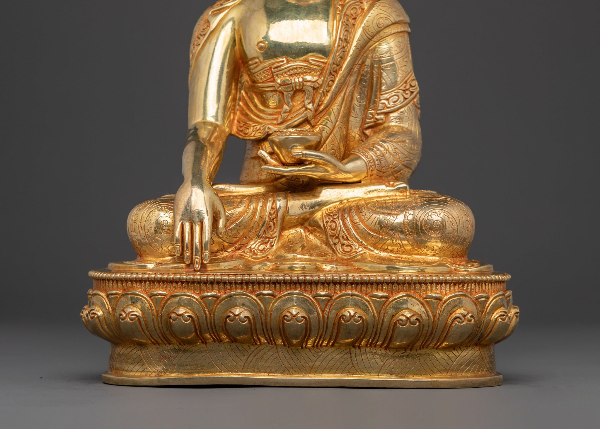 24K Gold Gilded Enlightened Shakyamuni Buddha Sculpture – Serene Handcrafted Art