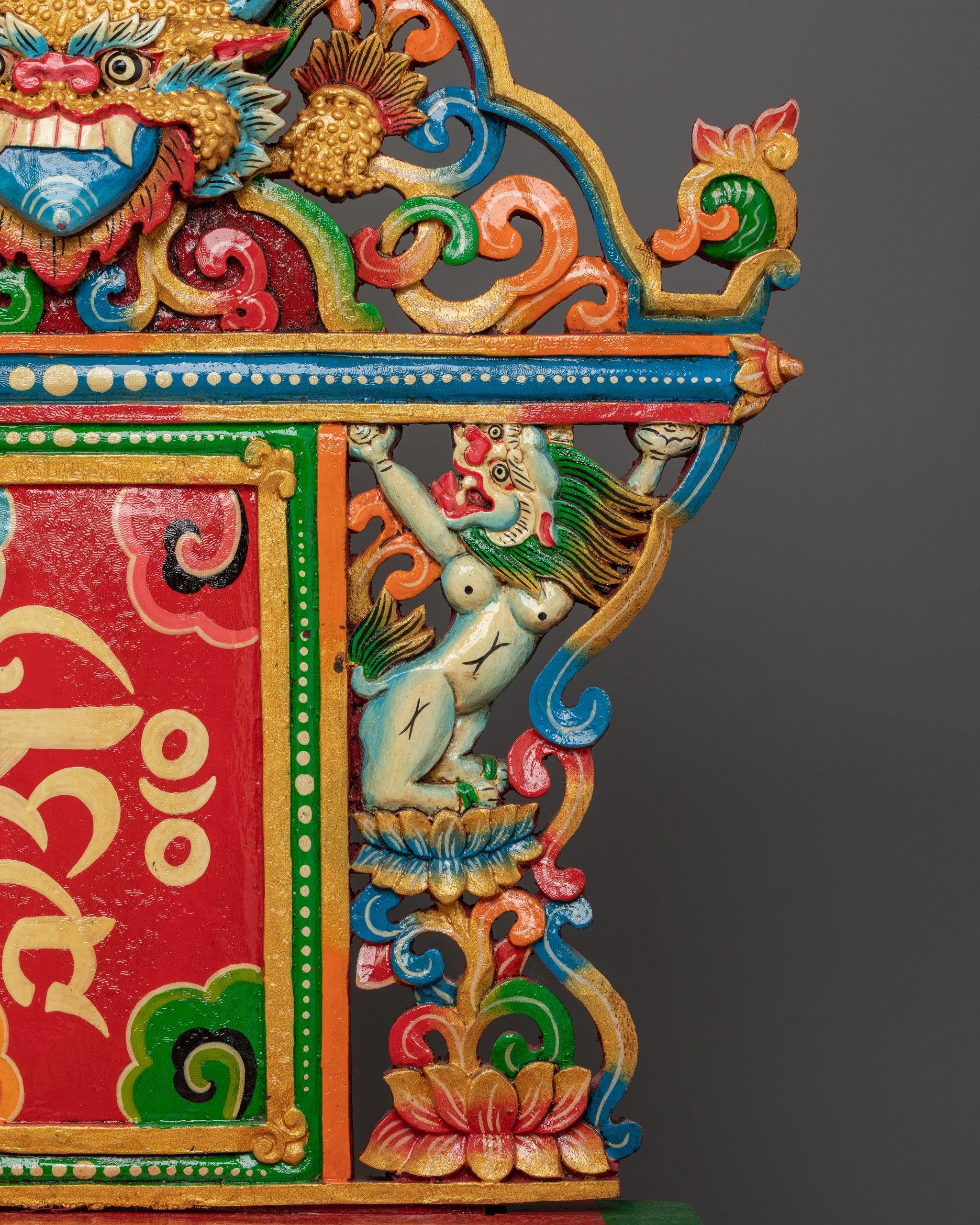 This 22.4-inch Handmade Throne measures 22.4”/57 cm (Height) x 16.5”/42 cm (Base), Weight: 2.87 kg. Crafted by expert Nepalese artisans, this sacred item embodies the rich traditions of Himalayan Buddhism, making it an important addition to altars, meditation areas, or sacred collections.