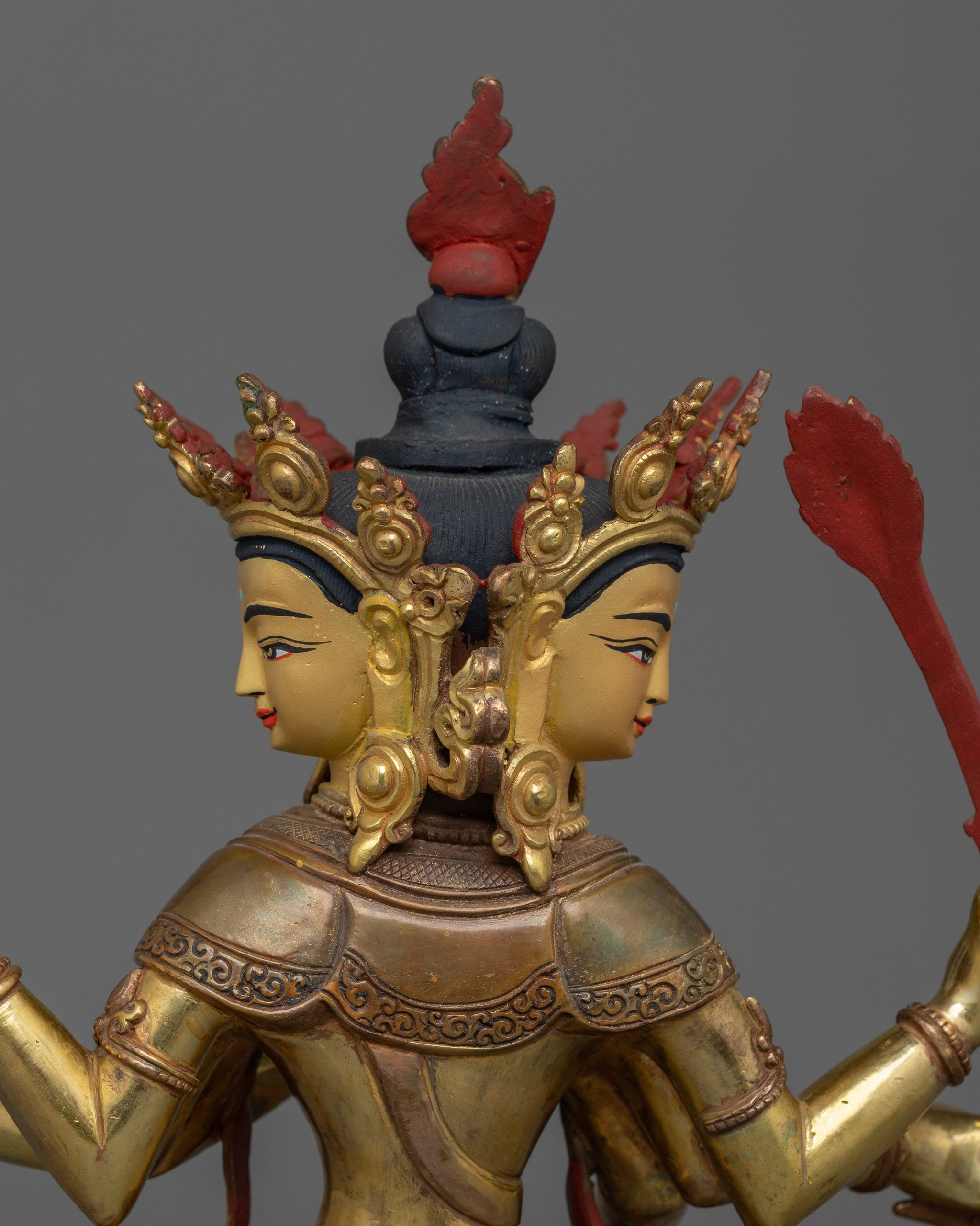 Vajrayogini is stunning. The details are amazing. It's easy to make out her facial expressions, skulls, feet, and the ring of fire around her. You can tell she's handmade. There is a consecration hole in her back.