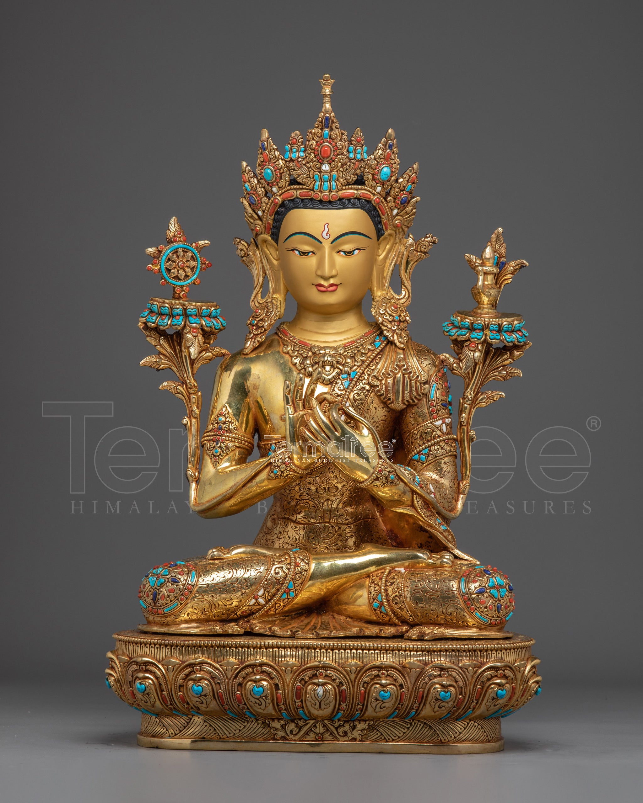 24K Gold Gilded Maitreya Buddha Statue | Spiritual Meditation & Altar Decor