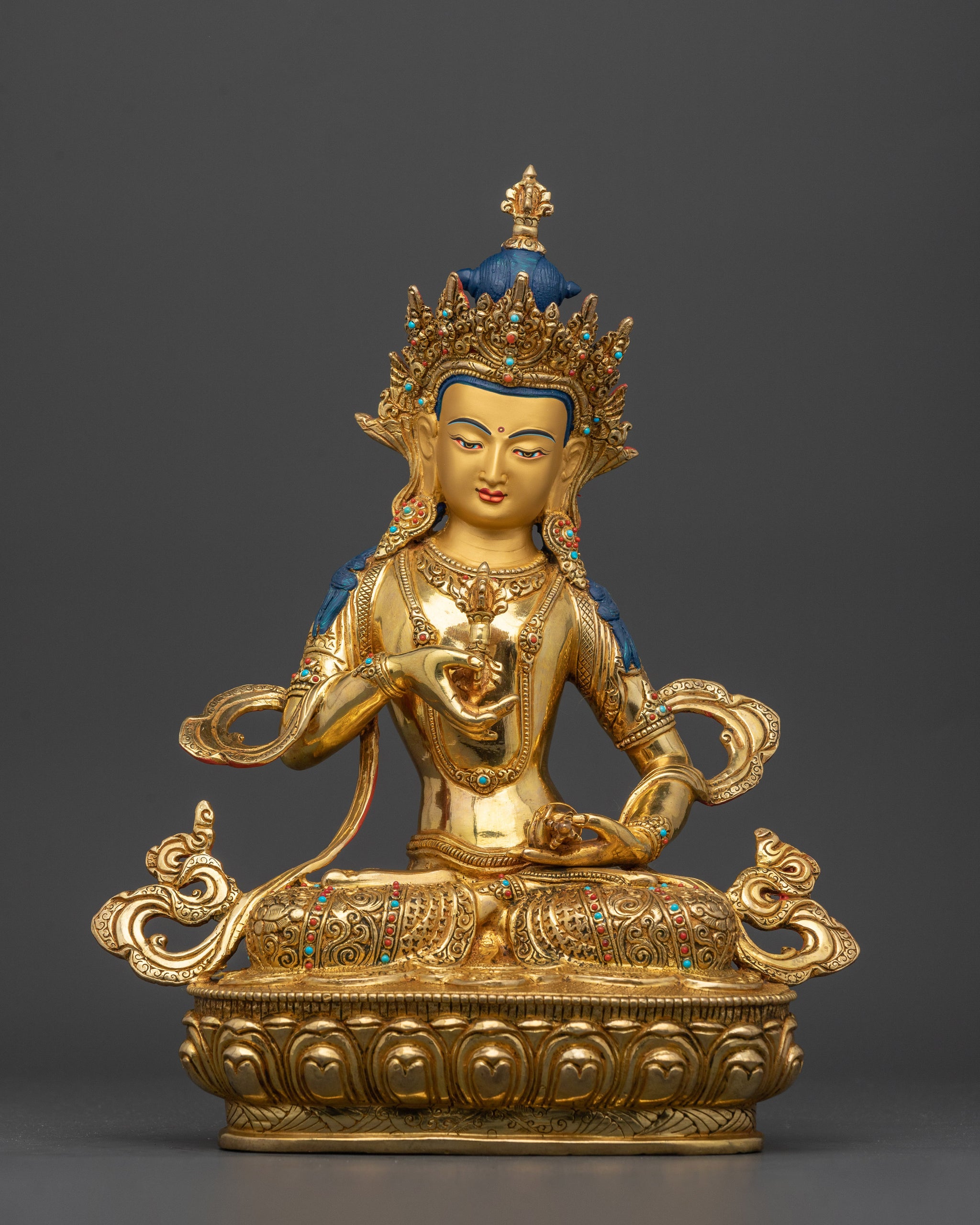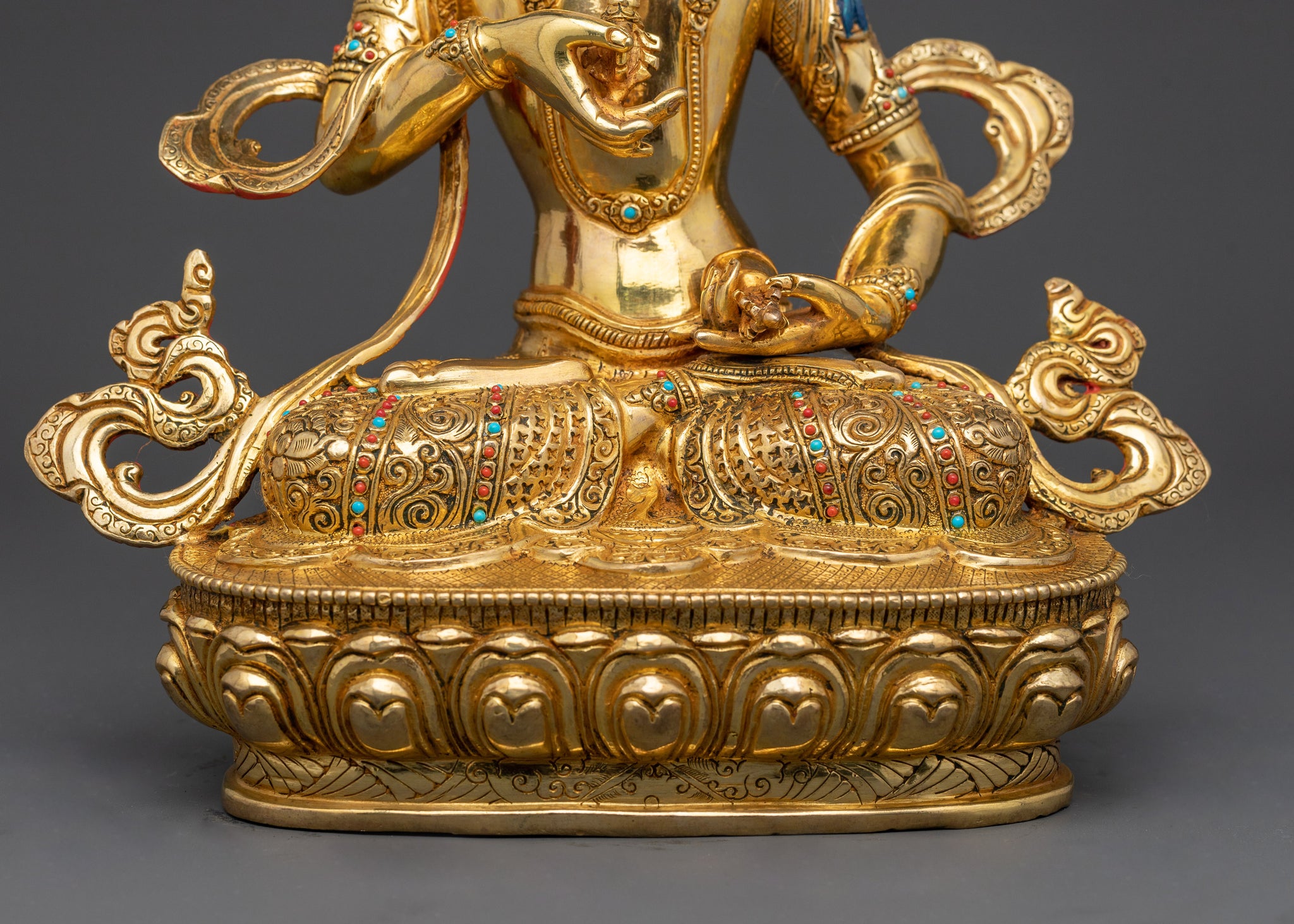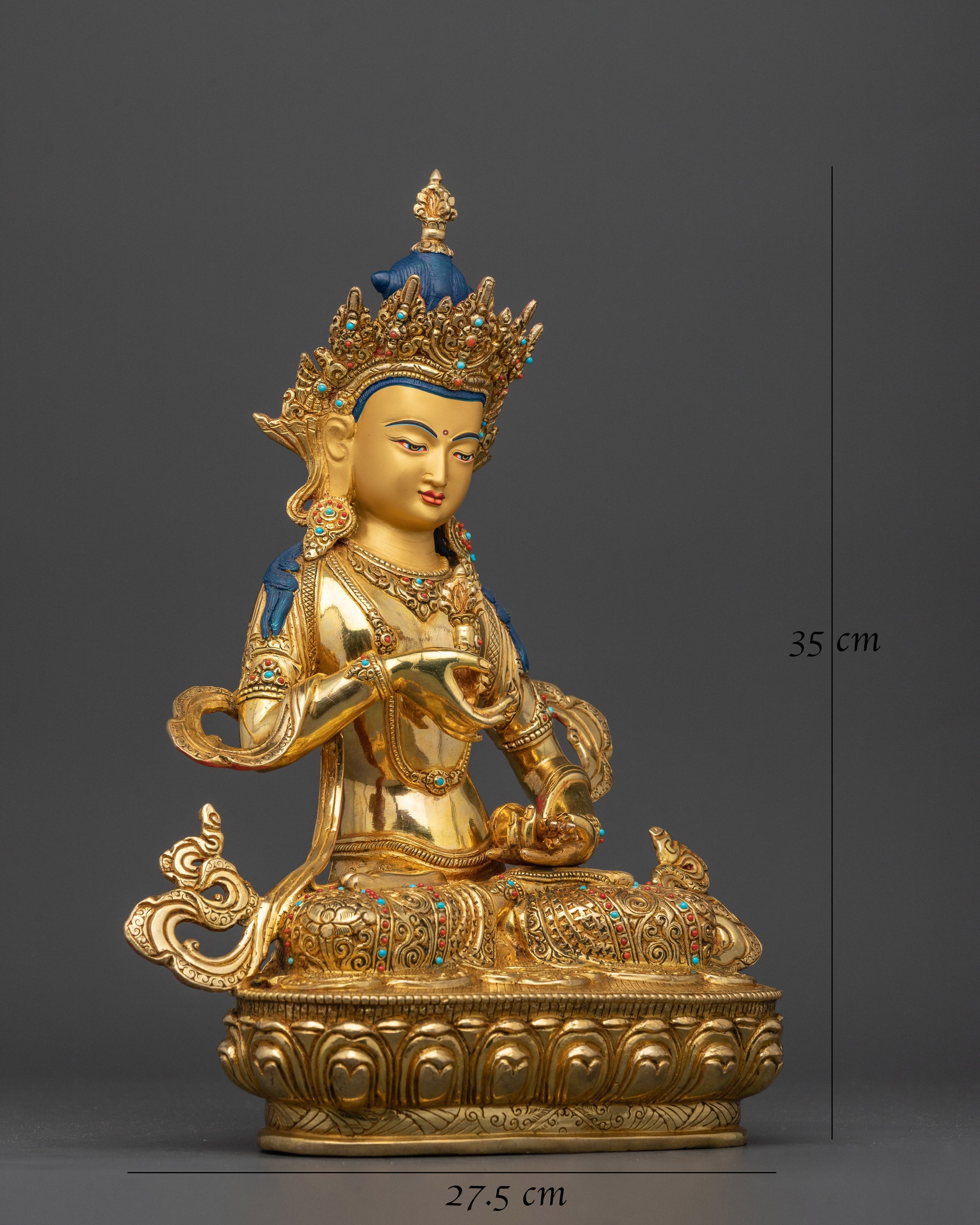 24K Gold Gilded Vajrasattva Statue | 13.8 Inches Tibetan Buddha Deity Sculpture