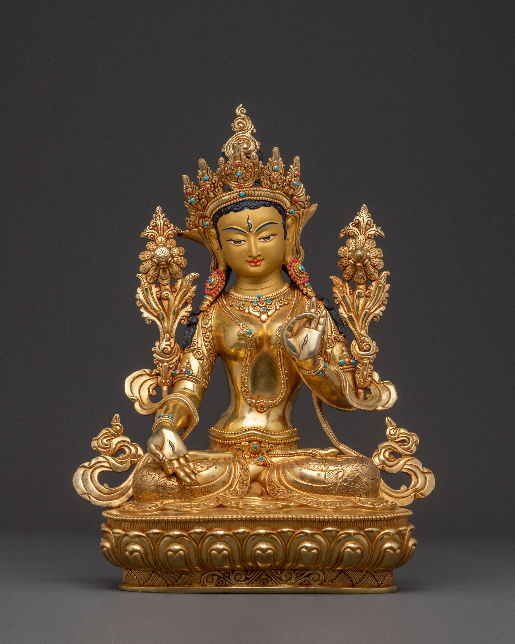 Radiant White Tara Blessing Statue - 24K Gold Gilded Copper