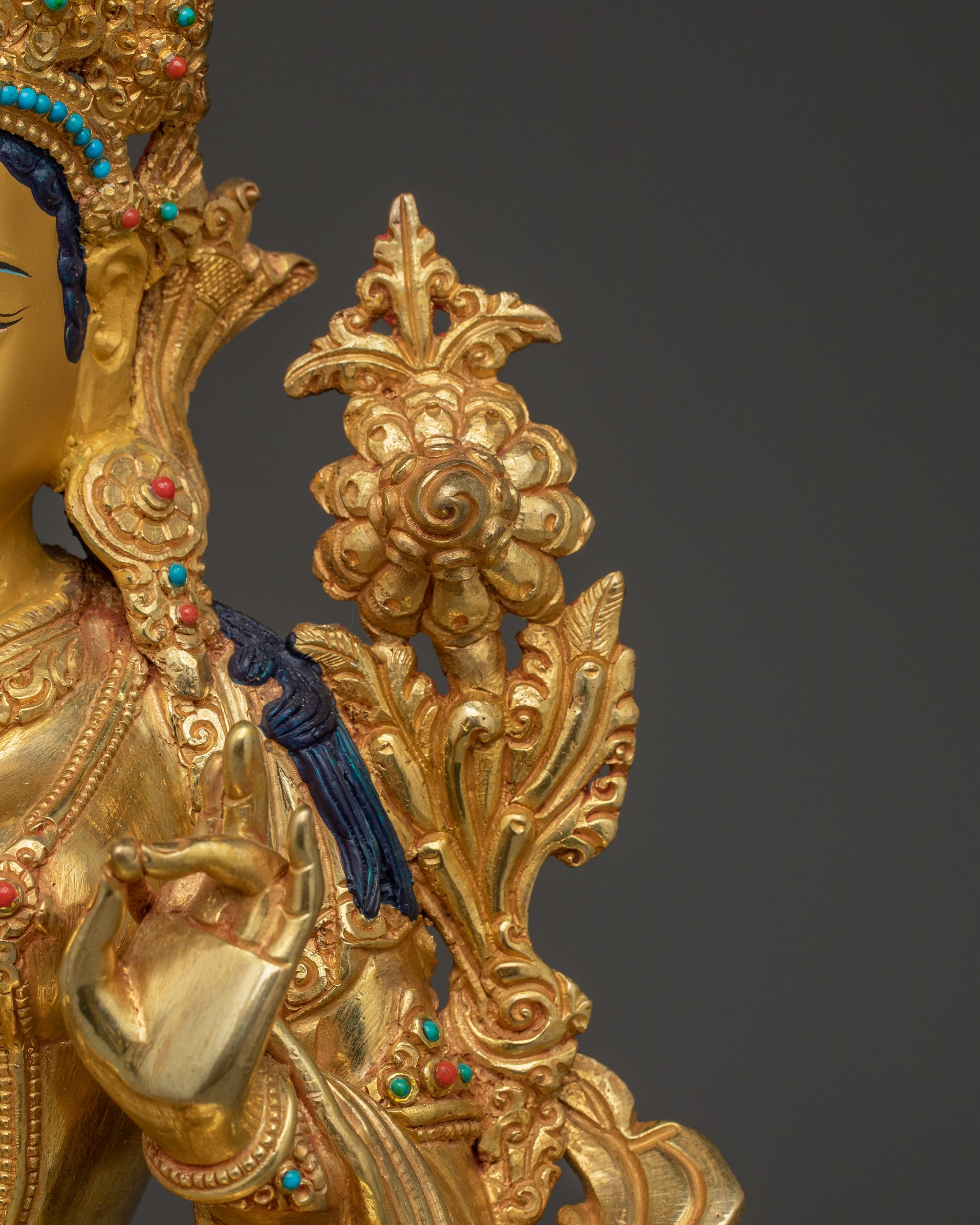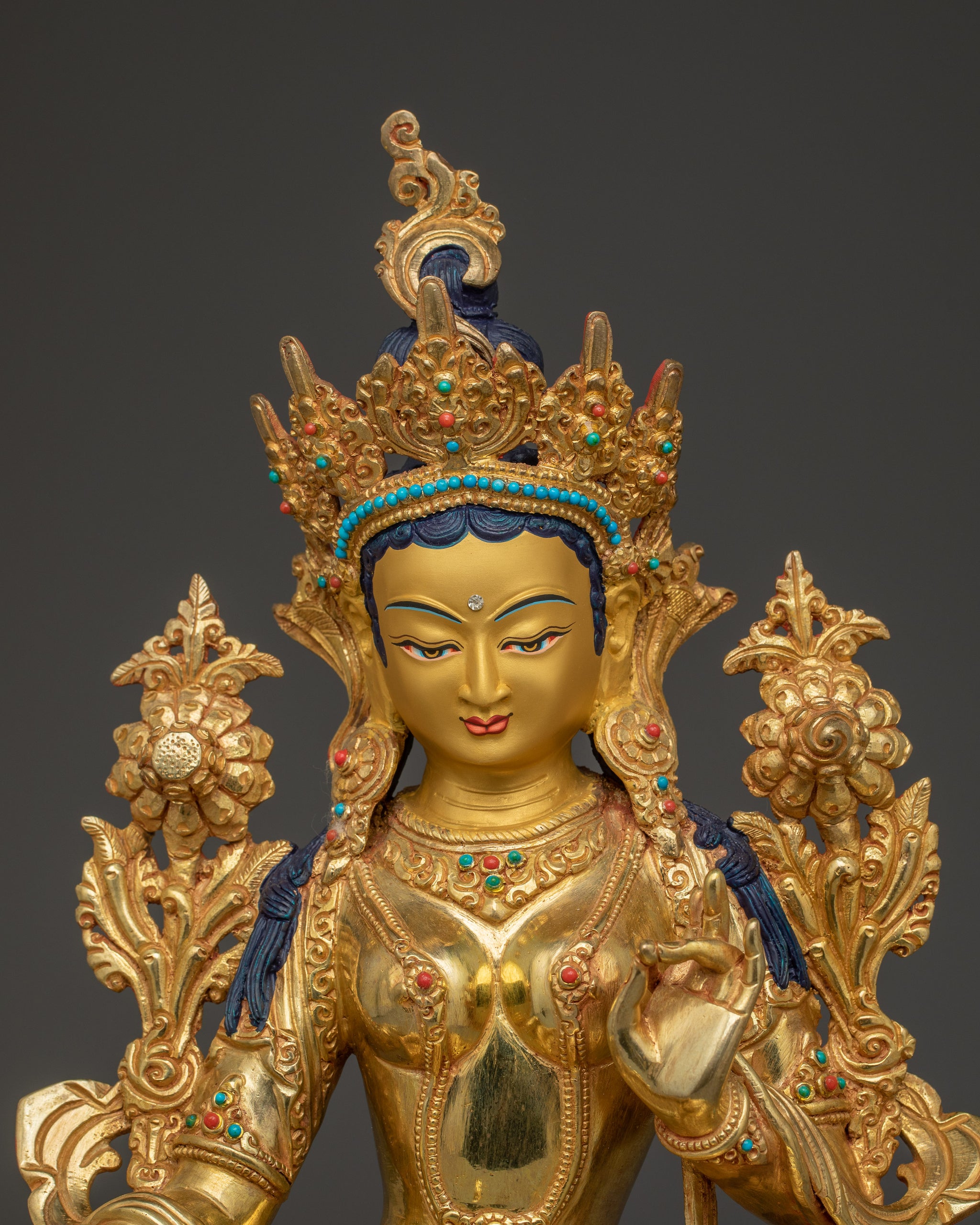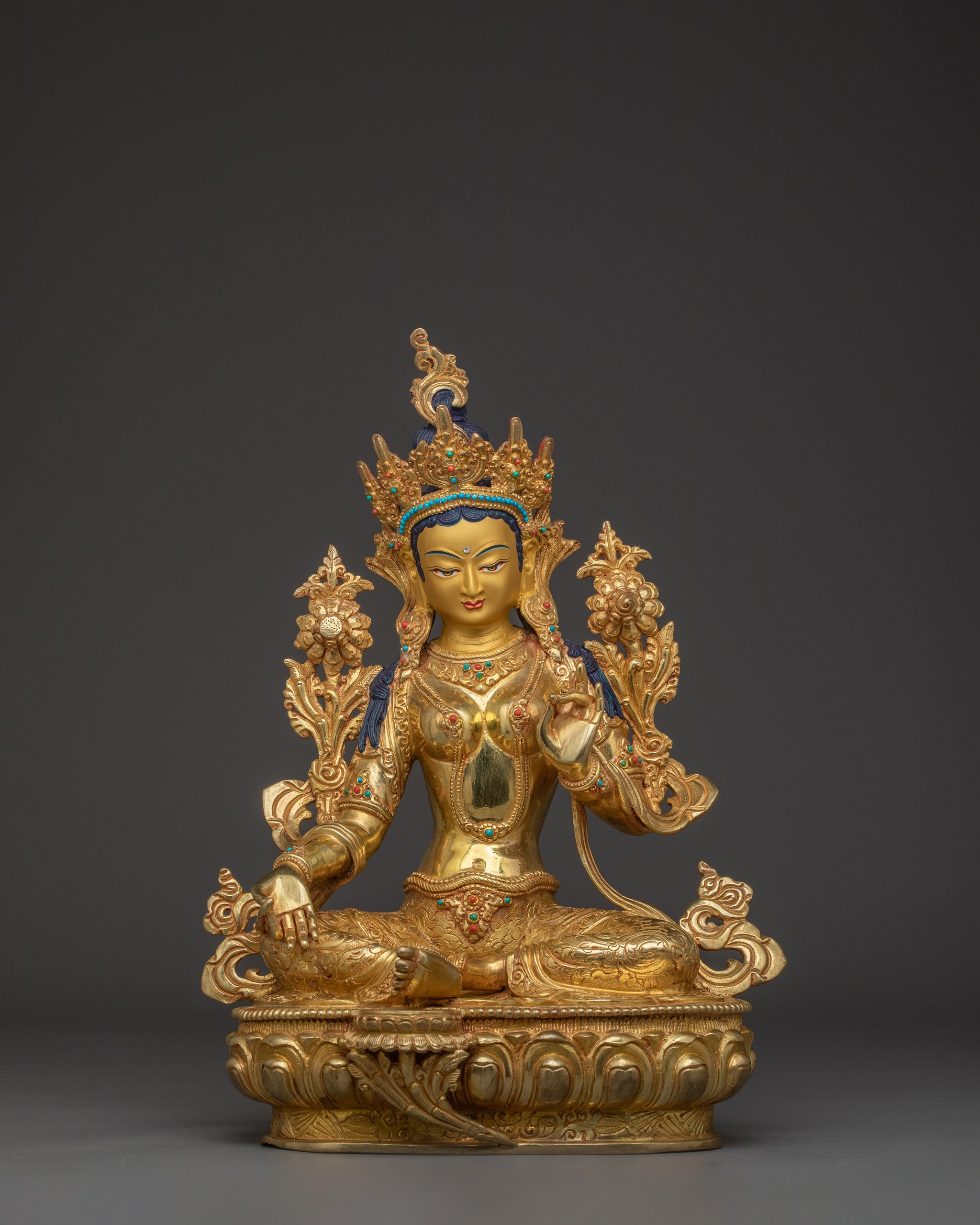 24K gold Green Tara statue | Sculpture of Compassionate Protection