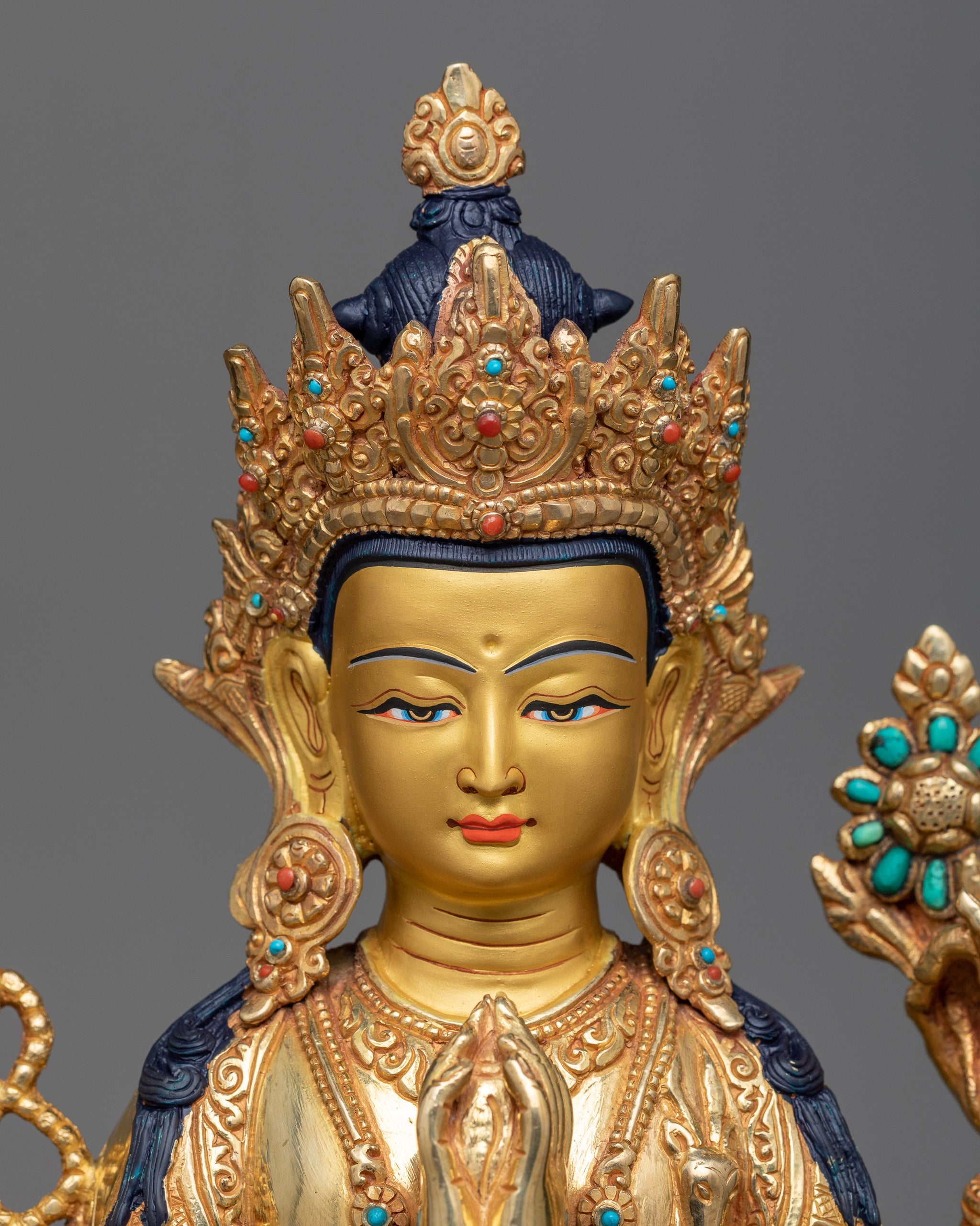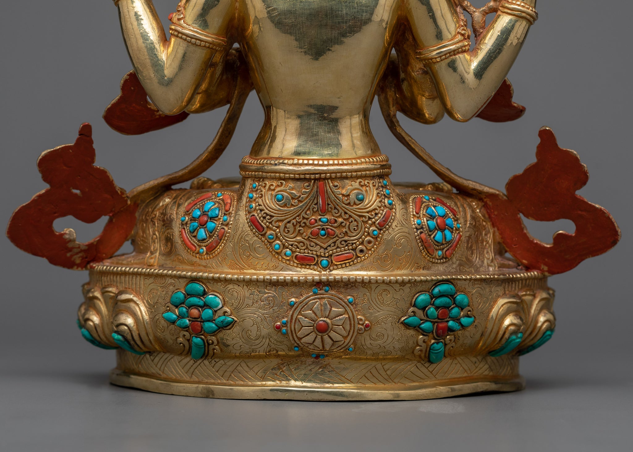 Divine 4-Arm Chenrezig Gold Gilded Statue | Embodiment of Compassion