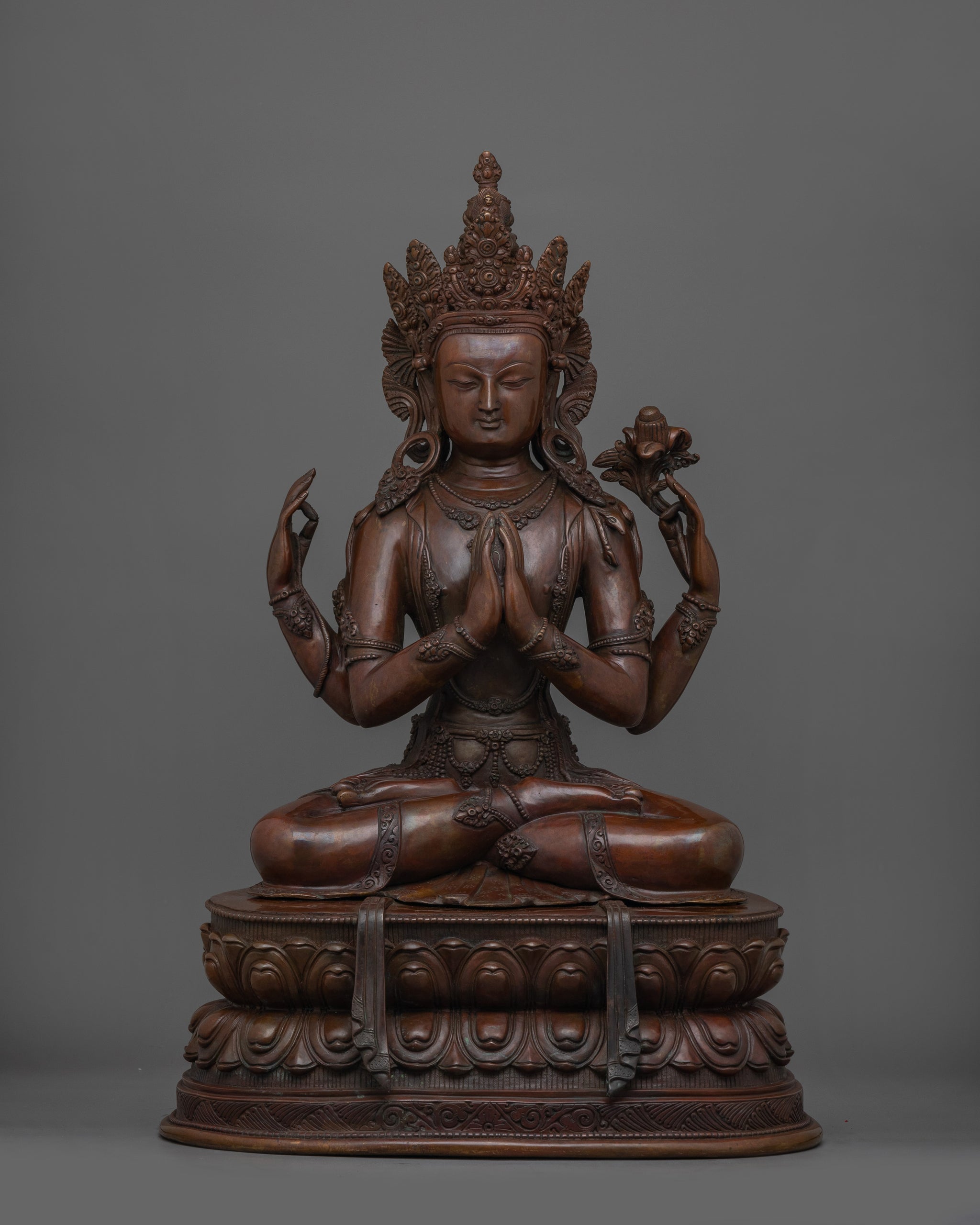 Himalayan 4-Armed Chenrezig Sculpture | Bodhisattva of Compassion and Healing