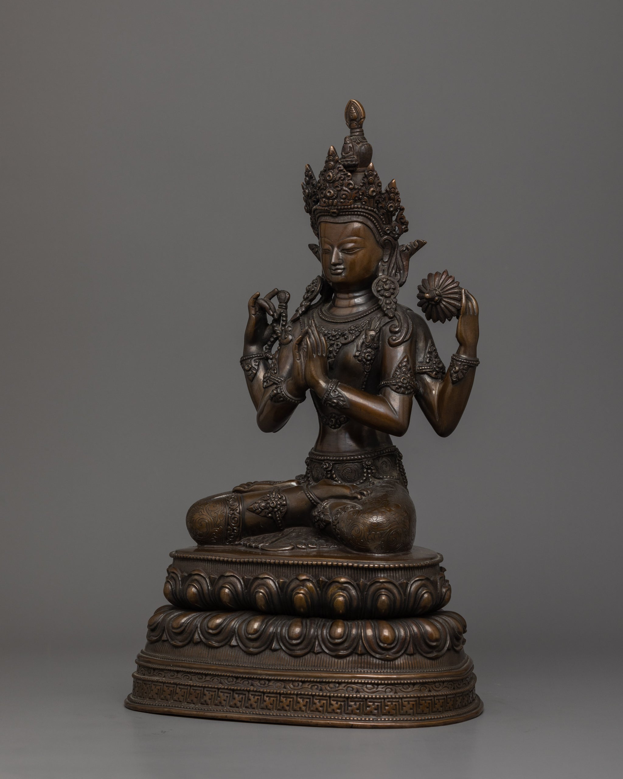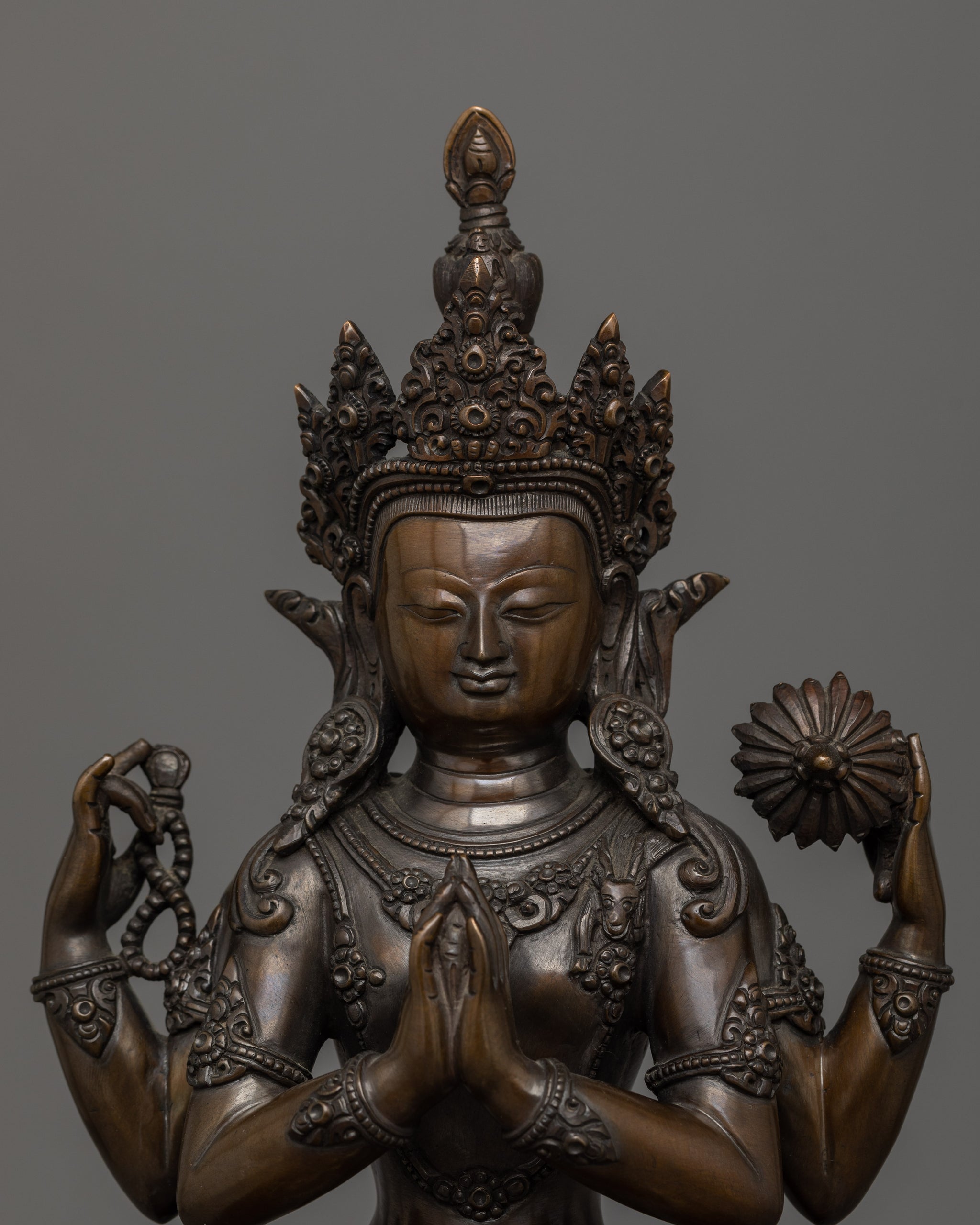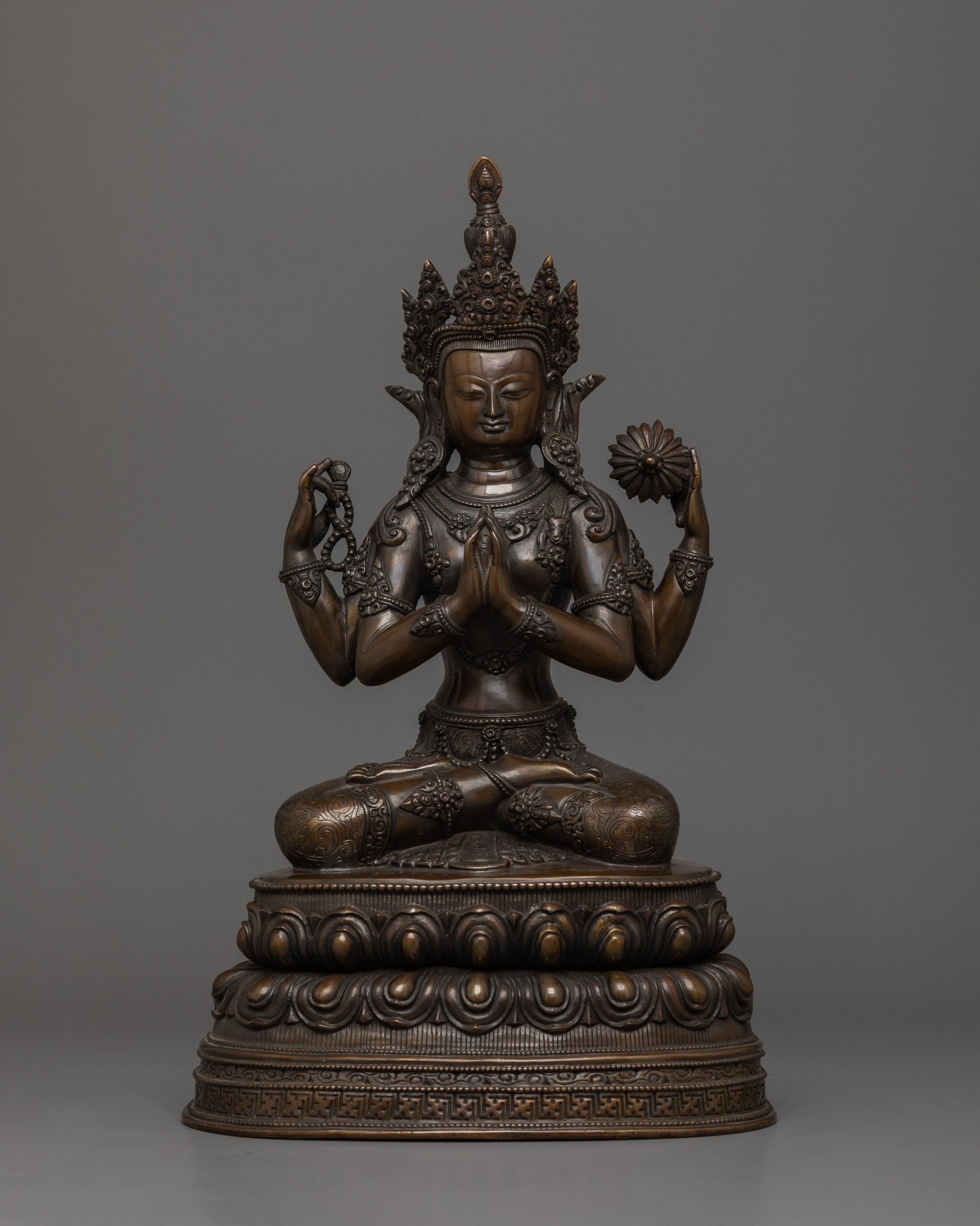 4 Armed Chenrezig with Oxidized Copper Body | The Buddha of Infinite Compassion