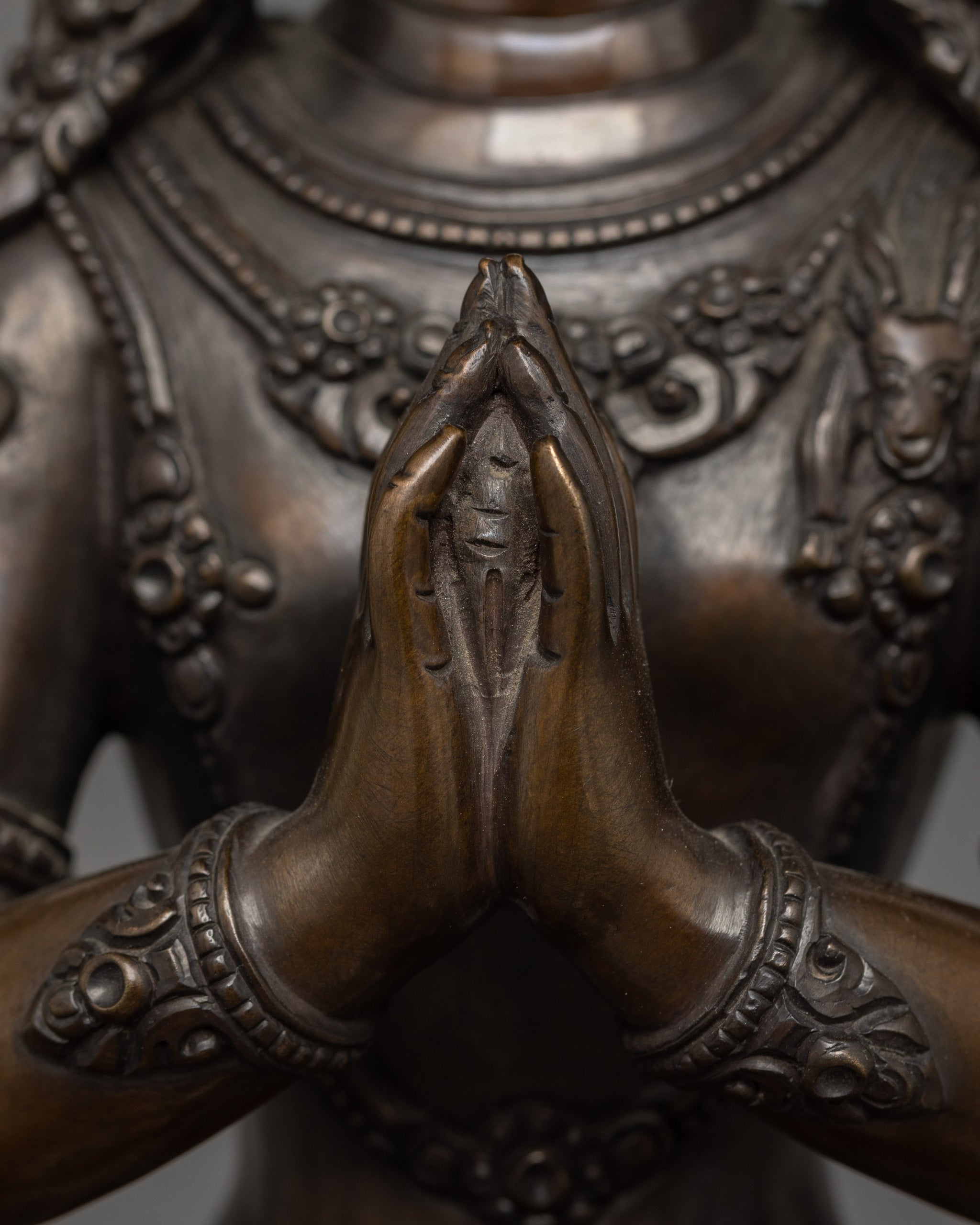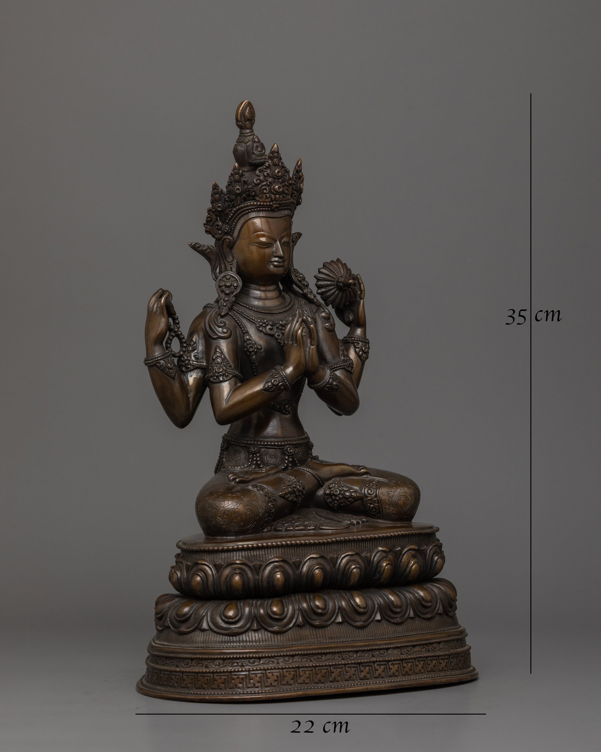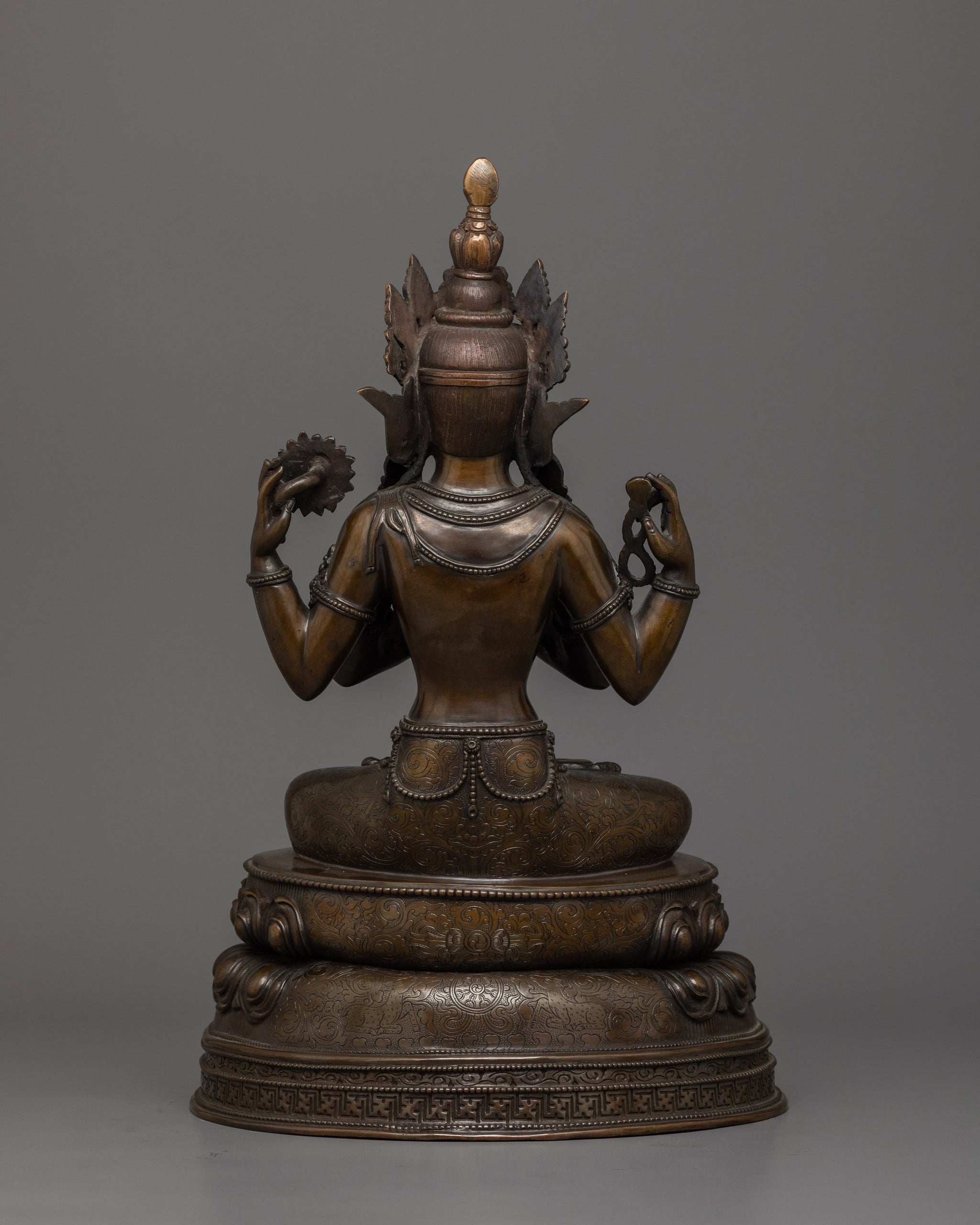 4 Armed Chenrezig with Oxidized Copper Body | The Buddha of Infinite Compassion