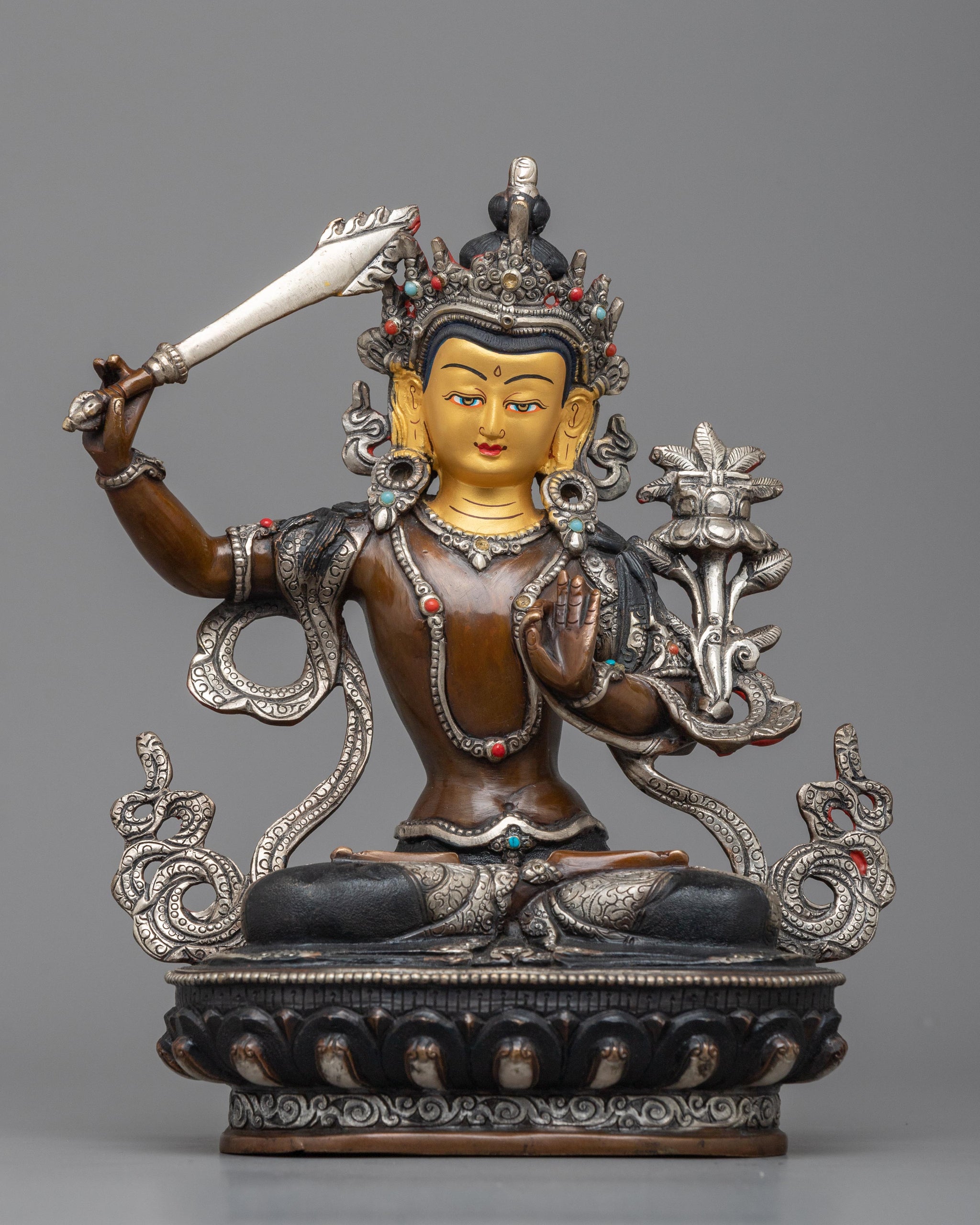 8.6 Inch Manjushri Statue | Beacon of Transcendent Wisdom in Silver