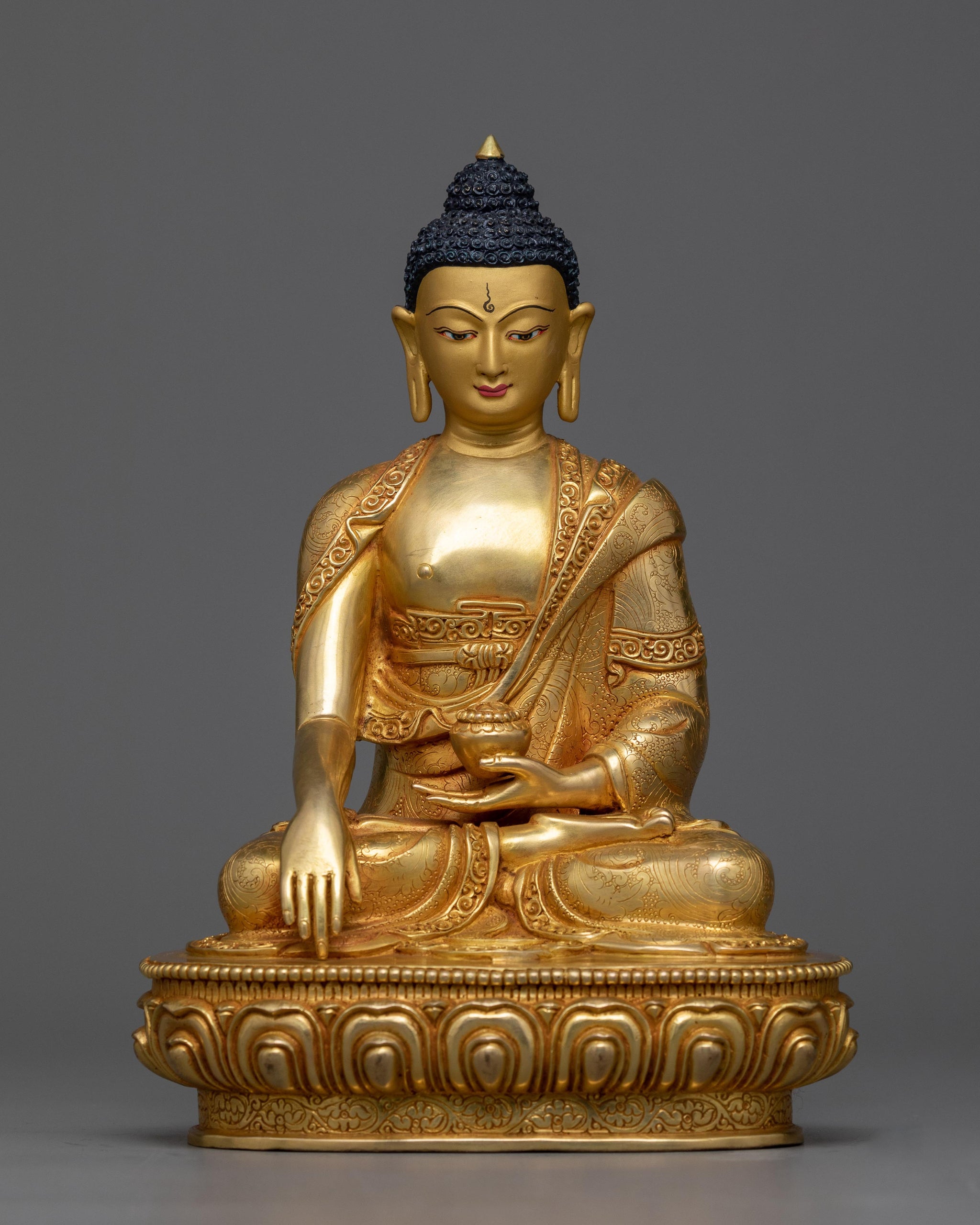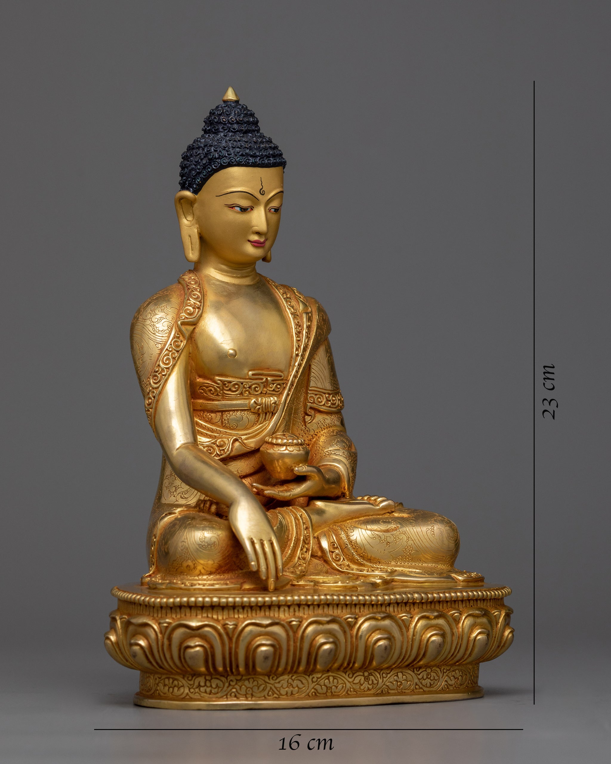 9-Inch Shakyamuni Buddha Statue in Radiant 24K Gold | Himalayan Artwork