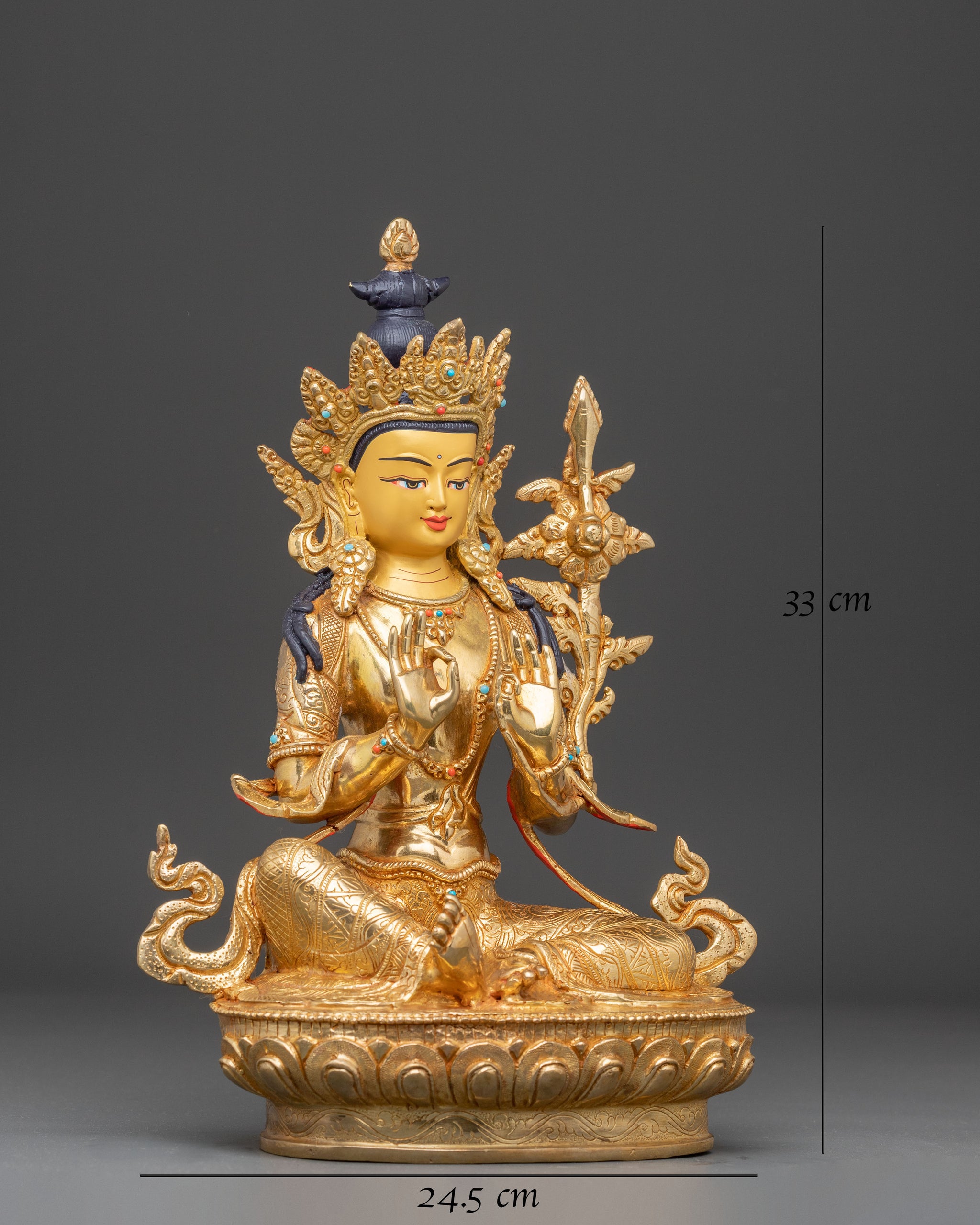 The statue is very beautiful. The craftsman who crafted it clearly shows the care and heart he put into it. It is a true dharma jewel on the altar. Shipping was quick, considering the recent events in Nepal. It was carefully packed and filled in a wooden box. If you're buying for shipping to the European Union, please note that customs duties on items from outside the EU are as high as 23 percent of the value.