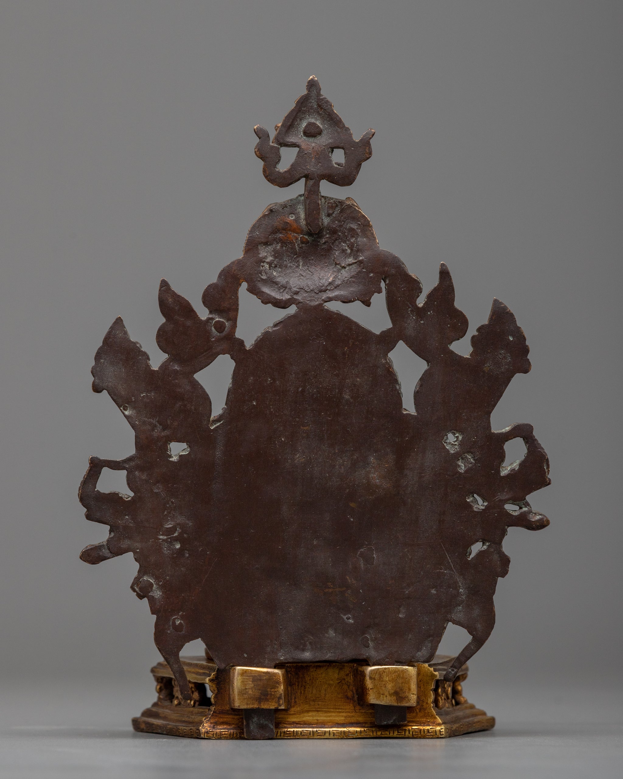 Vajrayogini is stunning. The details are amazing. It's easy to make out her facial expressions, skulls, feet, and the ring of fire around her. You can tell she's handmade. There is a consecration hole in her back.