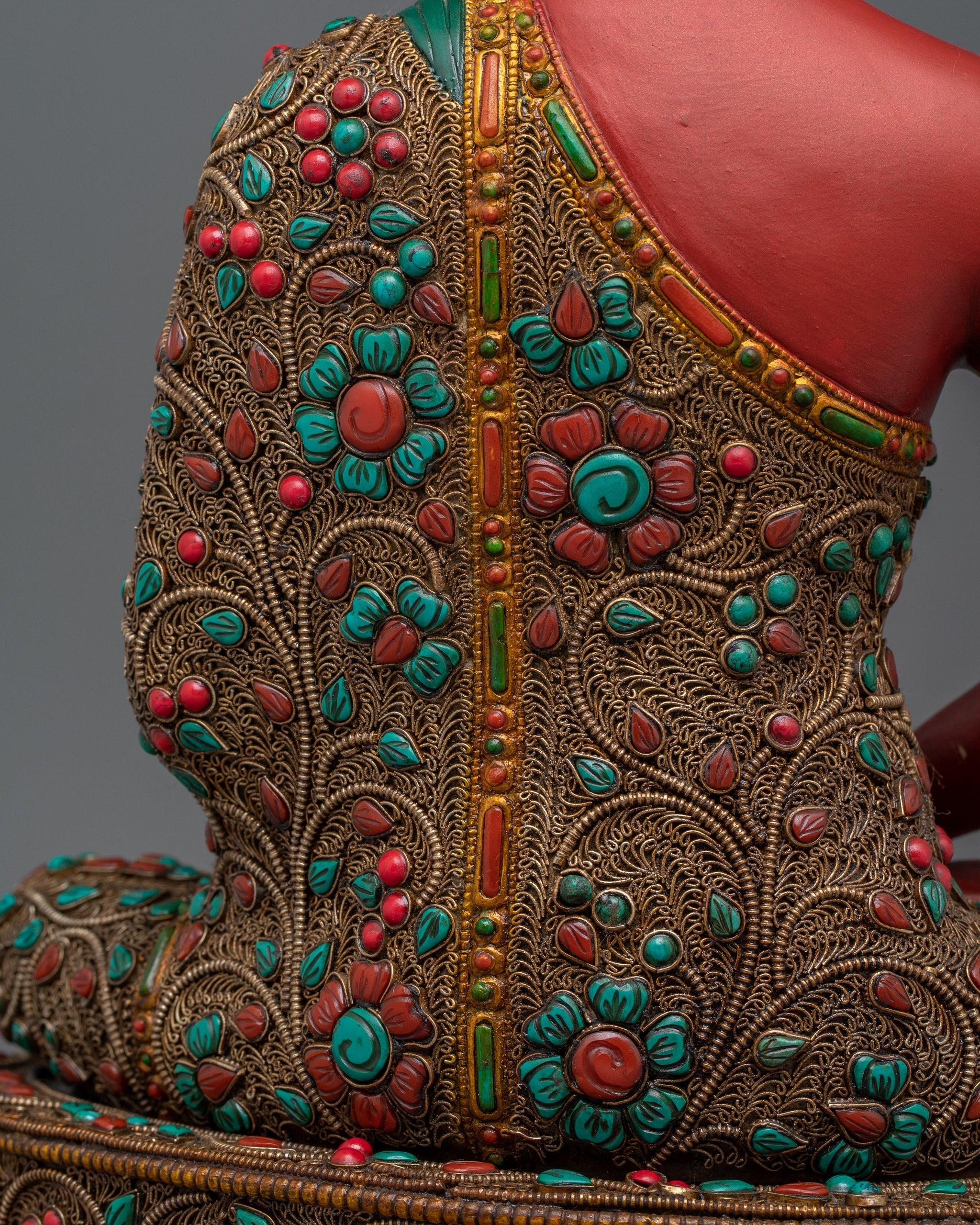 Vajrayogini is stunning. The details are amazing. It's easy to make out her facial expressions, skulls, feet, and the ring of fire around her. You can tell she's handmade. There is a consecration hole in her back.