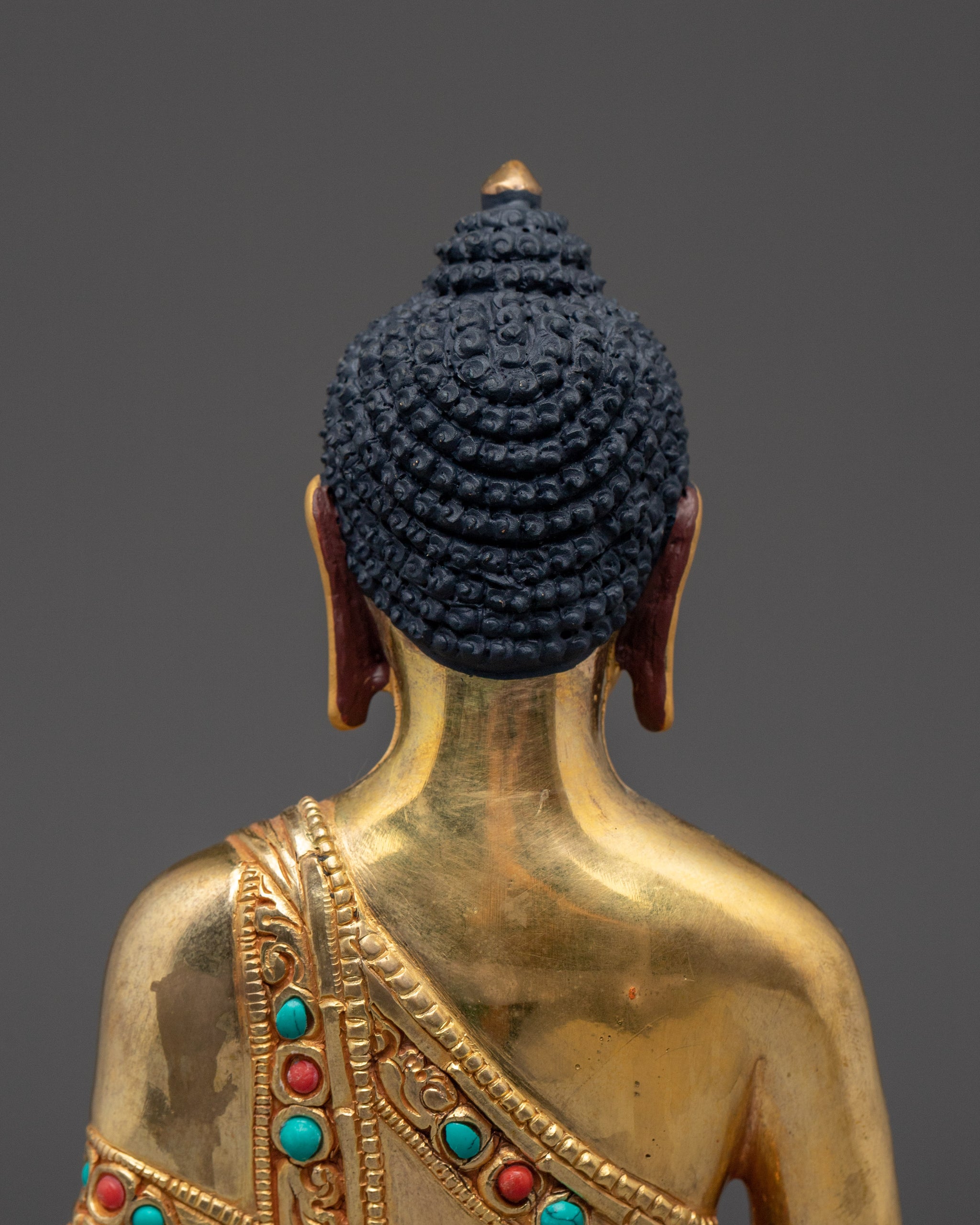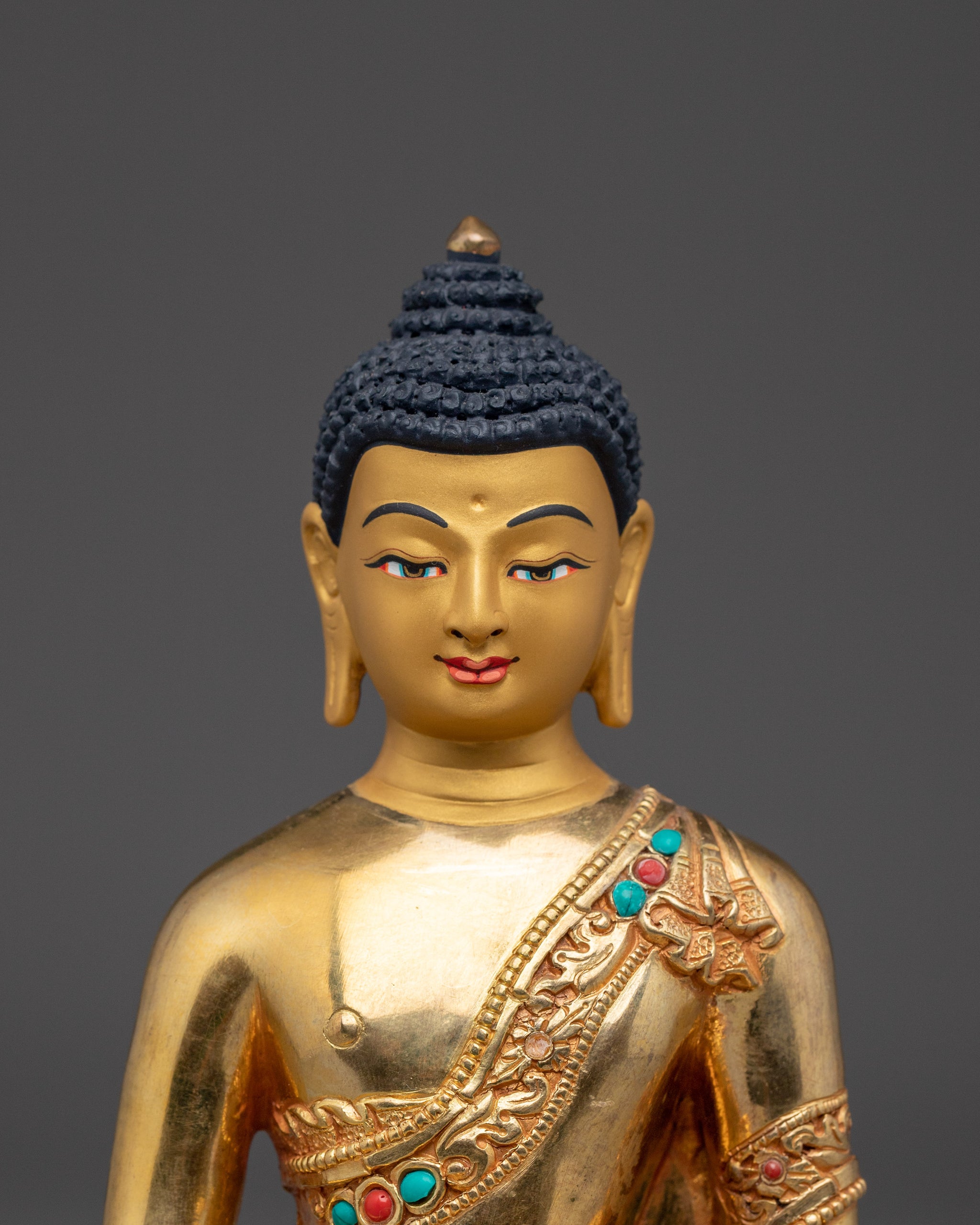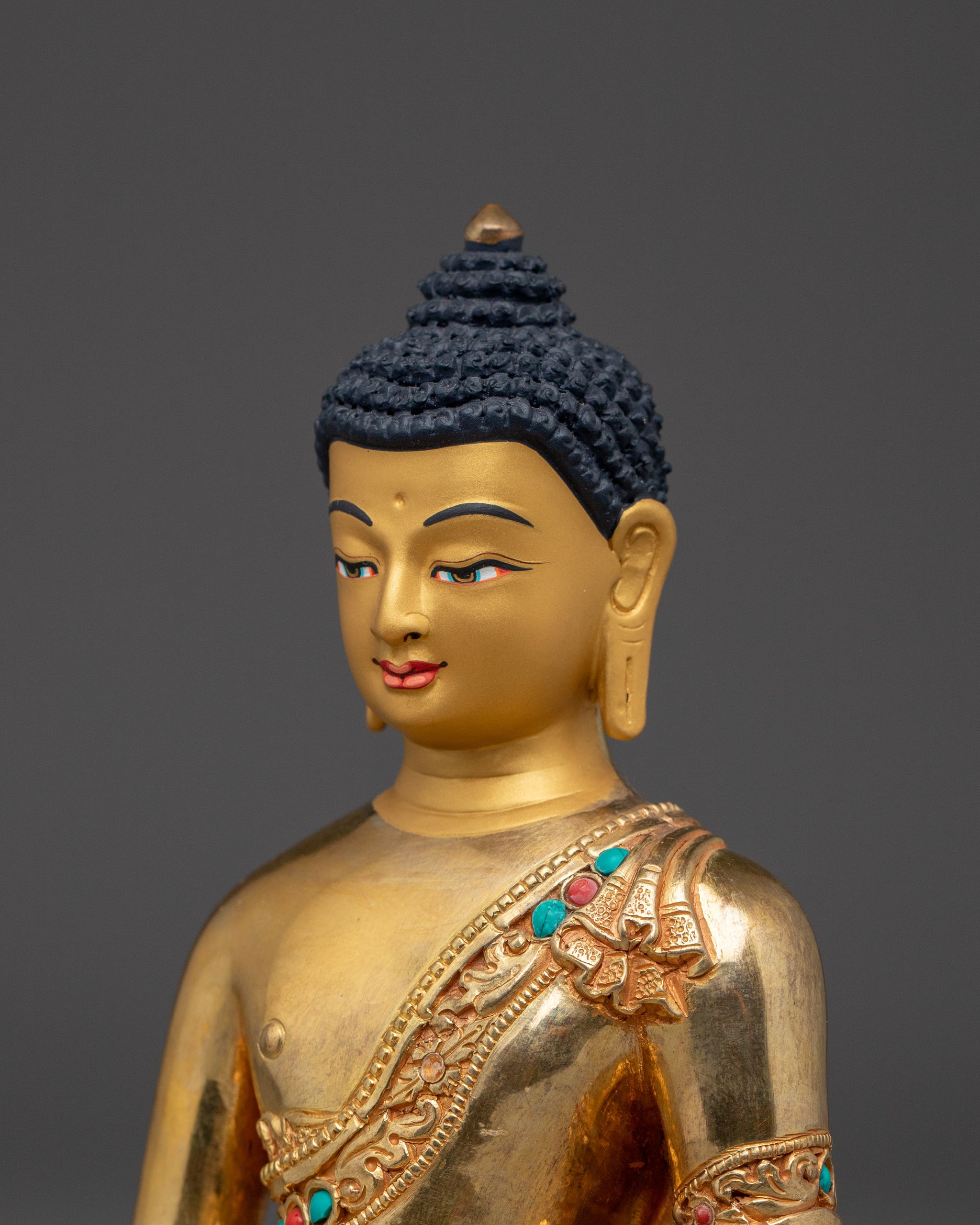 This Pure Land Buddha Amitabha Statue With Halo stands at a 7.5” (19cm) in height with a base width of 5.3” (13.5cm). Crafted from a copper body, the statue is enhanced with 24K gold gilding, giving it a radiant finish. Intricate gold and acrylic paintings bring the statue's features to life, adding color and detail to the serene depiction of Amitabha Buddha. Crafted by expert artisans, this item symbolizes the rich traditions of Himalayan Buddhism, making it an important addition to altars, meditation places, or holy collections.