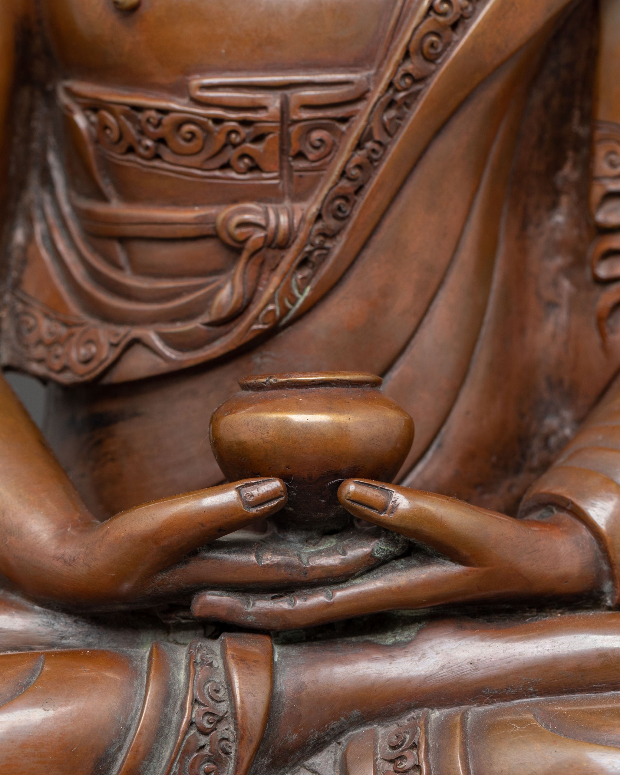I just received my Amitayus copper statue, and I couldn't be more pleased. My appreciation goes out to the skilled artists at Termatree, and to Nima in particular, who helped me with the ordering process, taking care of a few special requests of mine. She was such a pleasure to work with. It was packaged with care, and arrived sooner than expected. He occupies a prominent position in my home, instilling a sense of peace within me. I couldn't be happier. Thanks again, Termatree!