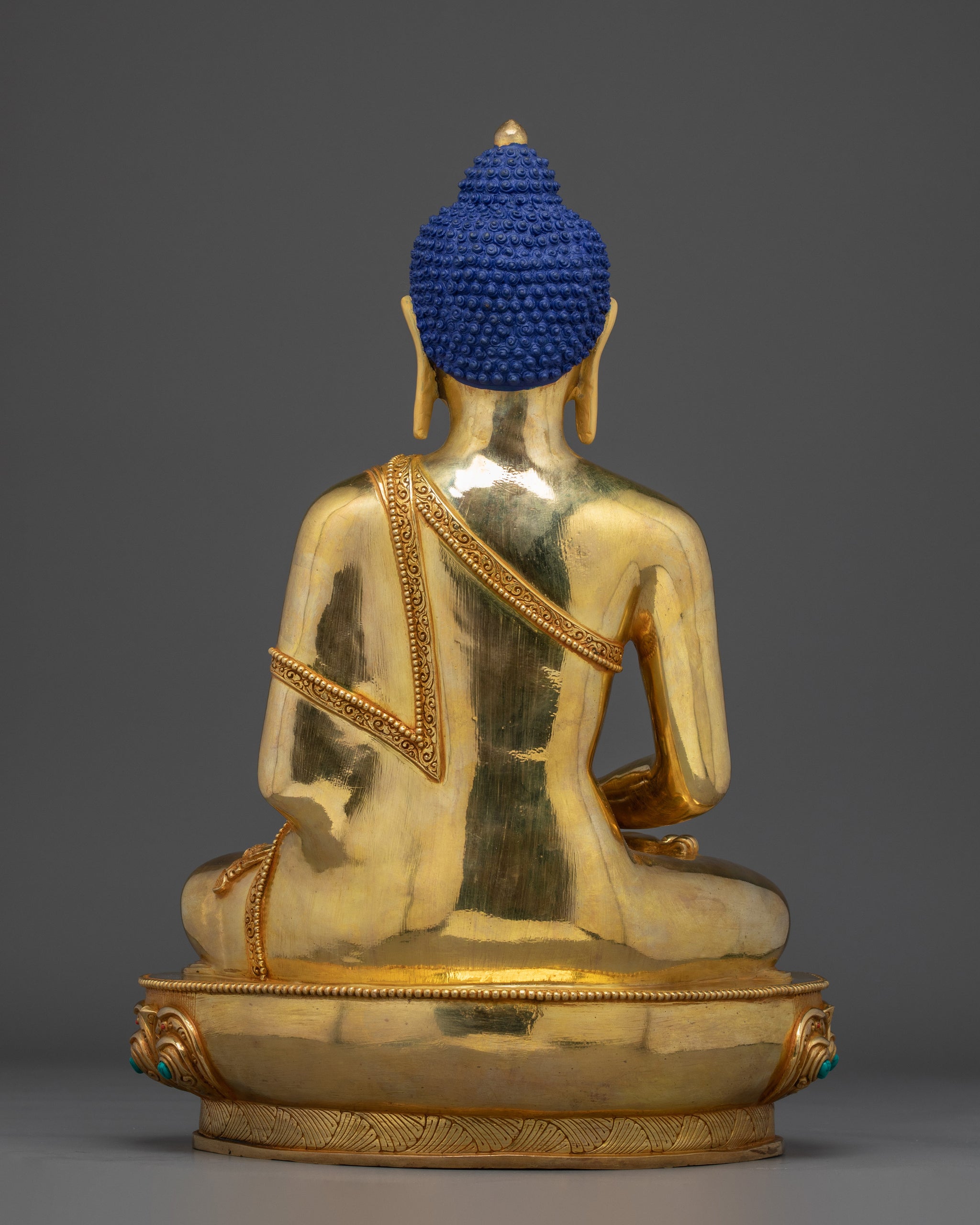 Amitabha Golden Art, Buddha of Infinite Light, stands 18.1 inches (46 cm) tall with a 12.6-inch (32 cm) wide base and weighs 8.47 kilograms. Made from a copper body, it is richly adorned with 24K gold gilding and enhanced by intricate gold and acrylic paintings. Reflecting the essence of traditional Himalayan craftsmanship, this statue brings spiritual elegance and artistic depth to any altar, meditation space, or sacred setting.