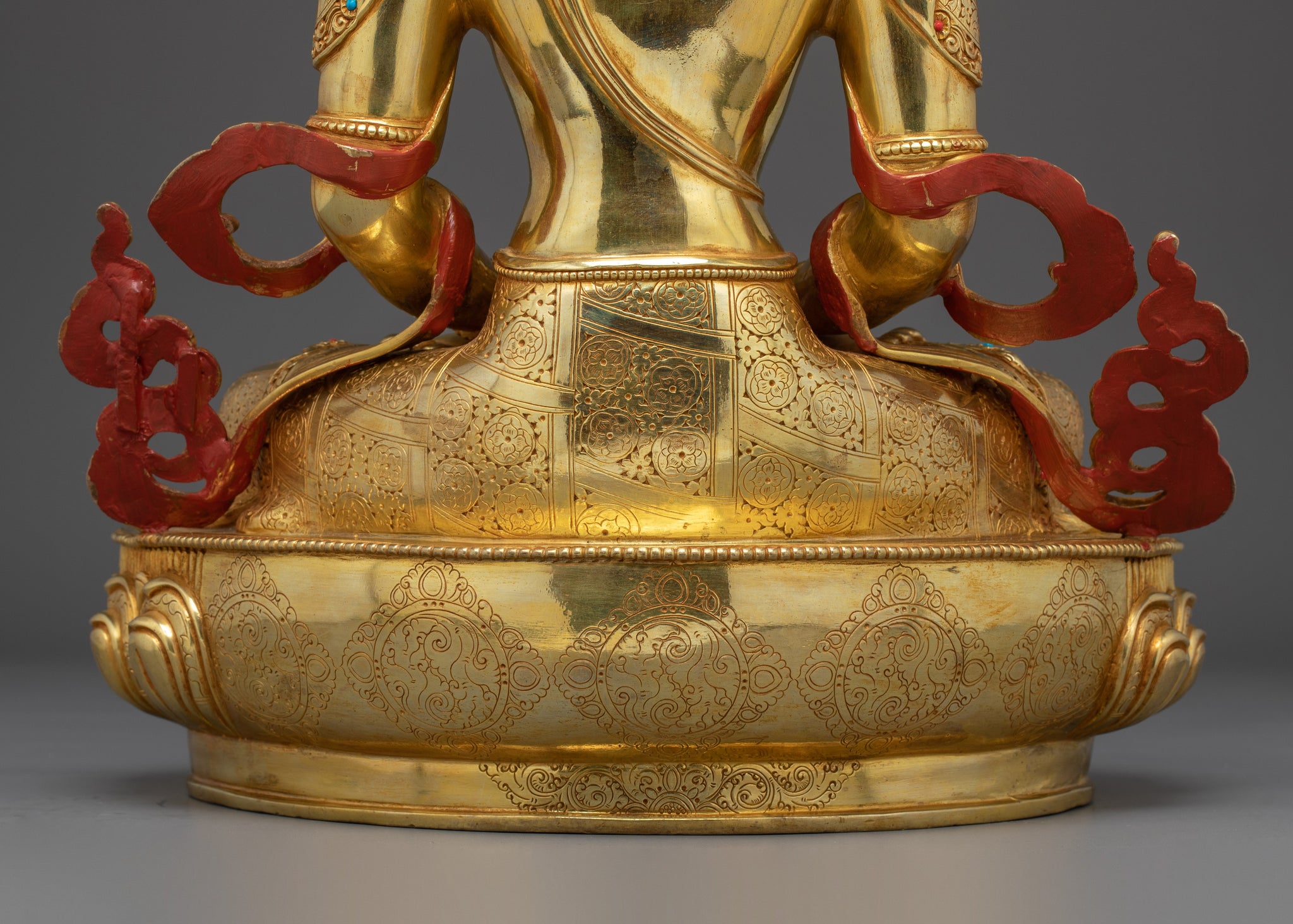 Vajrayogini is stunning. The details are amazing. It's easy to make out her facial expressions, skulls, feet, and the ring of fire around her. You can tell she's handmade. There is a consecration hole in her back.