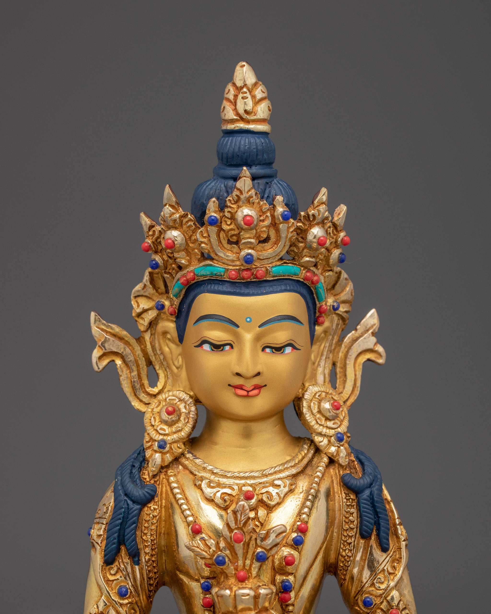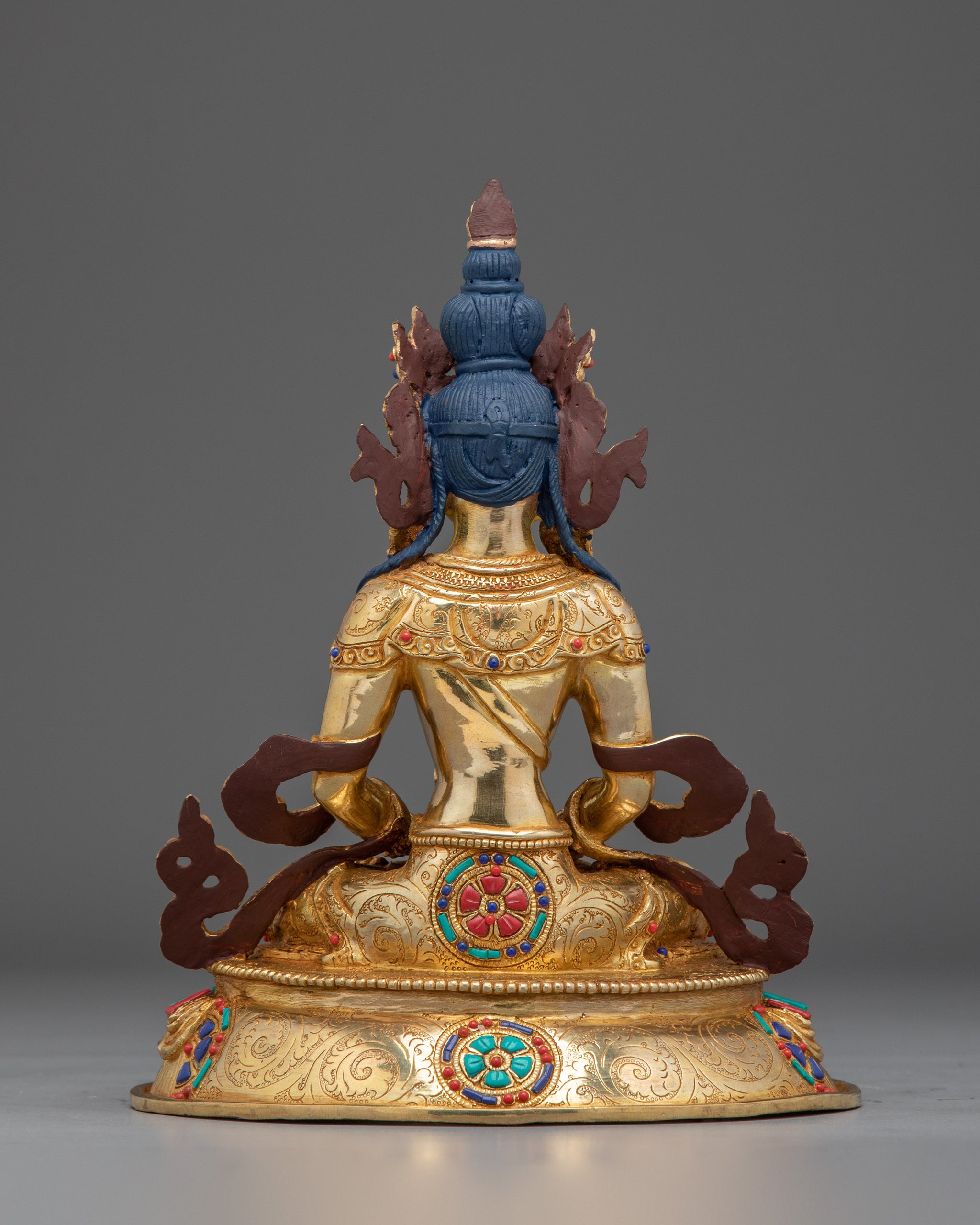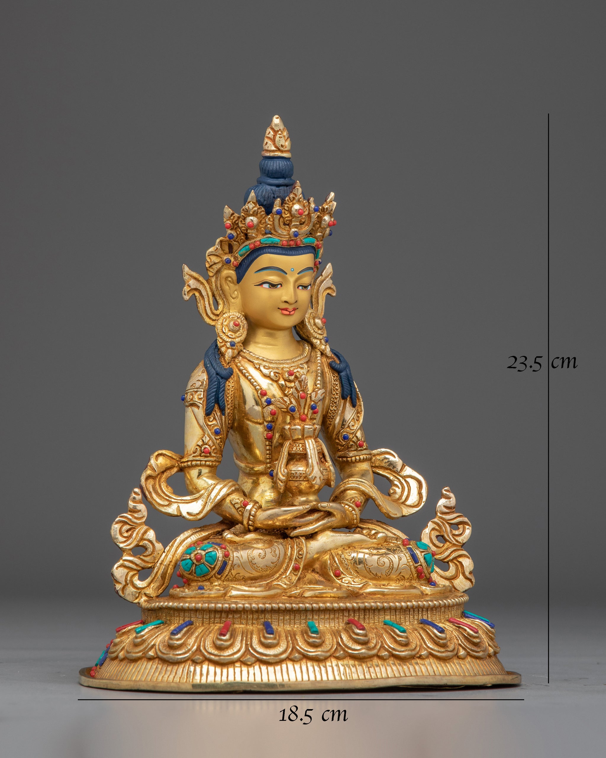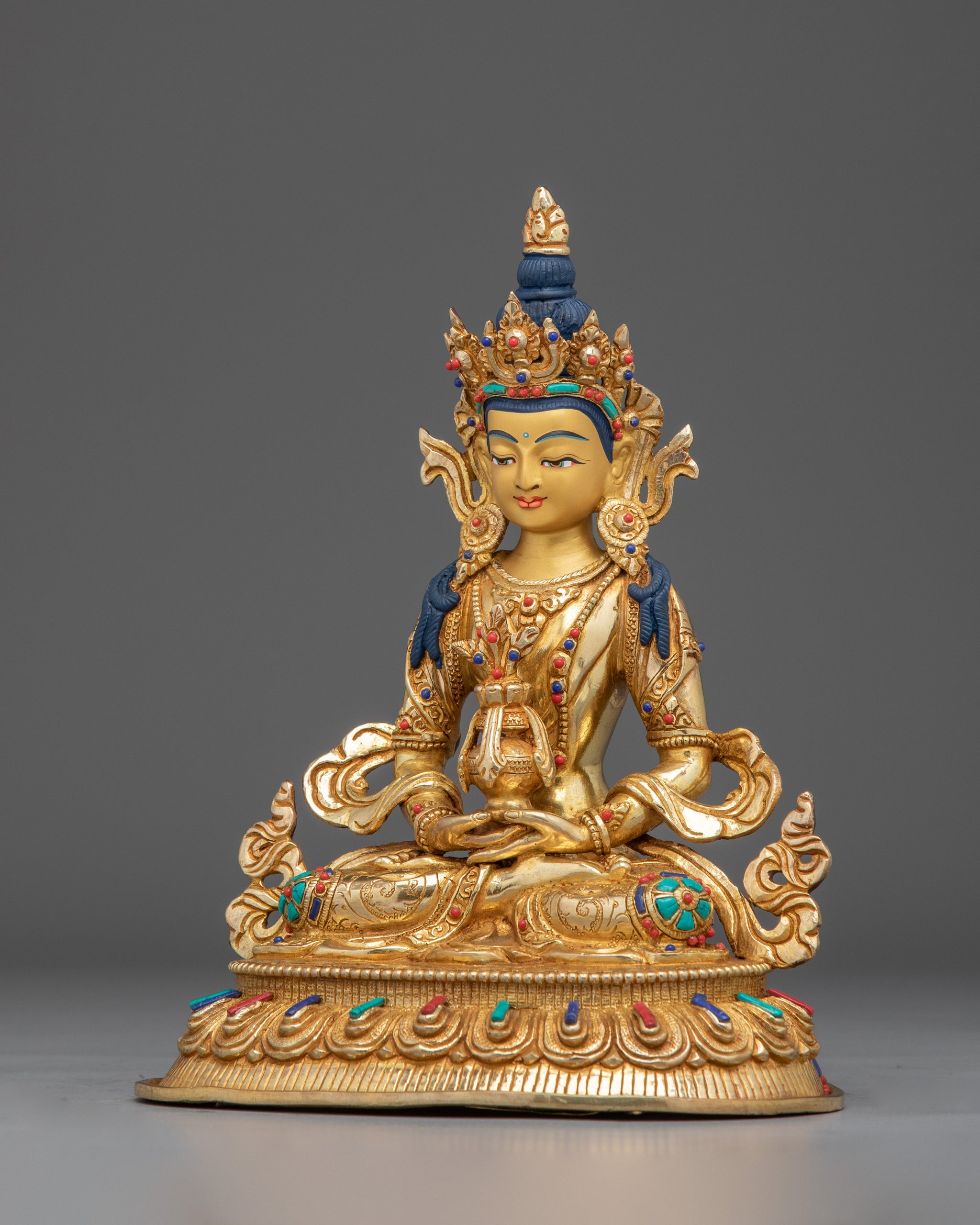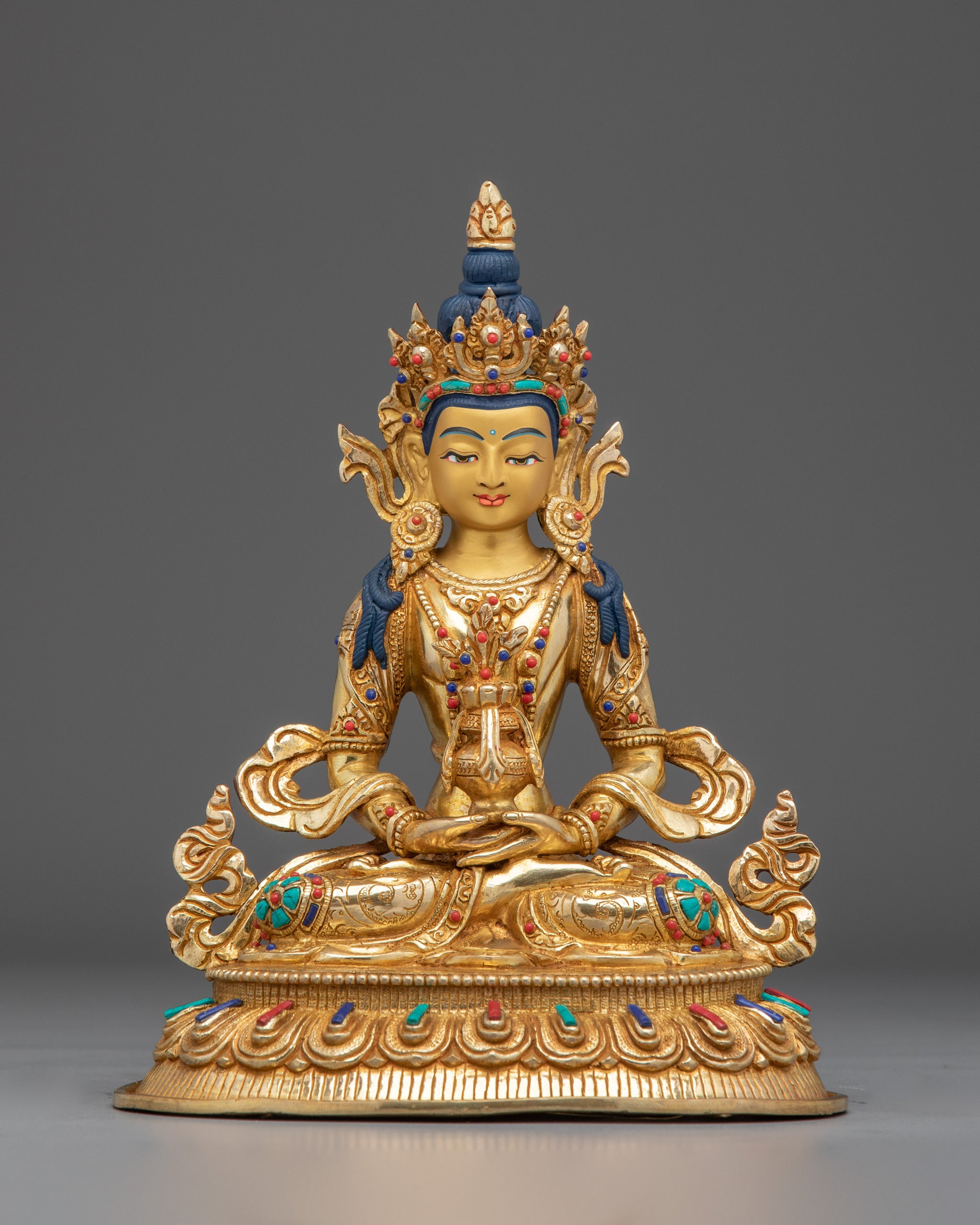 Amitayus Buddha Copper and Gemstone Statue | Meditation and Altar Decor
