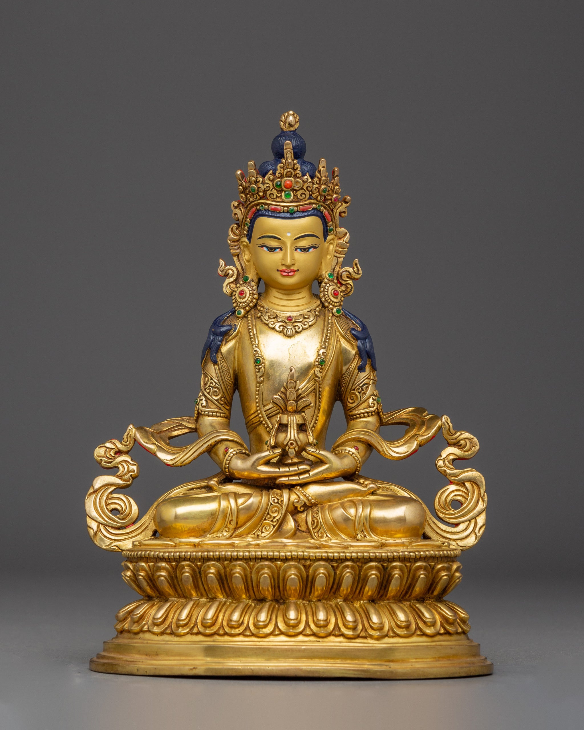 Amitayus Copper Statue and Gemstones | Handcrafted for Meditation & Spiritual Home Decor