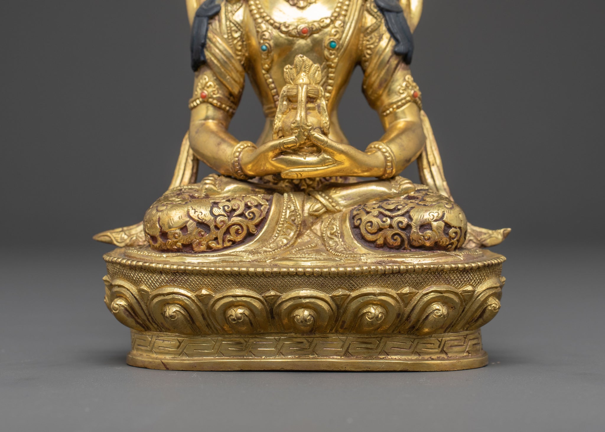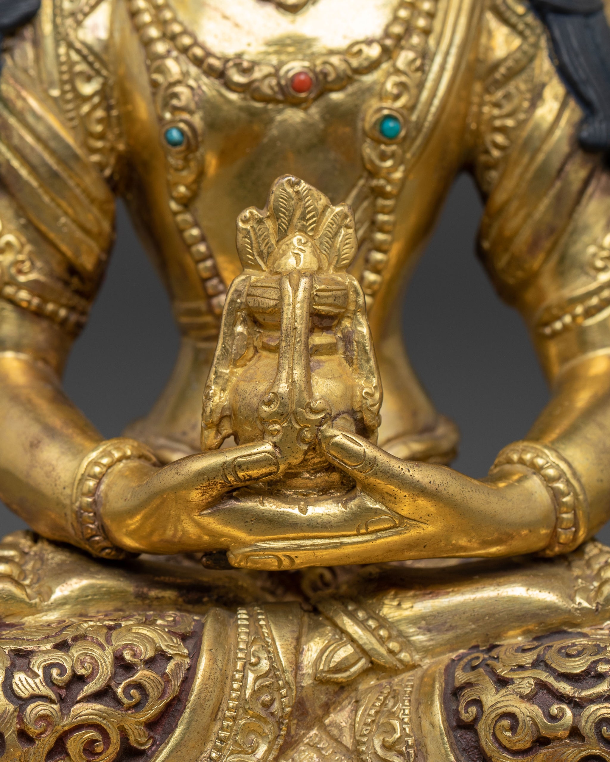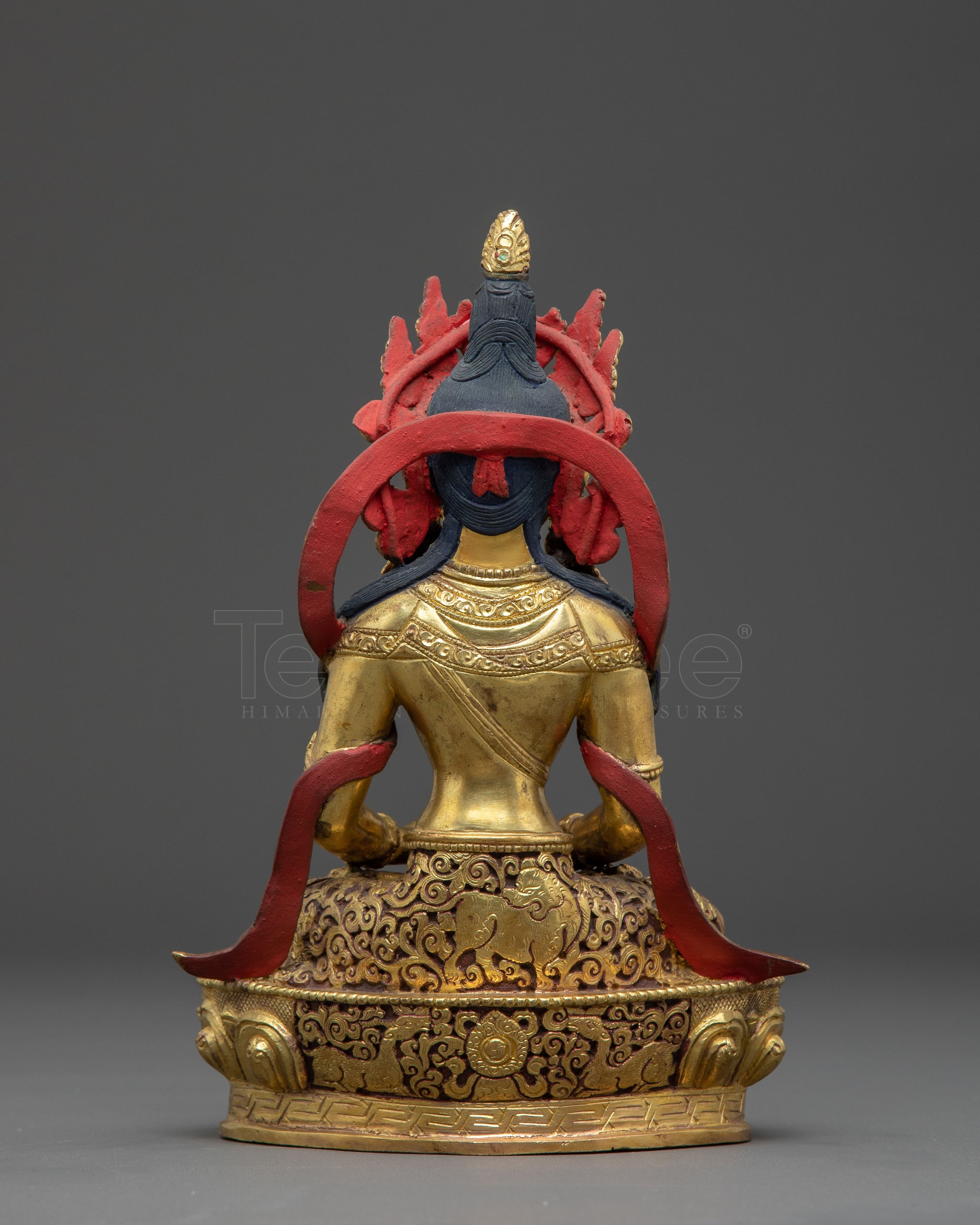 Amitayus is represented sitting in a meditative posture, indicating his vast wisdom and unwavering concentration. His hands are in dhyana mudra, holding the vase of immortality, which represents eternal life and spiritual blessings. His calm demeanor radiates compassion and inner peace, Inspiring practitioners to be depicted seated in a meditative posture, symbolizing practicing mindfulness and tranquility.