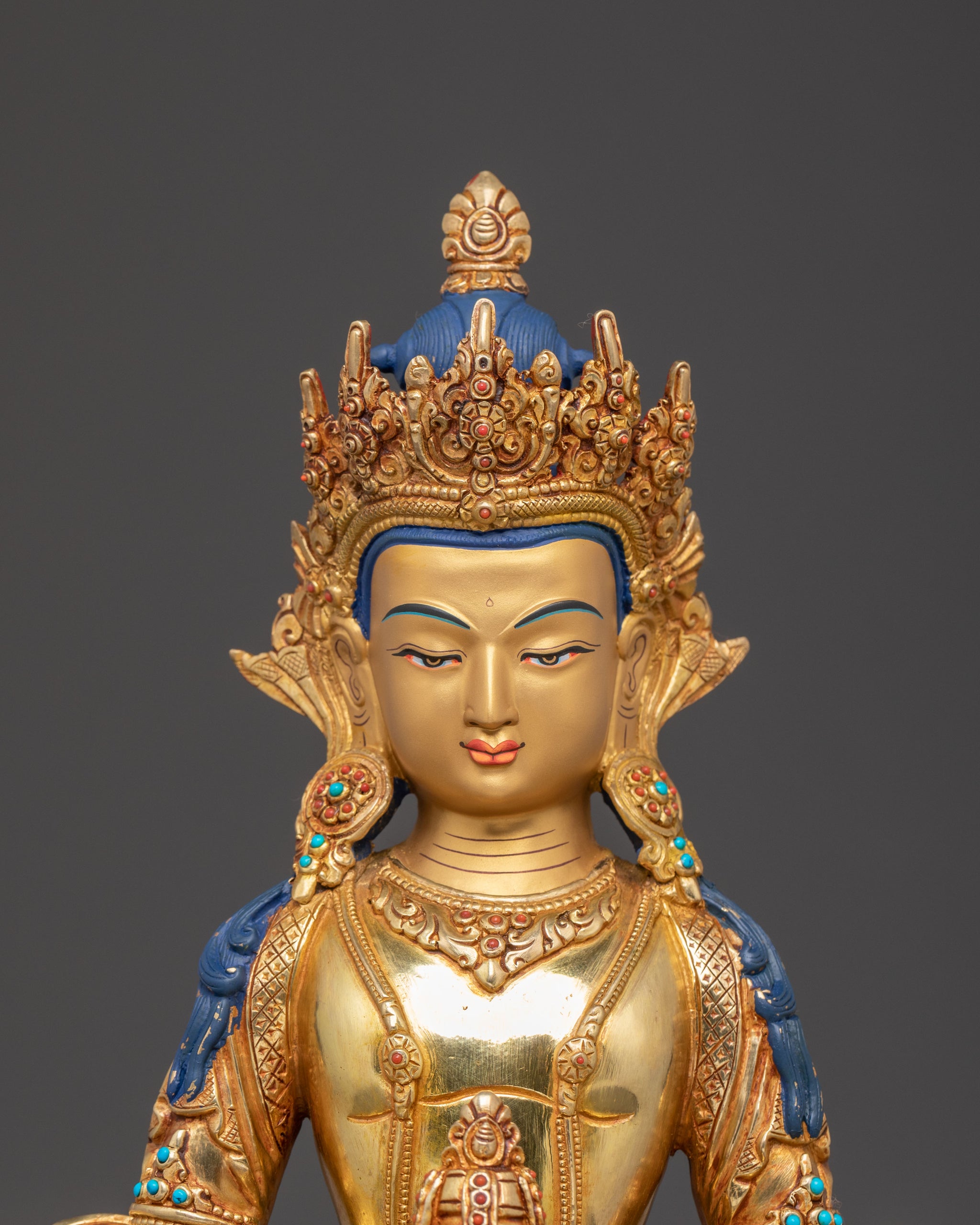 Amitayus Sacred Handcrafted Statue: 24K Gold Gilded Masterpiece