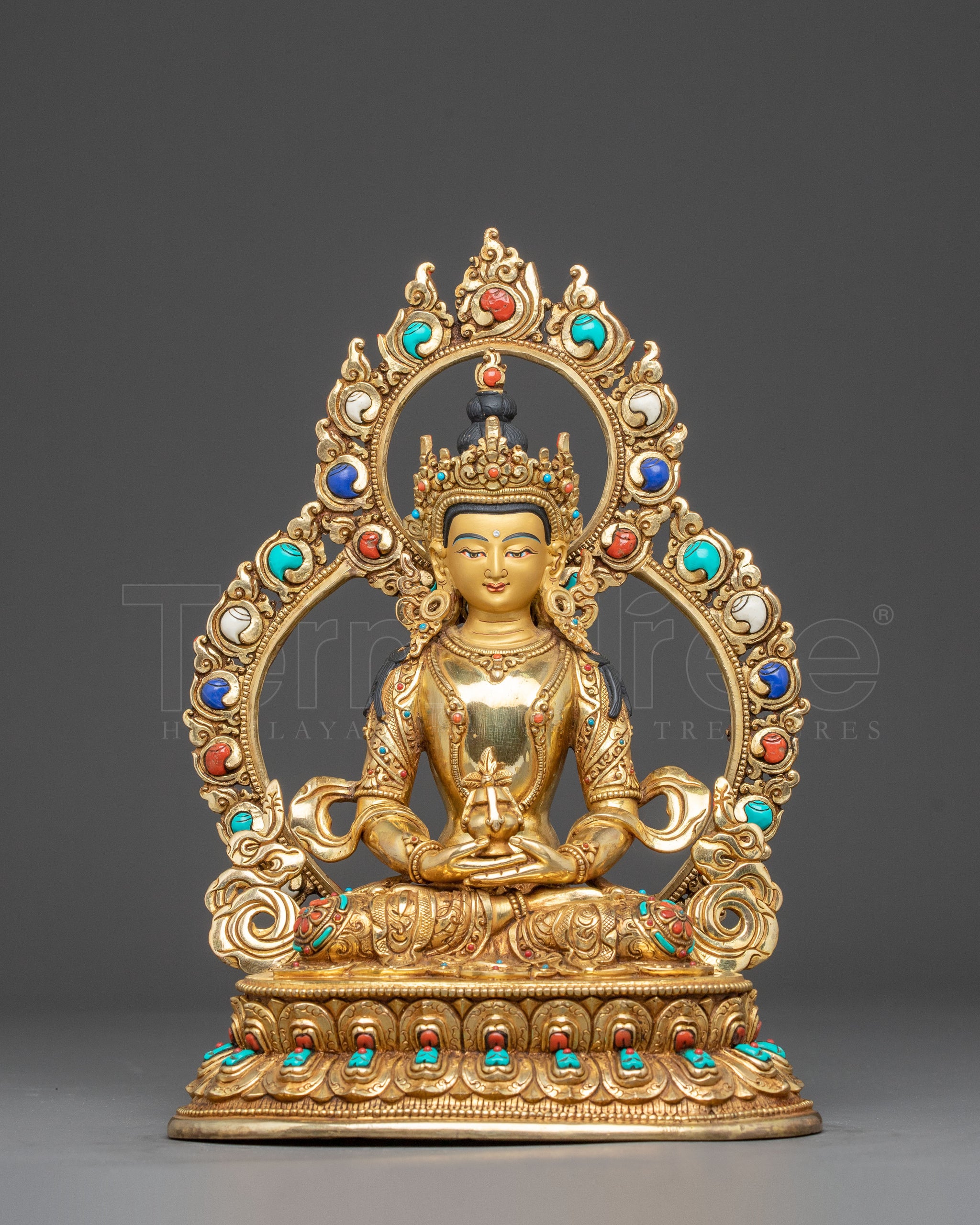 I just received my Amitayus copper statue, and I couldn't be more pleased. My appreciation goes out to the skilled artists at Termatree, and to Nima in particular, who helped me with the ordering process, taking care of a few special requests of mine. She was such a pleasure to work with. It was packaged with care, and arrived sooner than expected. He occupies a prominent position in my home, instilling a sense of peace within me. I couldn't be happier. Thanks again, Termatree!