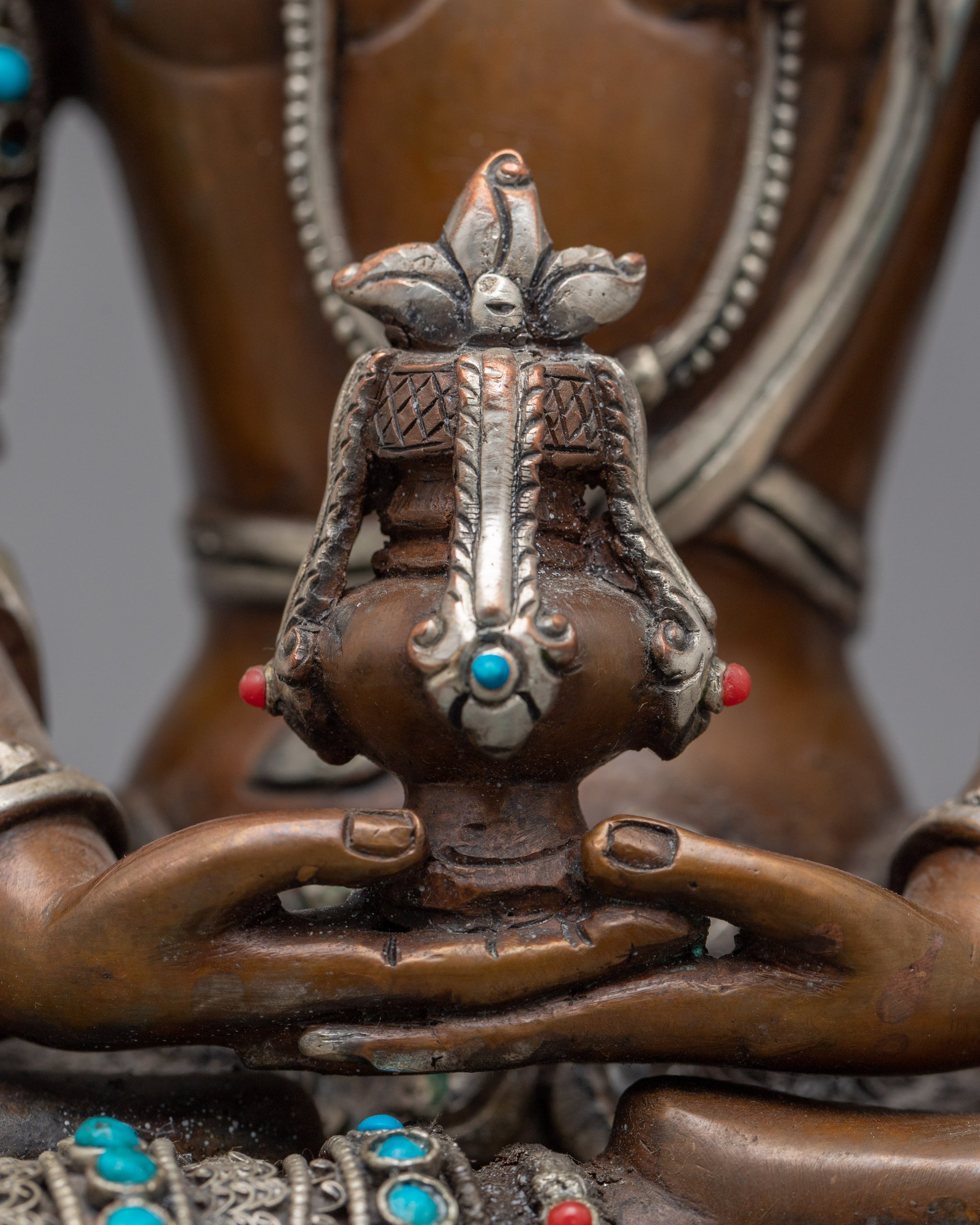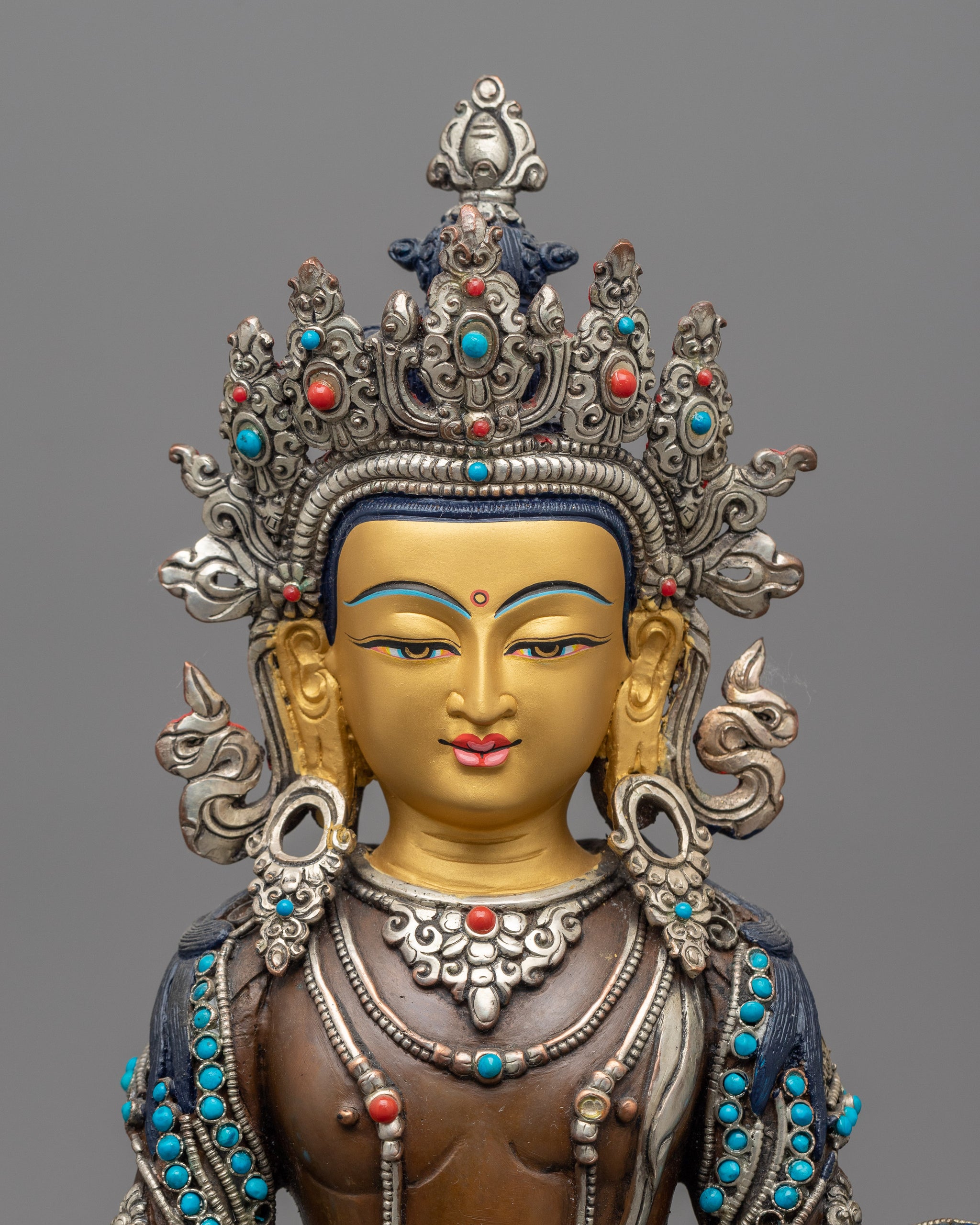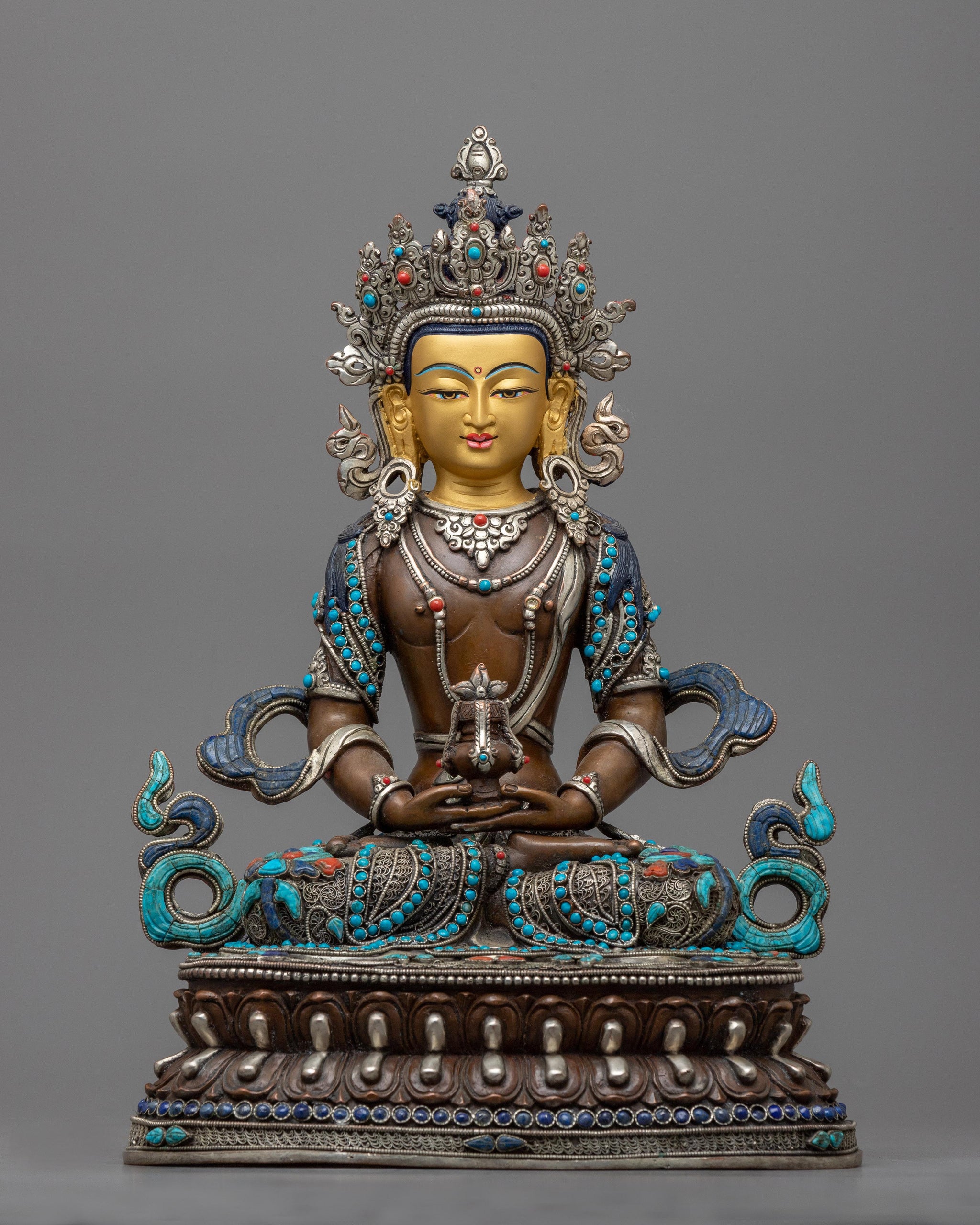 Amitayus Sculpture Adorned with Gemstones | Nepalese Handicrafts