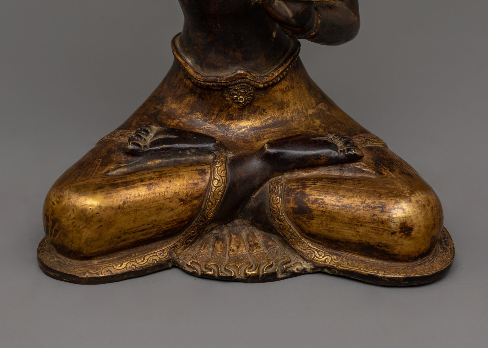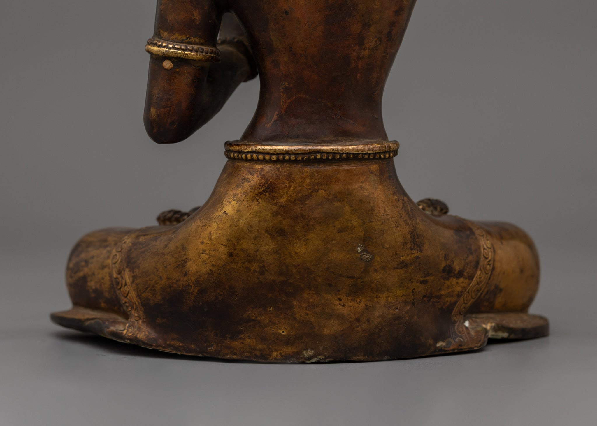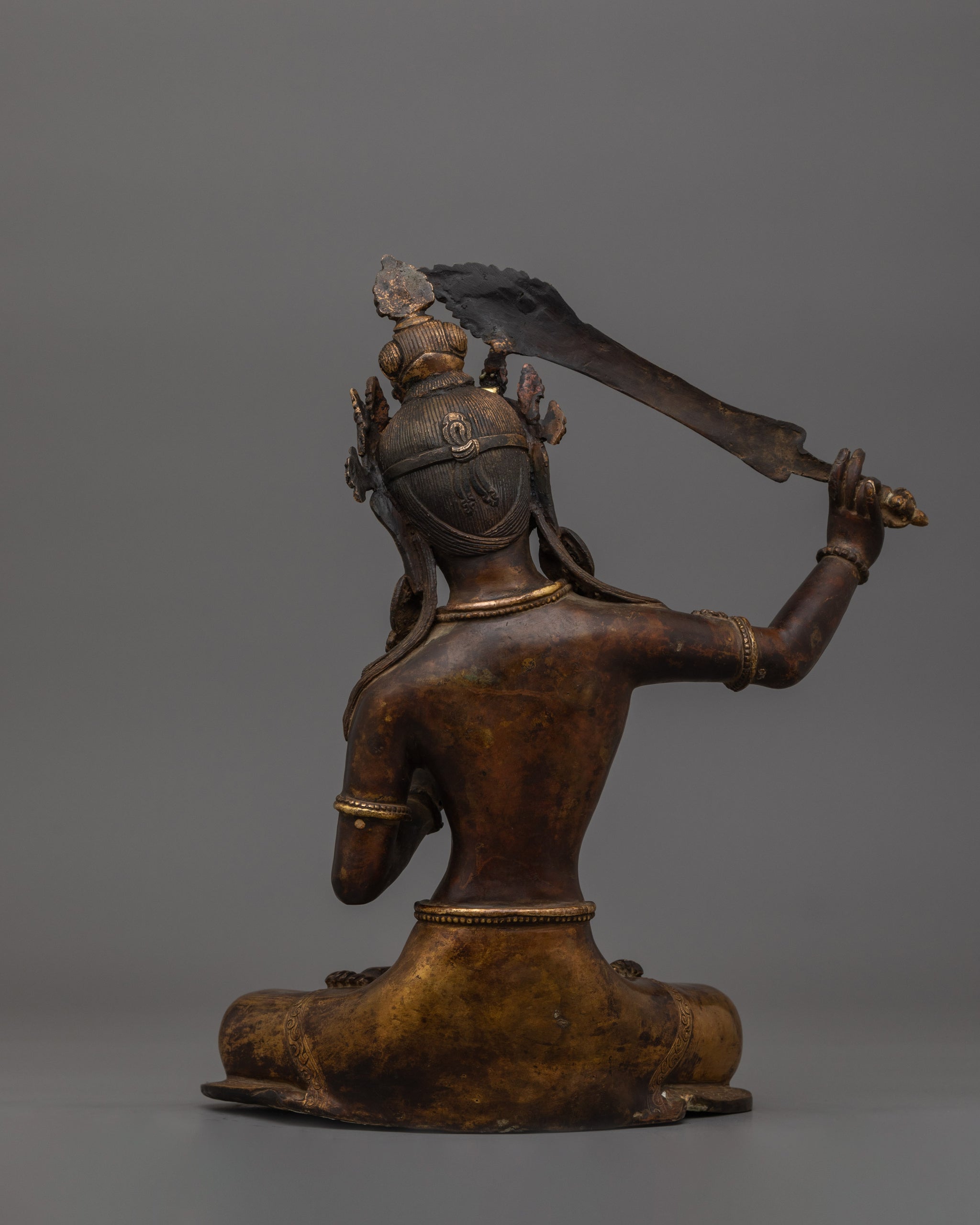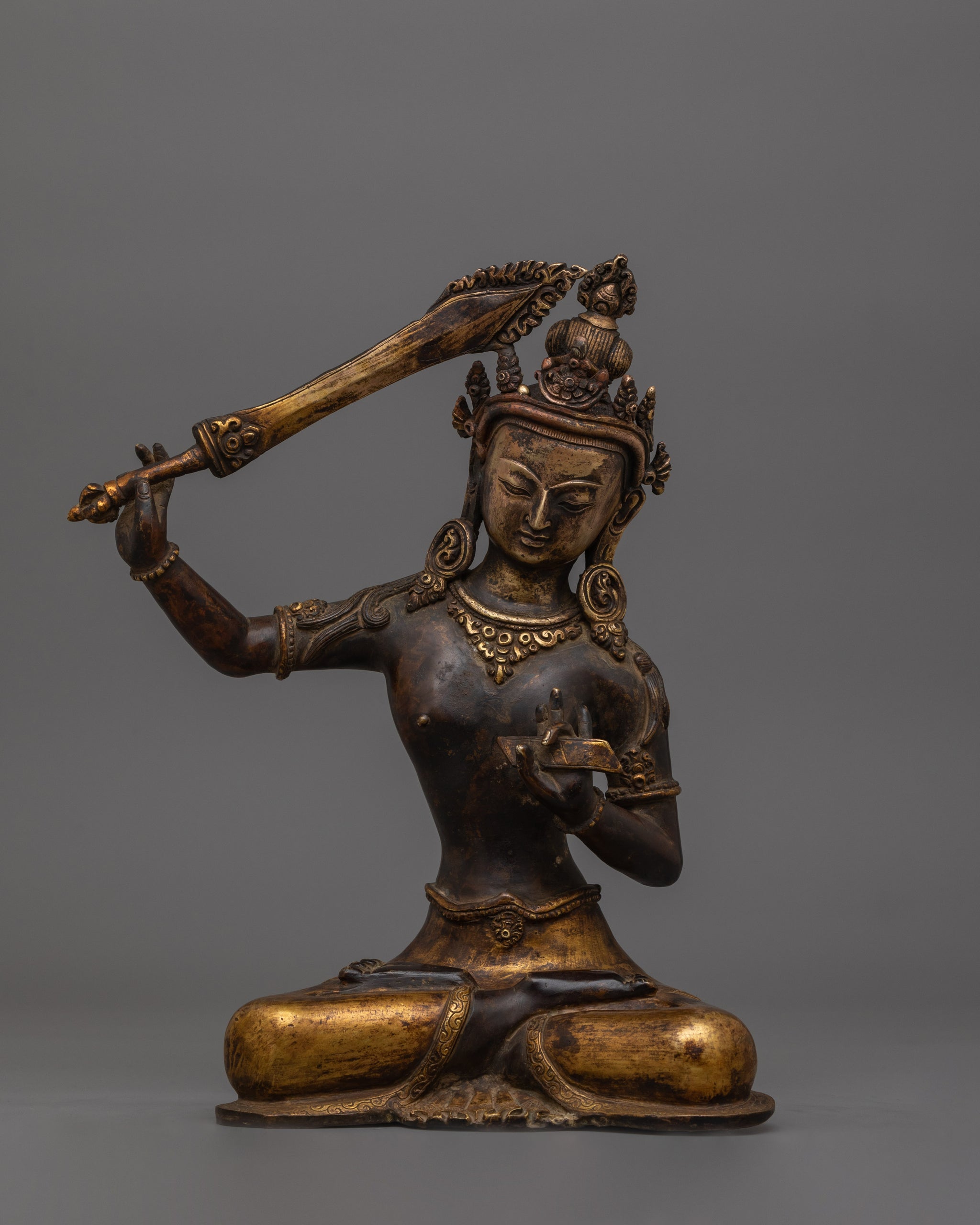 Antique Finished Manjushri Goddess Statue | 24K Gold Gilded Sculpture