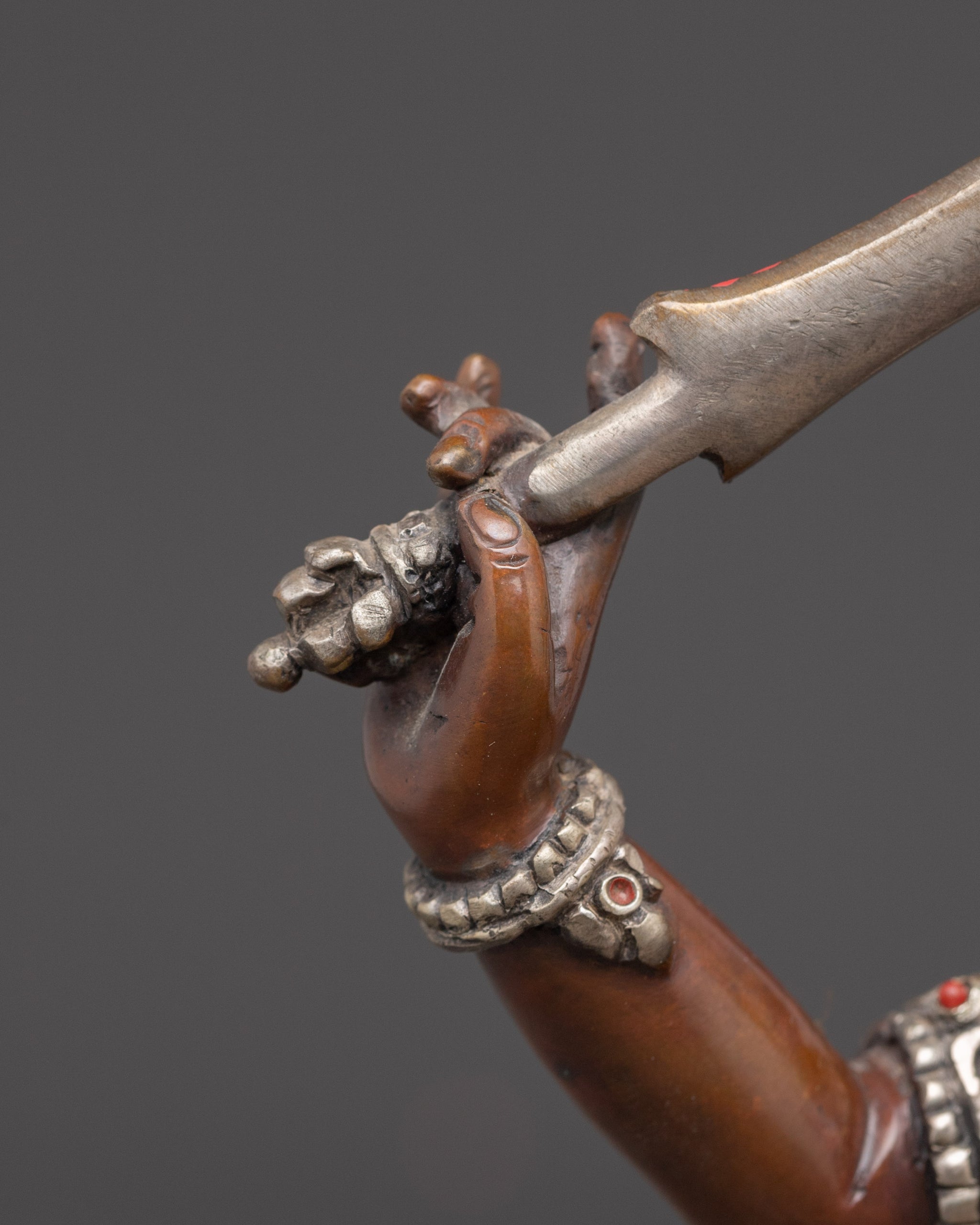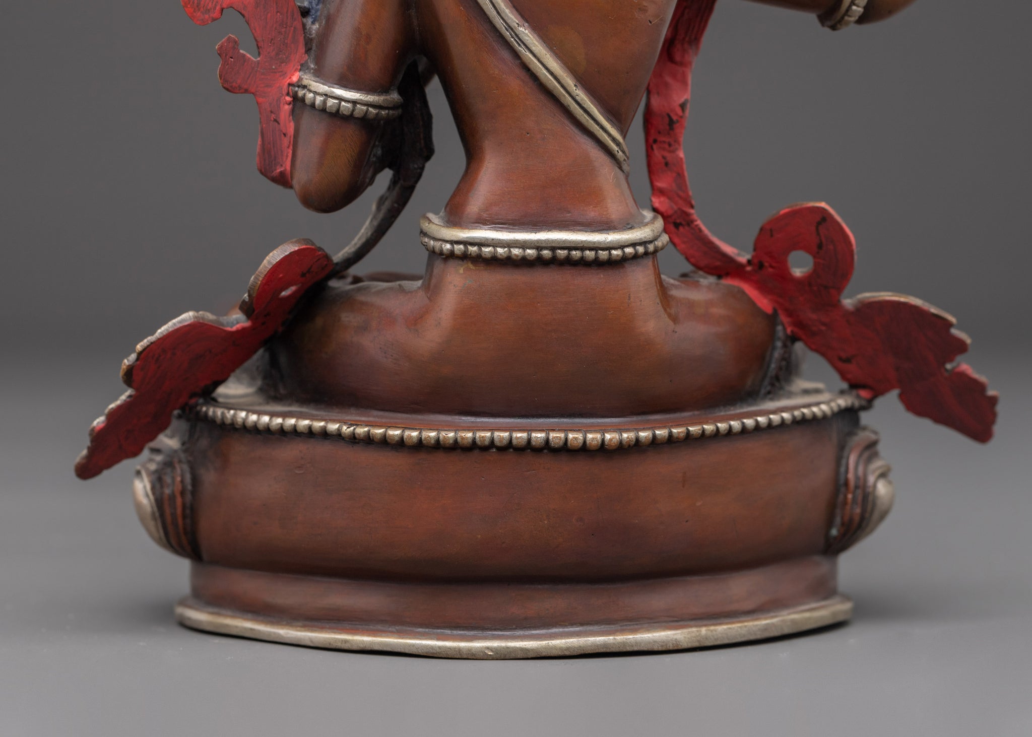 Vajrayogini is stunning. The details are amazing. It's easy to make out her facial expressions, skulls, feet, and the ring of fire around her. You can tell she's handmade. There is a consecration hole in her back.