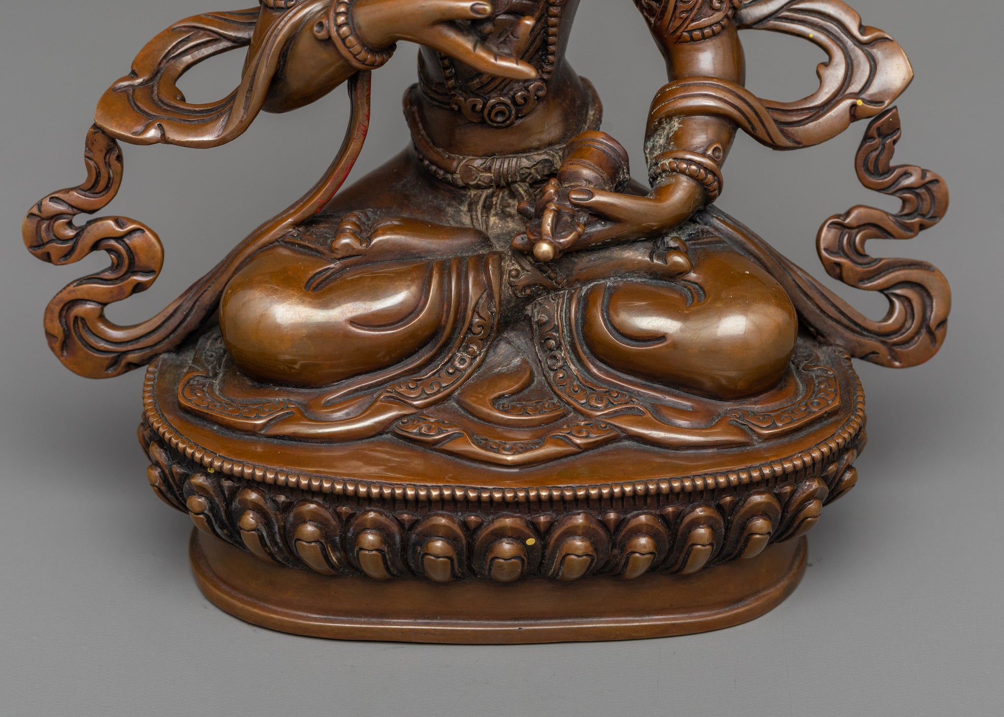 Vajrayogini is stunning. The details are amazing. It's easy to make out her facial expressions, skulls, feet, and the ring of fire around her. You can tell she's handmade. There is a consecration hole in her back.