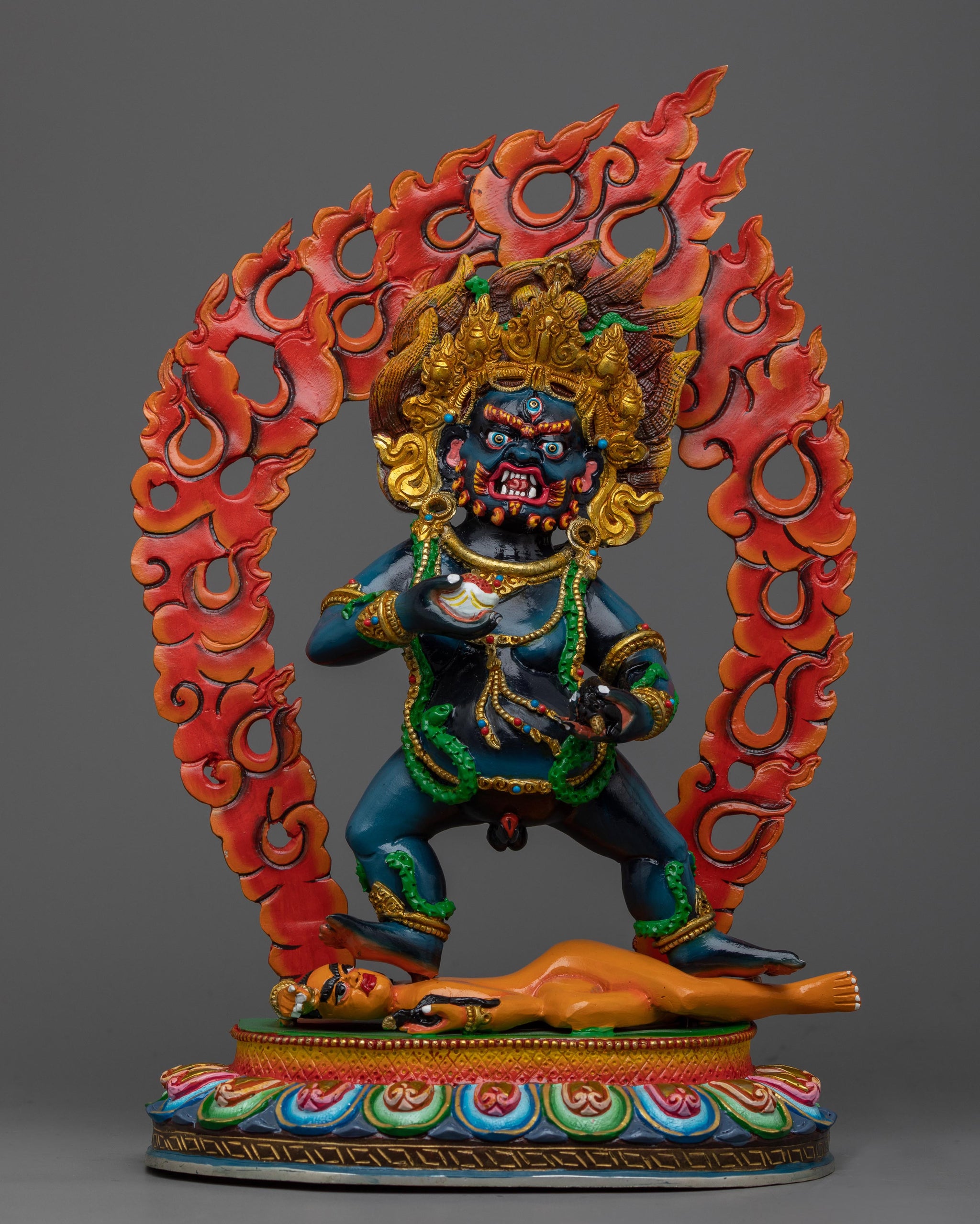 In Tibetan Buddhism, the riches deity Black Dzambhala is adored for his capacity to amplify wealth and fortune. Black Dzambhala, who is recognized by his black body, which represents the capacity to channel wrath into virtue, provides his followers with a roadmap for conquering challenges and obtaining financial security. His powerful lessons are always brought to mind by this statue, which promotes success and abundance in your life.