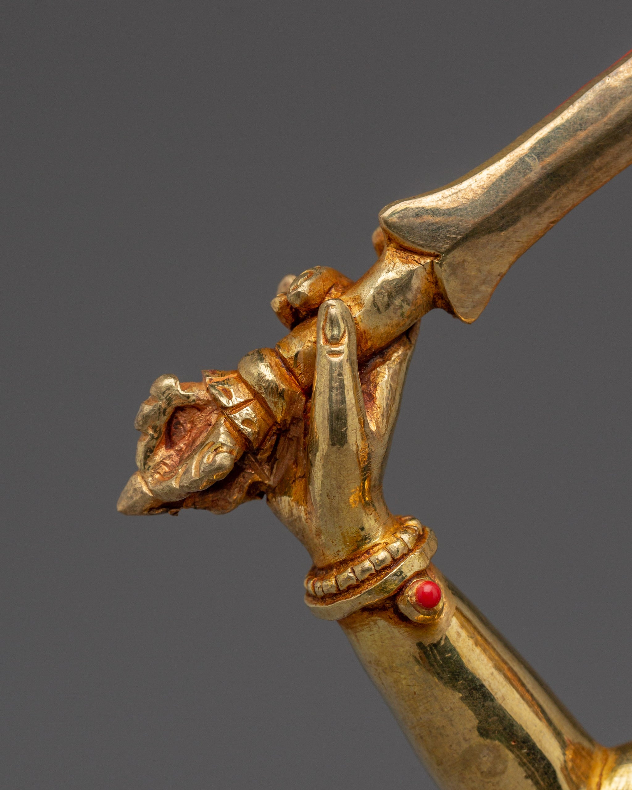 Vajrayogini is stunning. The details are amazing. It's easy to make out her facial expressions, skulls, feet, and the ring of fire around her. You can tell she's handmade. There is a consecration hole in her back.