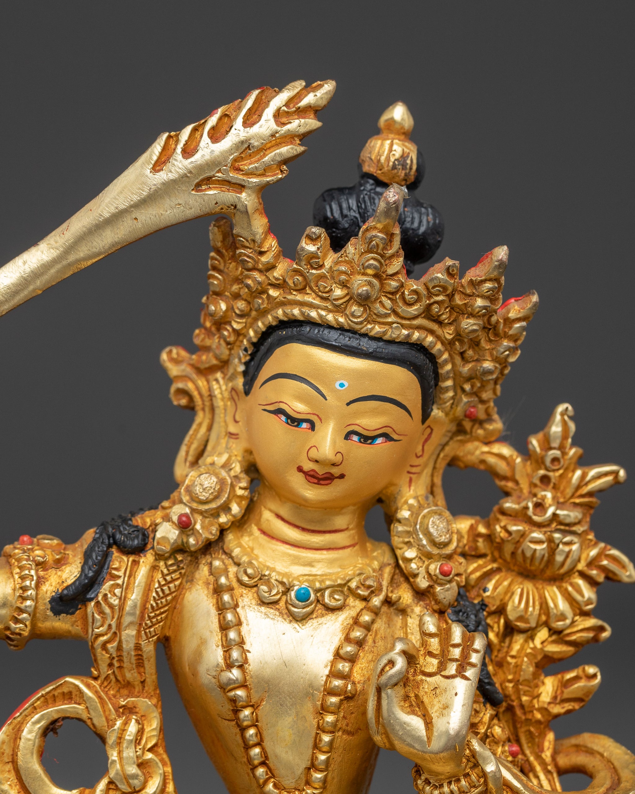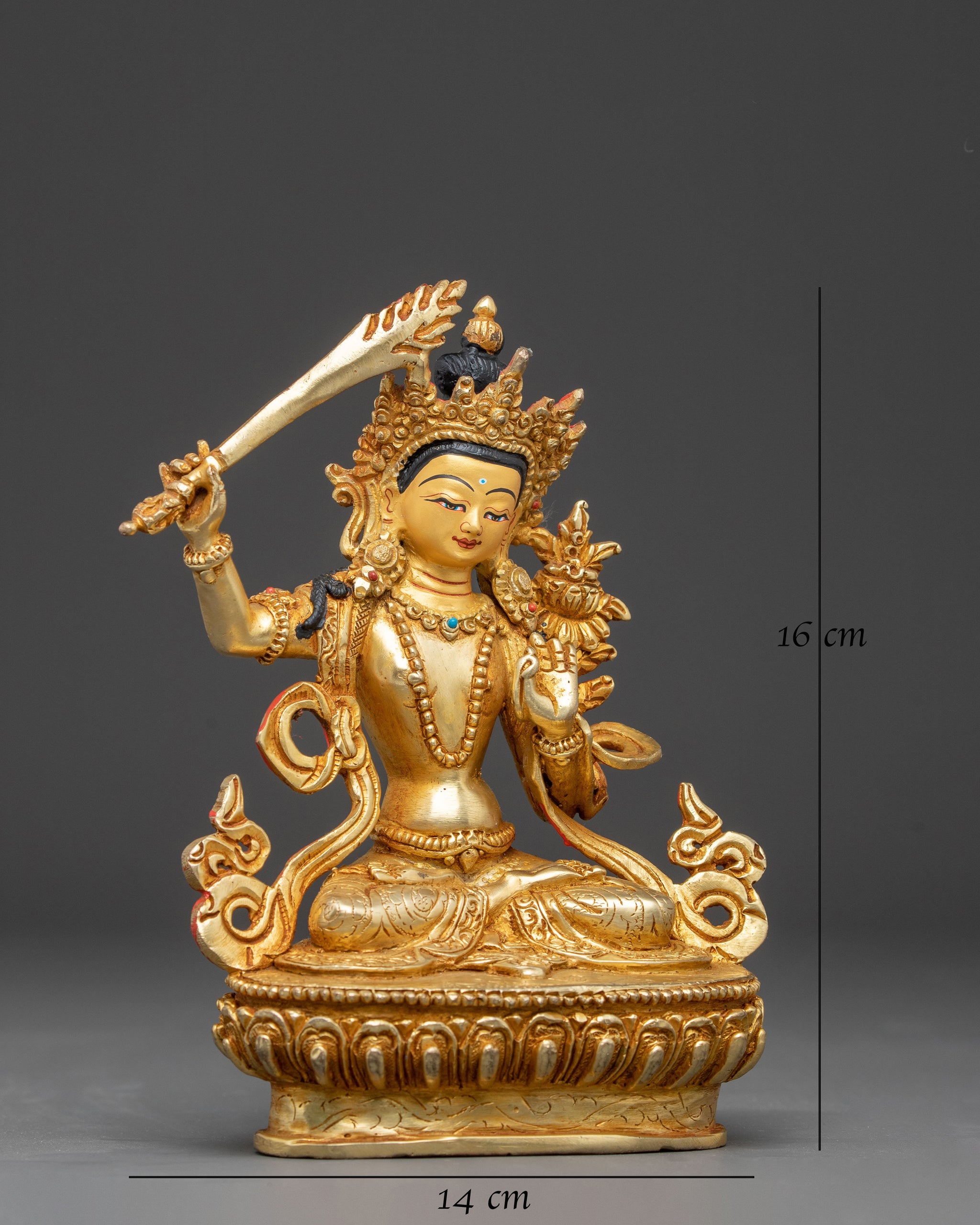 Bodhisatttva Manjushri Handcrafted Statue | 24k Gold Gilded Himalayan Sculpture