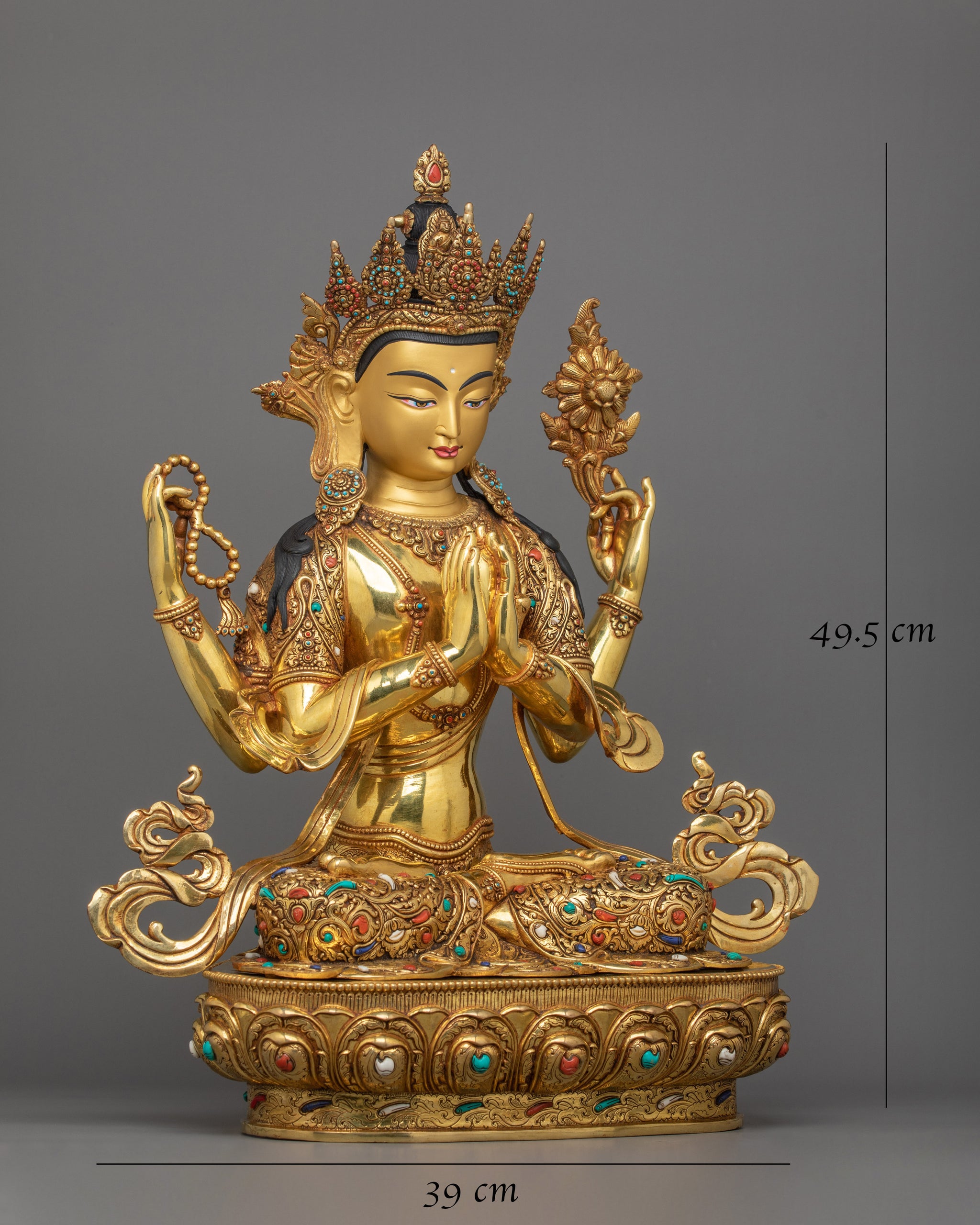 Bodhisattva Avalokiteshvara "Chenresig" Sculpture | Four Armed Figurine