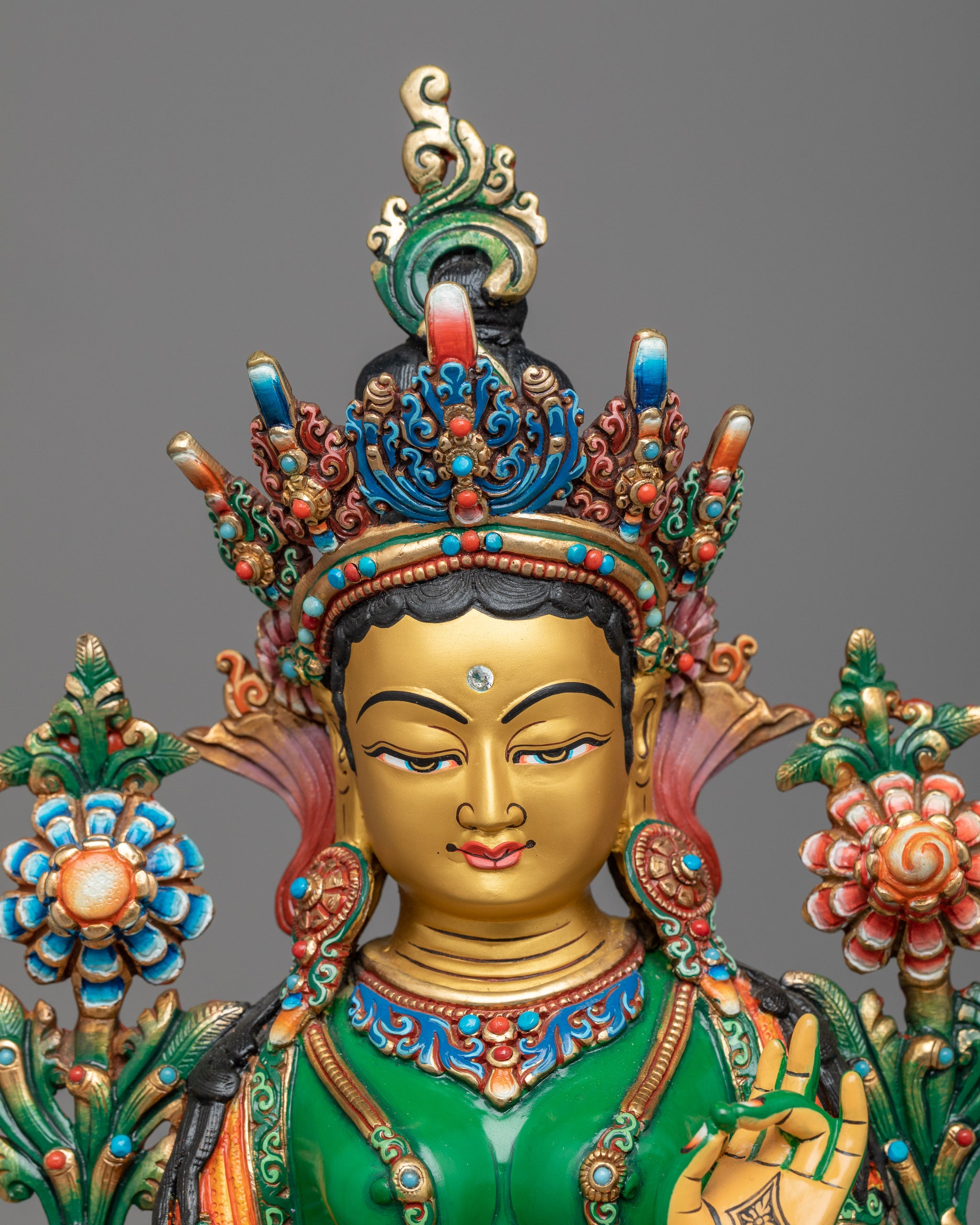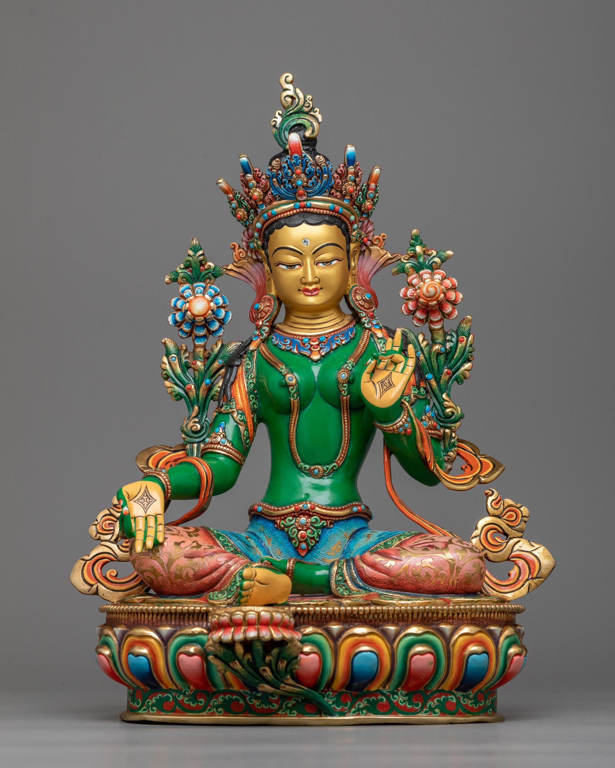 Bodhisattva Green Tara Statue | 24K Gold Gilded Symbol of Active Compassion