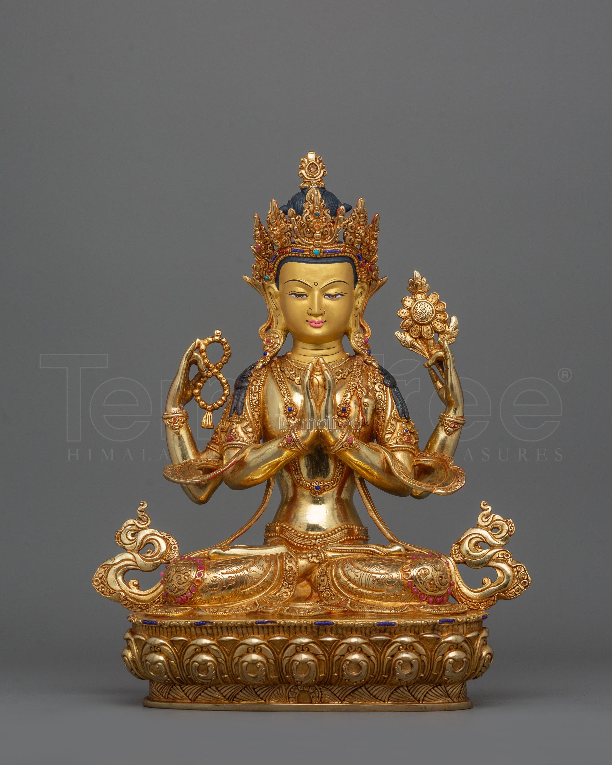 Bodhisattva of Compassion Chenresig Sculpture | Traditional Nepalese Artwork