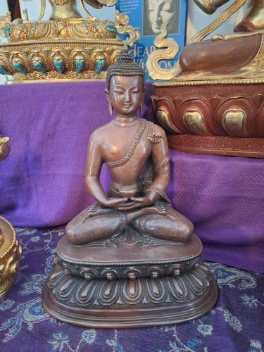 Amitabha is a Buddhist deity who is worshipped in numerous Buddhist traditions. His teachings lead us to the road of enlightenment, offering rebirth in Sukhavati, also known as the Pure Land. These teachings are embodied in this Amitabha statue, which invites us to explore our potential for peace, compassion, and ultimate emancipation.