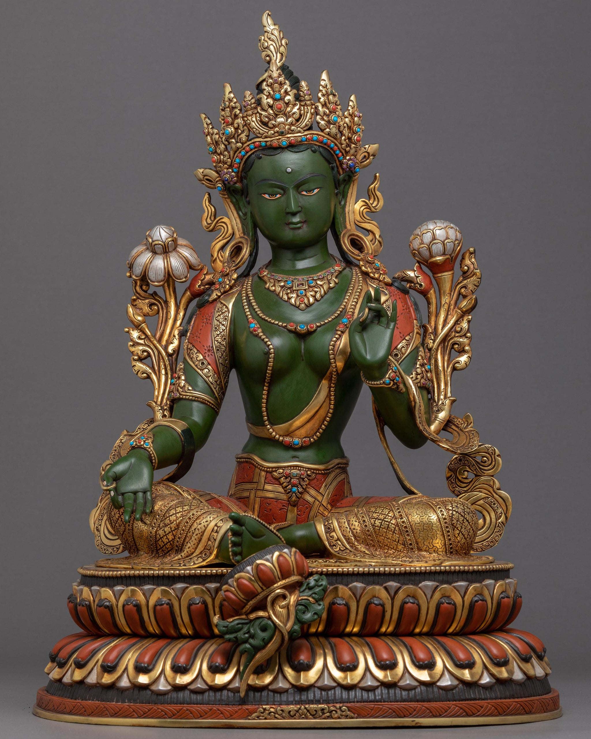 Handcrafted Buddha Art Statue of Green Tara 24k Gold Gilded