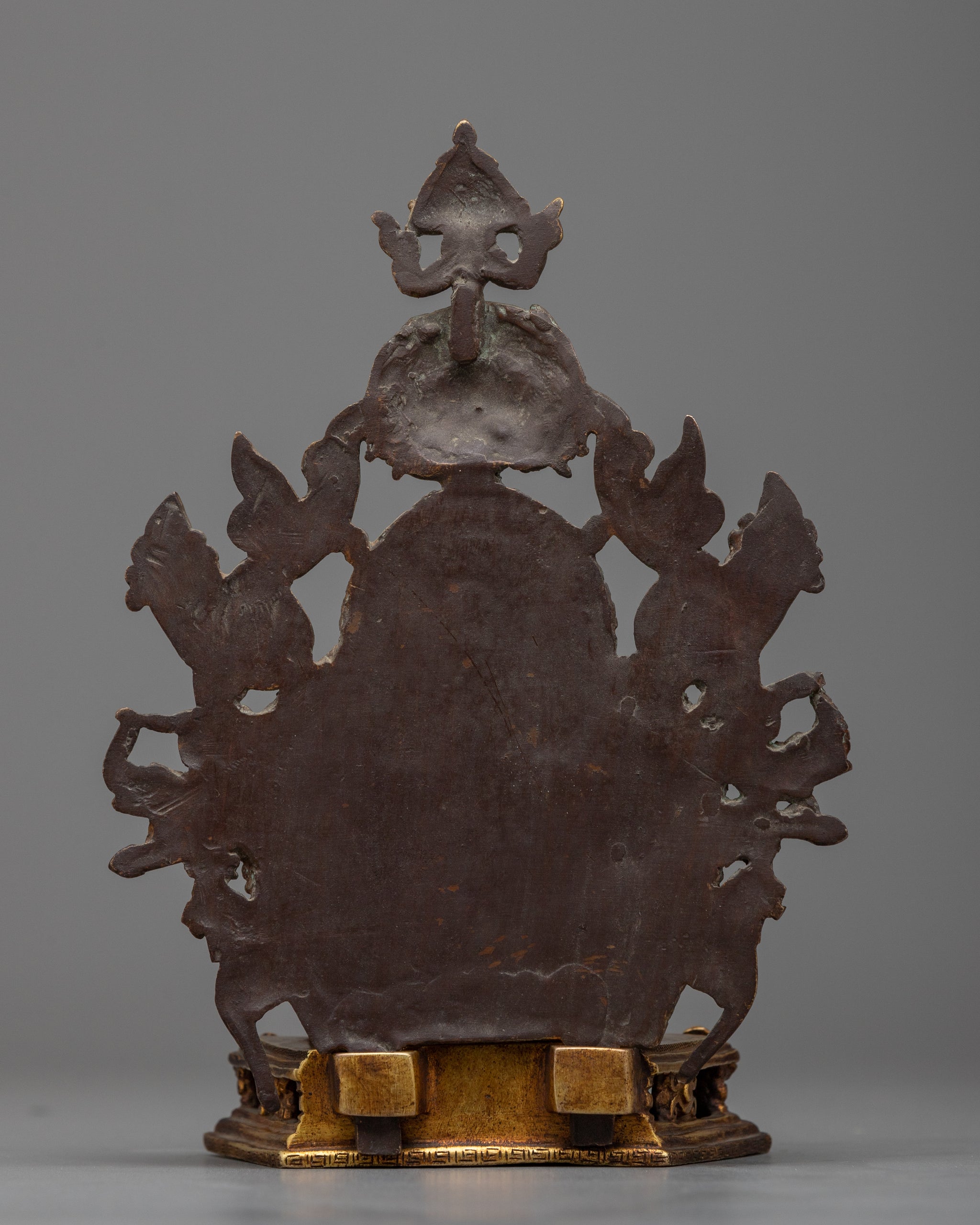 Vajrayogini is stunning. The details are amazing. It's easy to make out her facial expressions, skulls, feet, and the ring of fire around her. You can tell she's handmade. There is a consecration hole in her back.