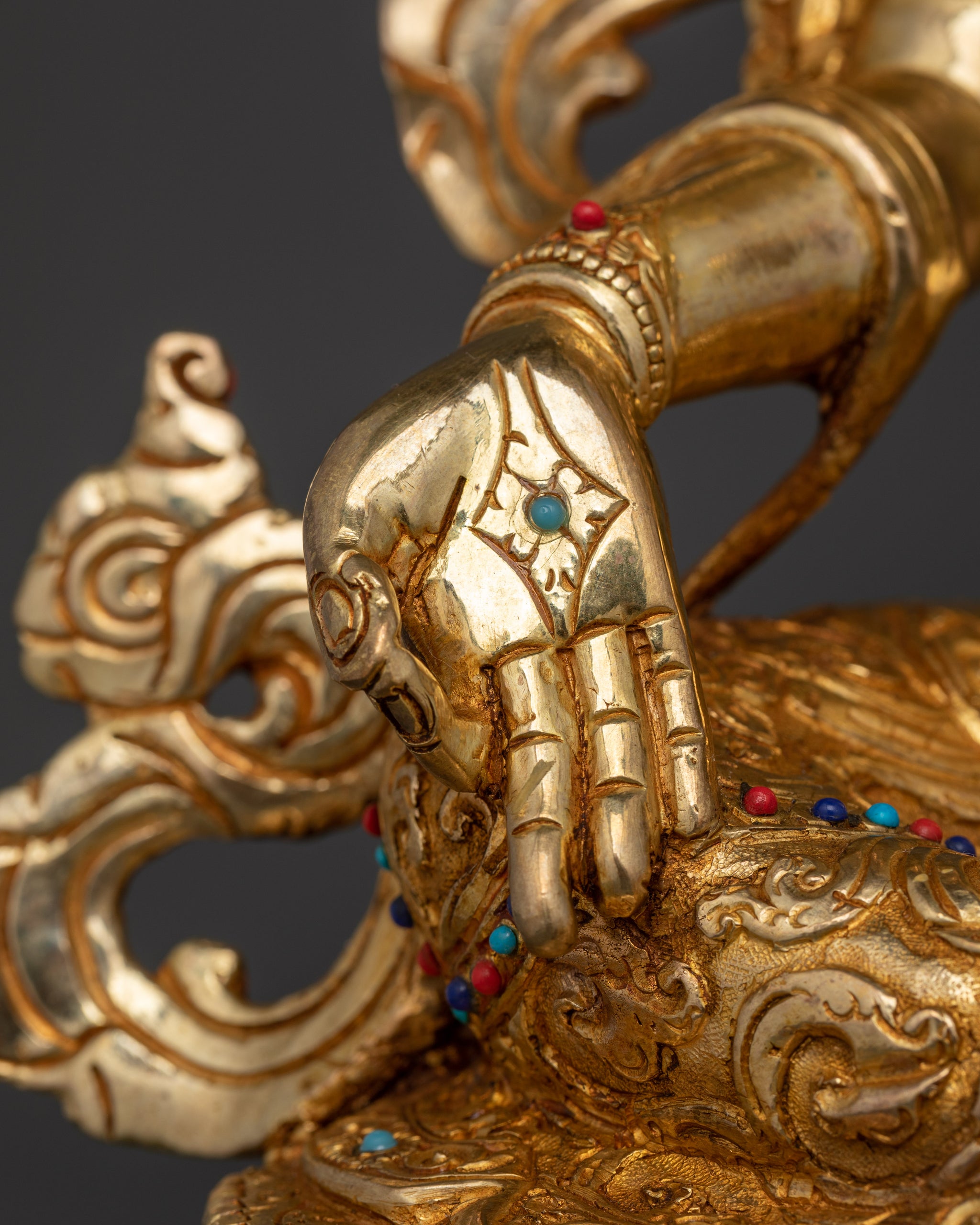 Buddha Green Tara Sculpture | 24K Gold Gilded Copper Statue
