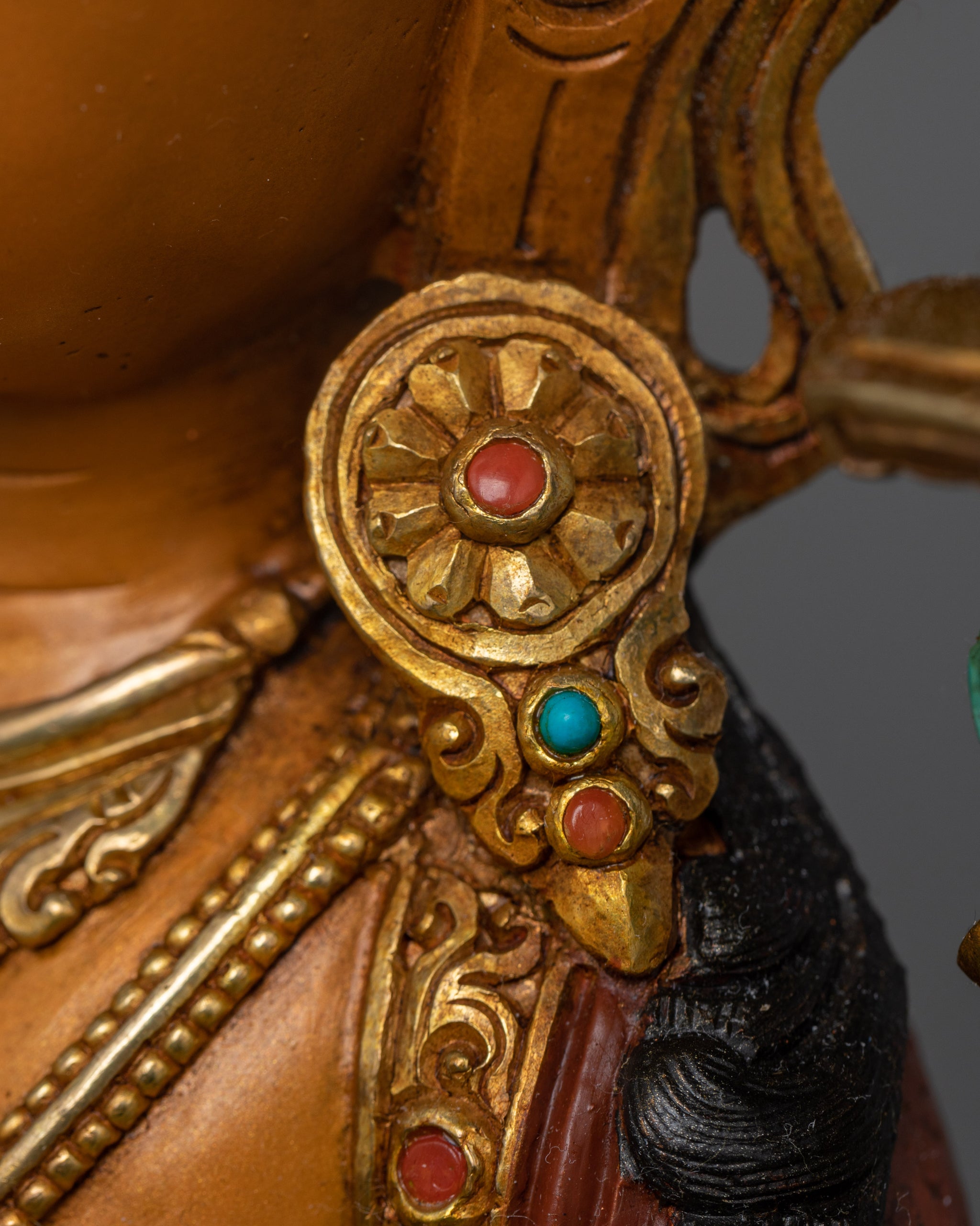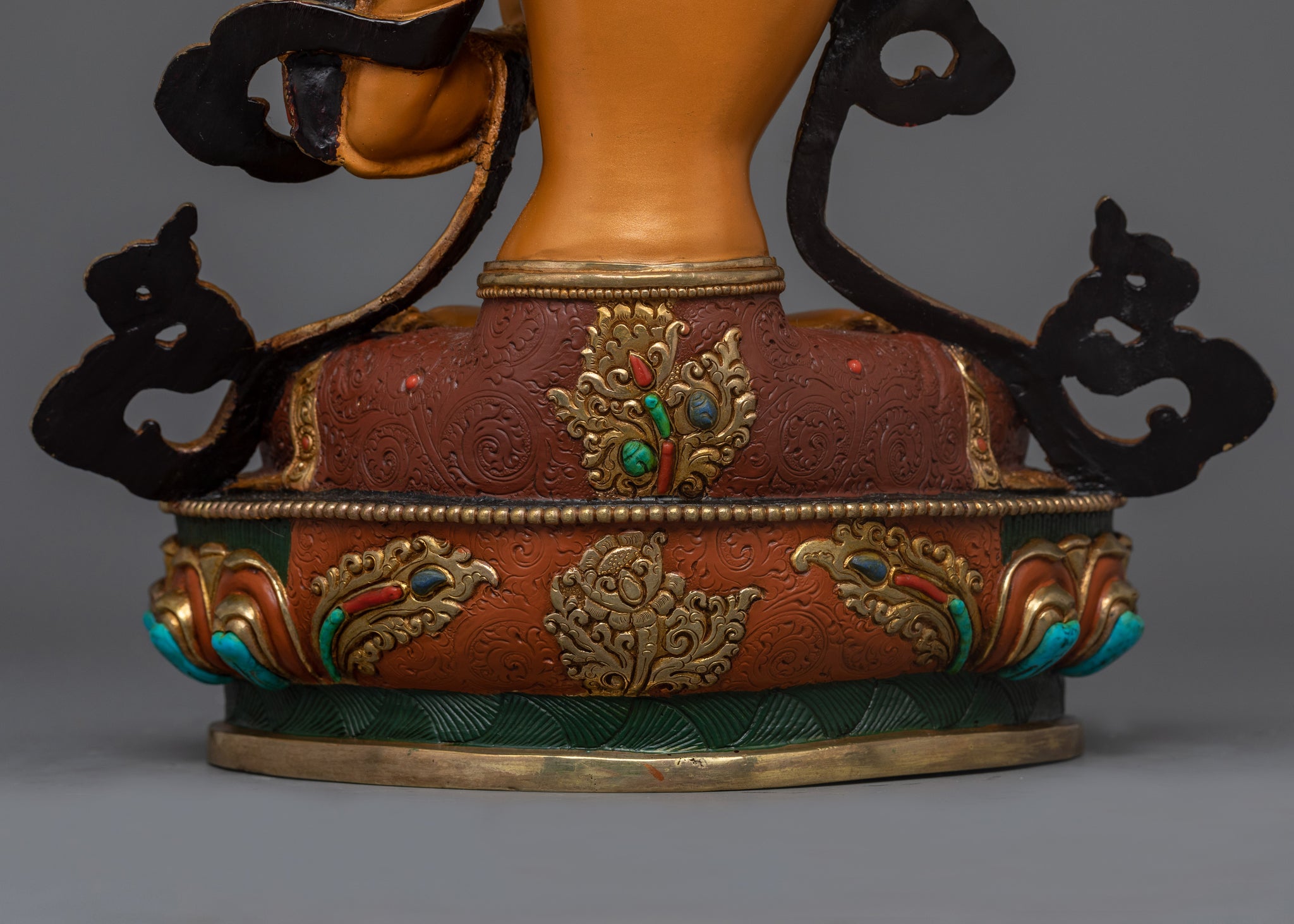 Vajrayogini is stunning. The details are amazing. It's easy to make out her facial expressions, skulls, feet, and the ring of fire around her. You can tell she's handmade. There is a consecration hole in her back.
